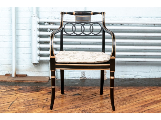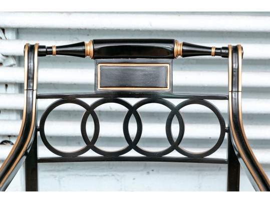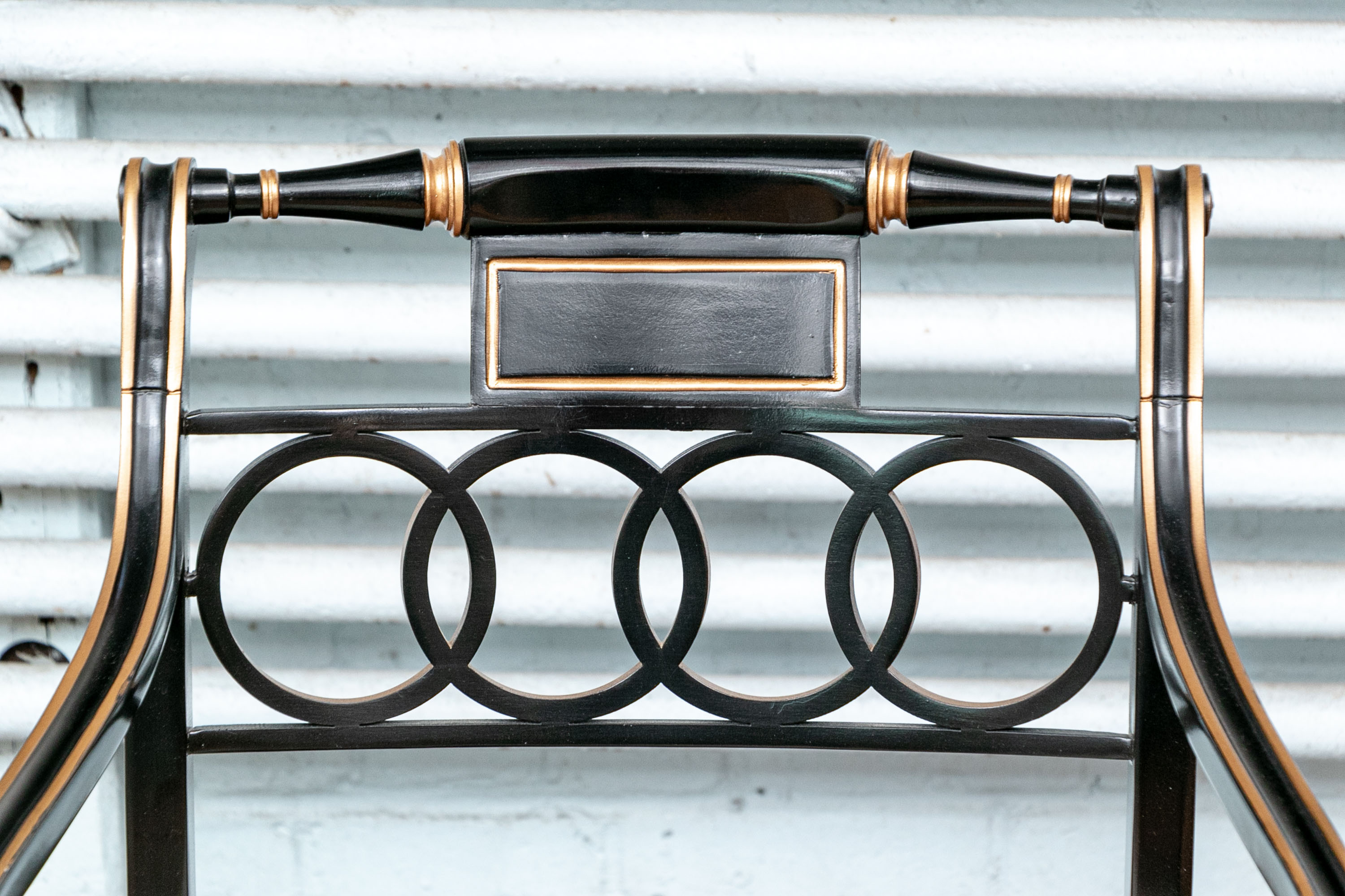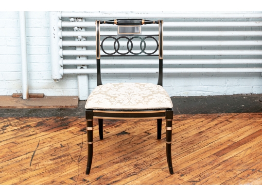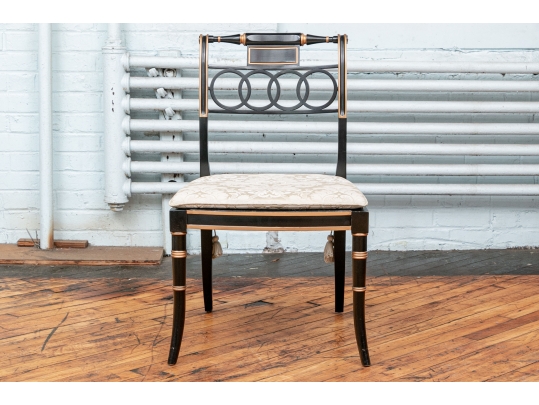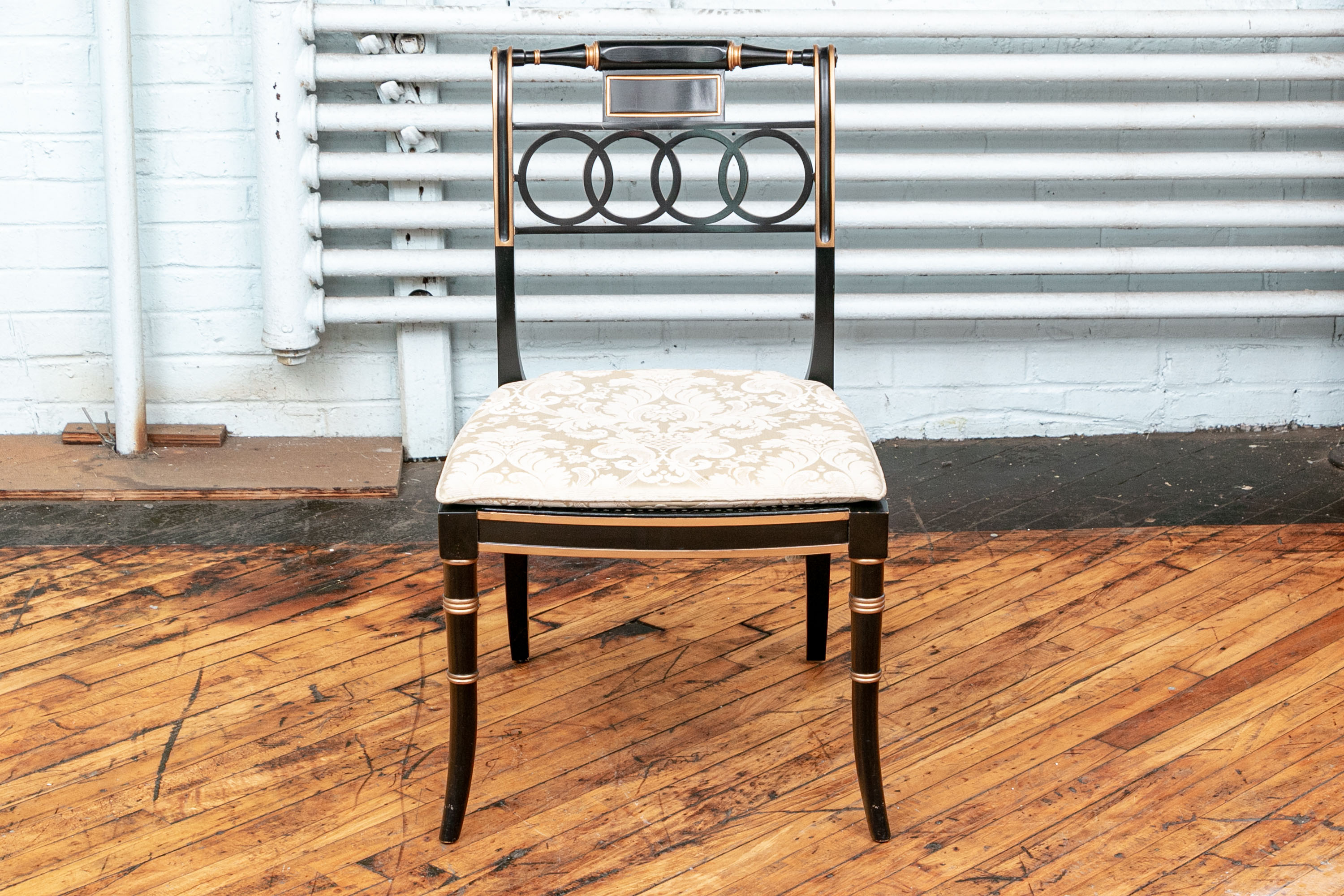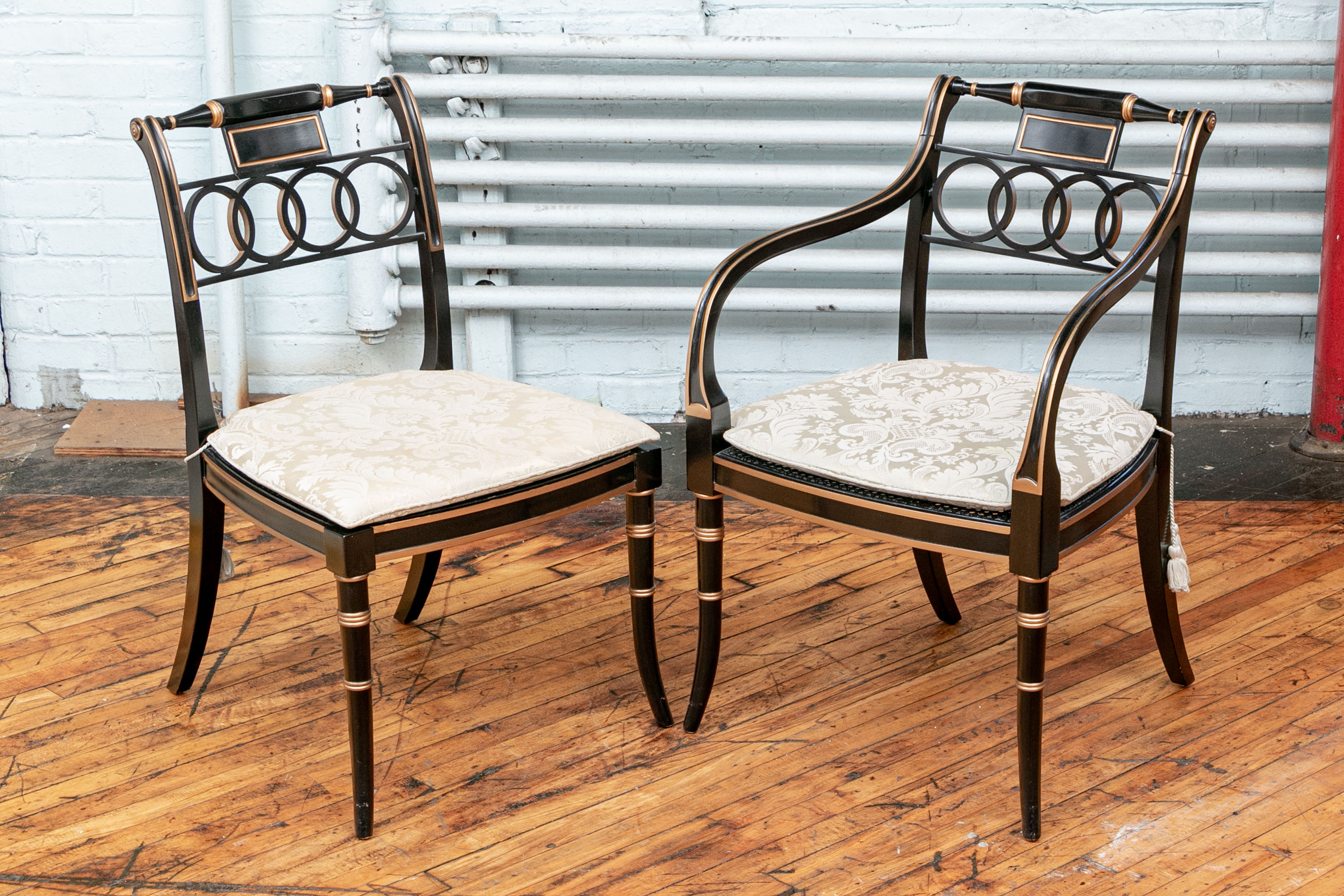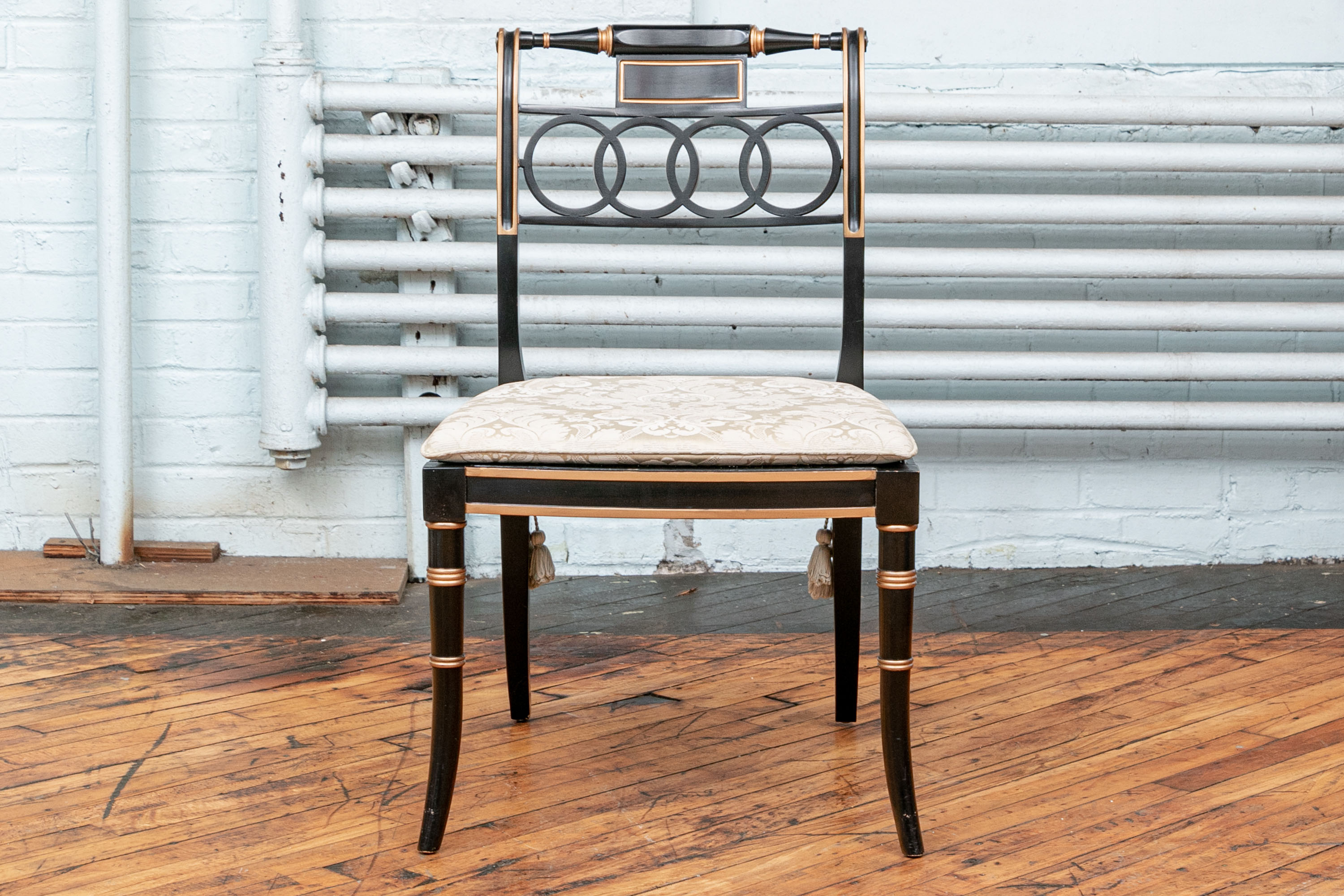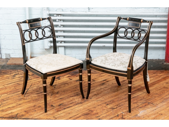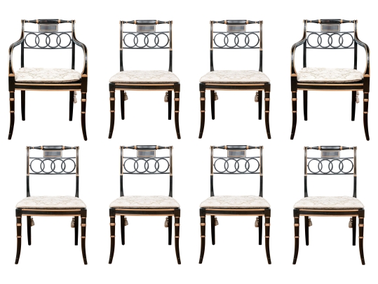 Set Of Eight Baker Charleston Collection "Governor Alston" Regency Style Ebonized Dining Chairs