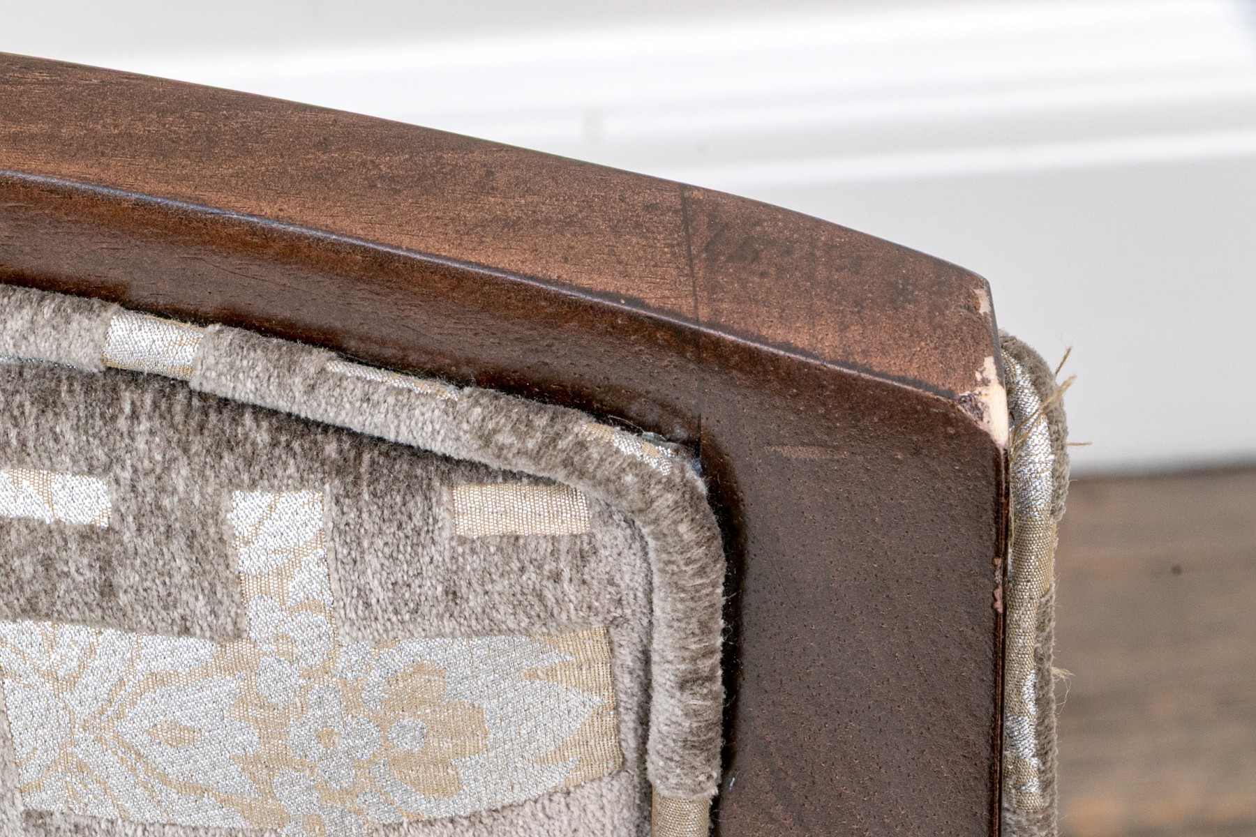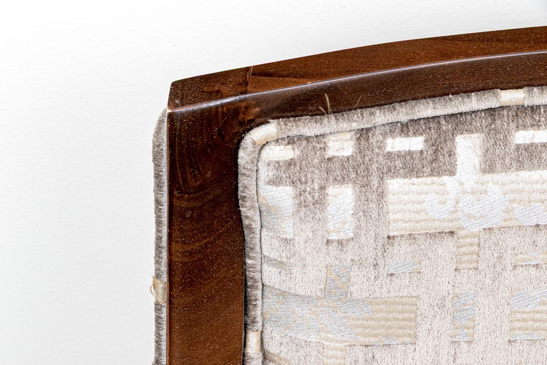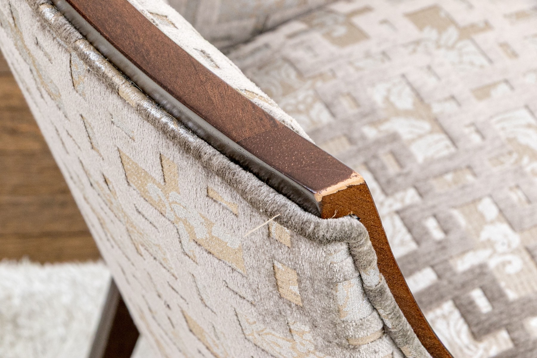 Slight wear to the finish on frame of some and gentle wear to the upholstery on some thread pulls to some, mostly on the exterior upholstered frame but overall the chairs present well.