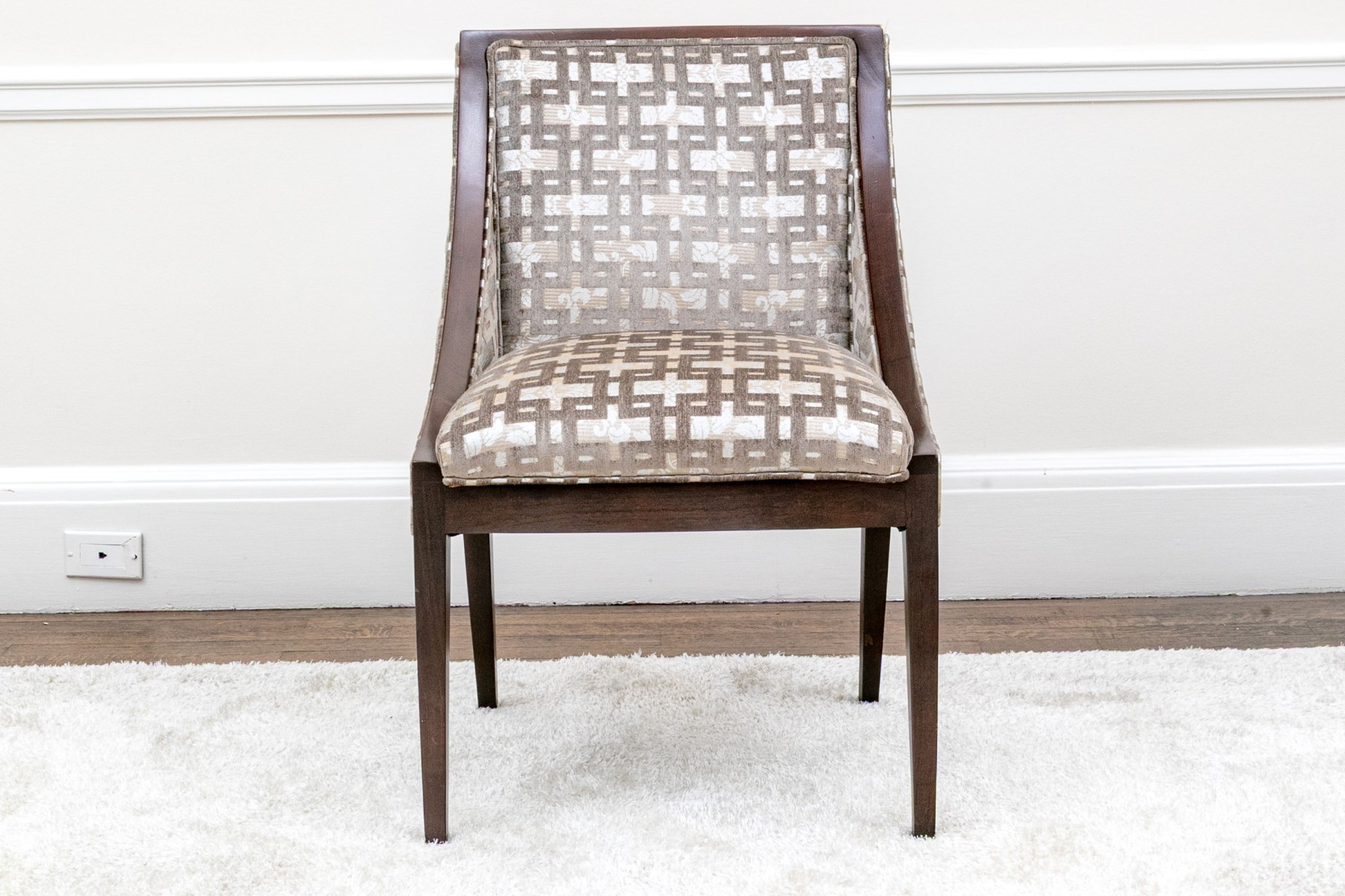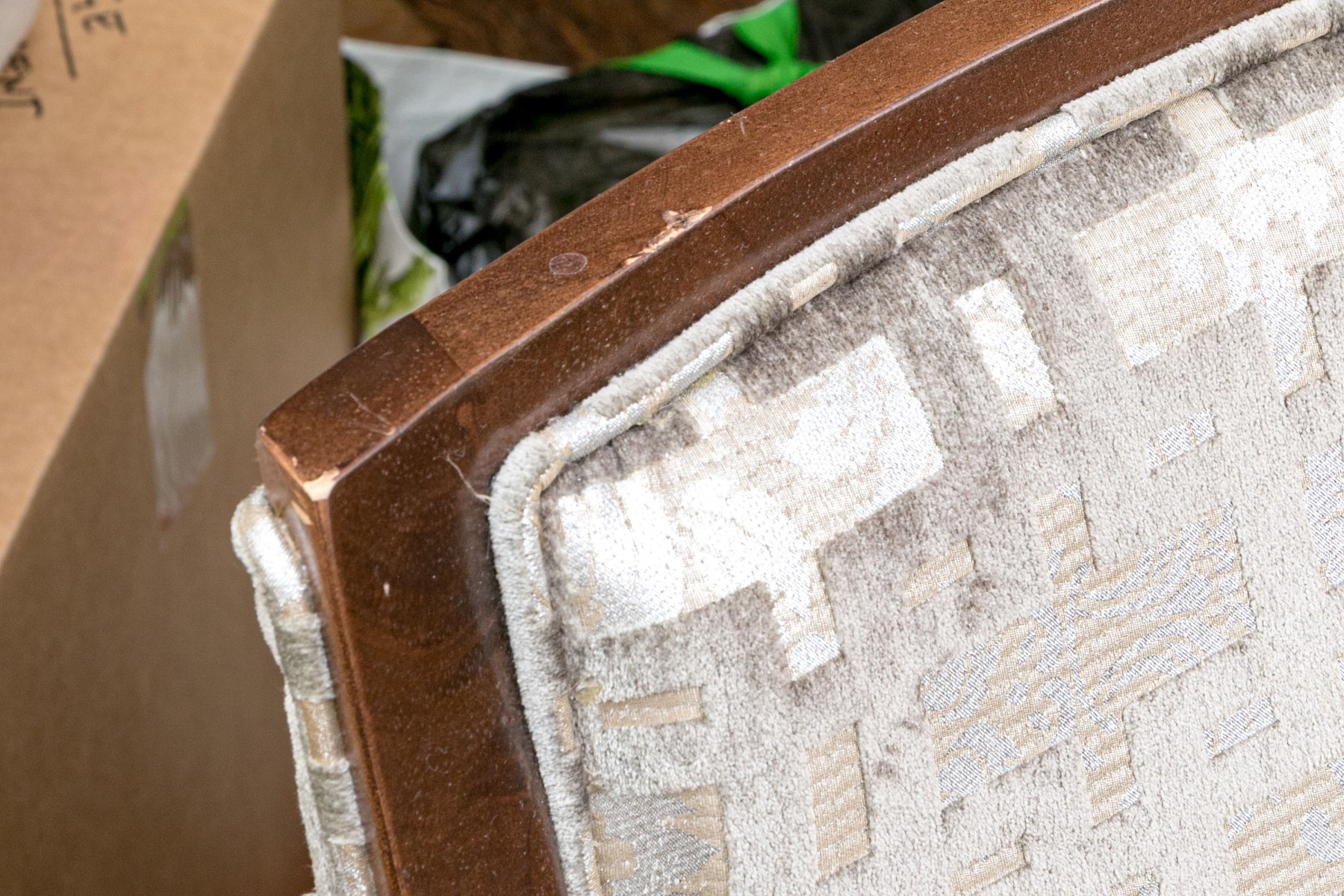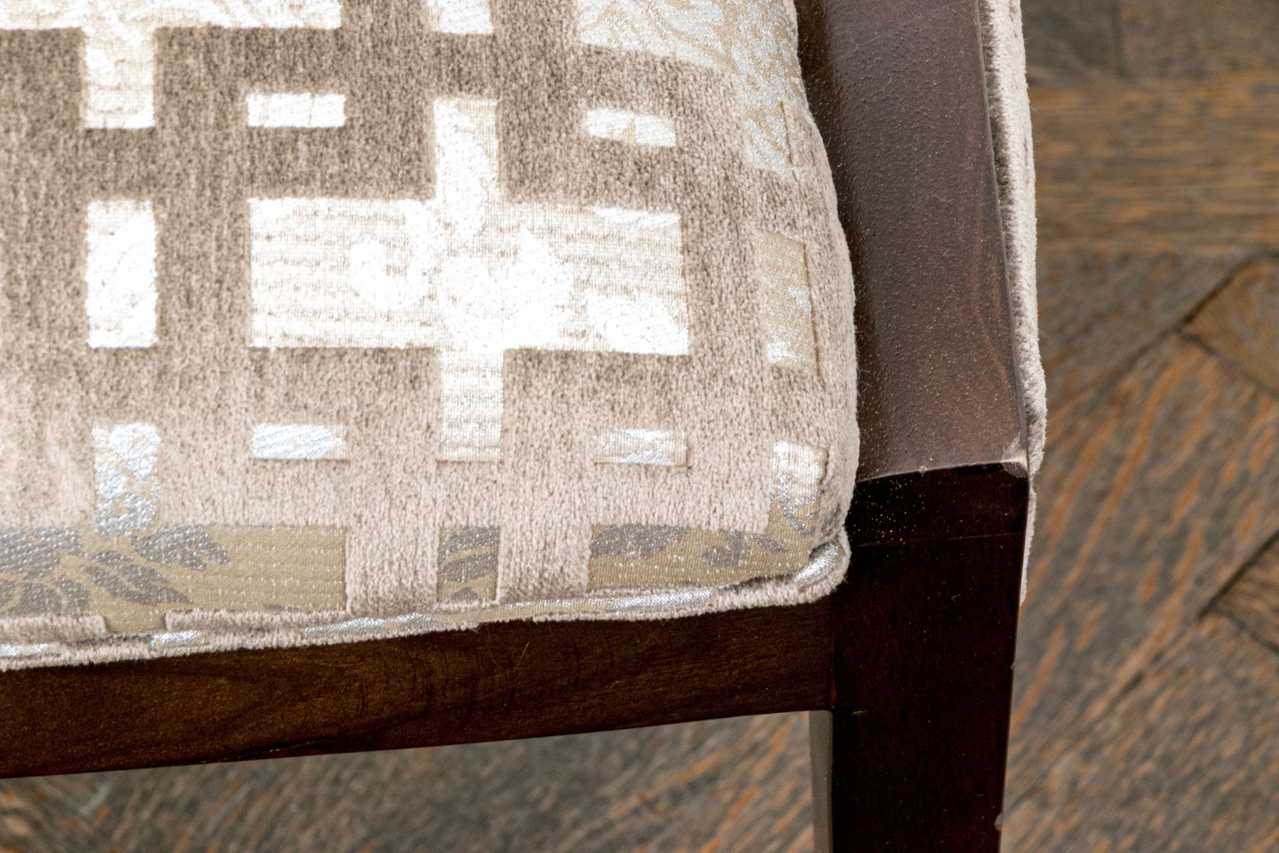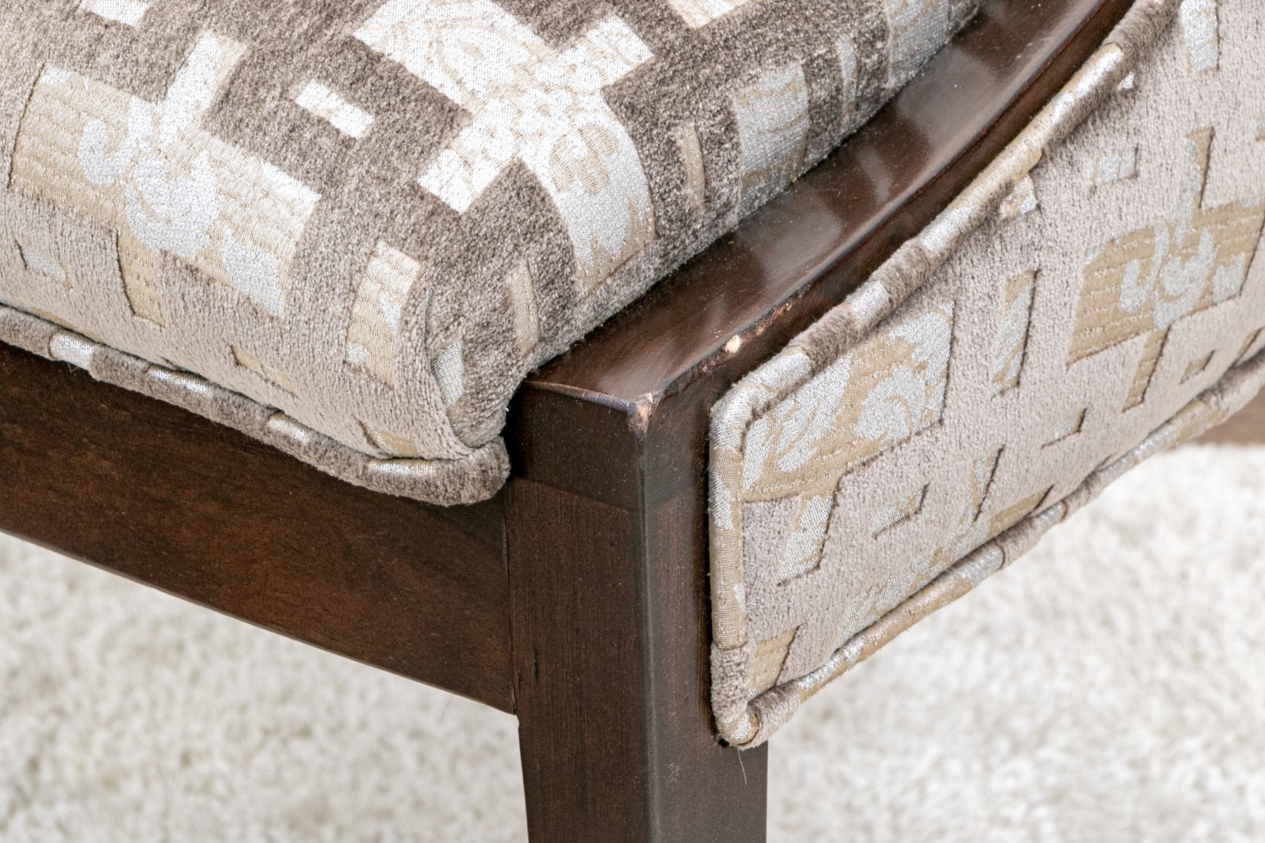 Slight wear to the finish on frame of some and gentle wear to the upholstery on some thread pulls to some, mostly on the exterior upholstered frame but overall the chairs present well.