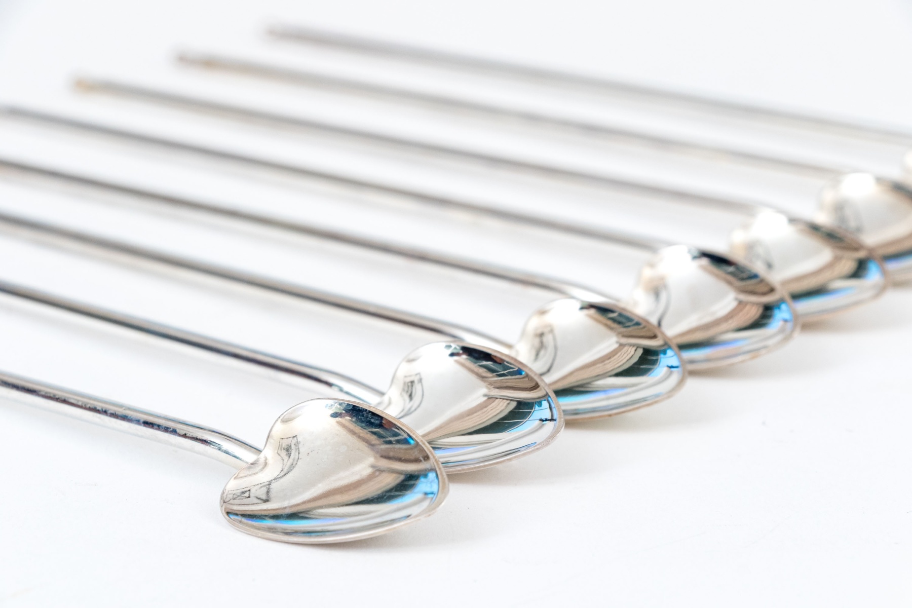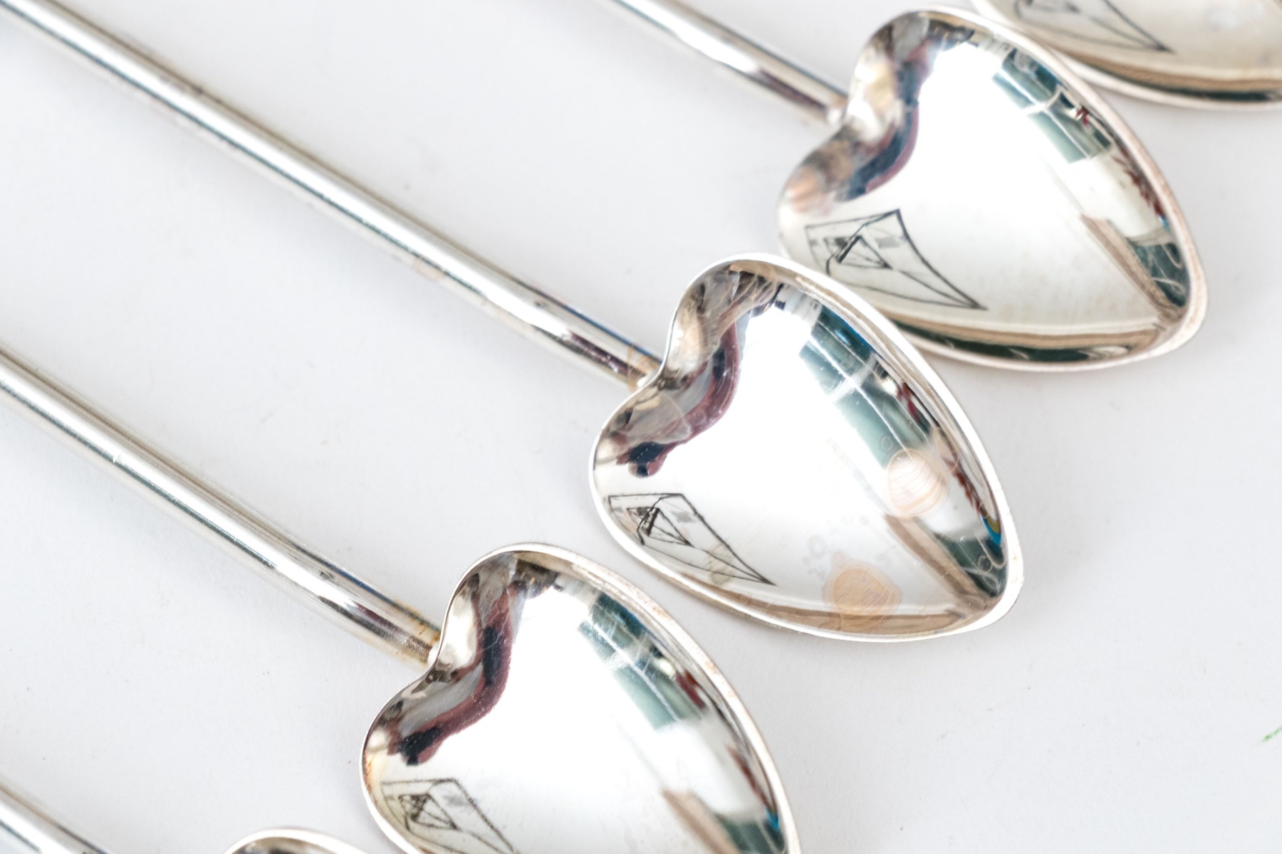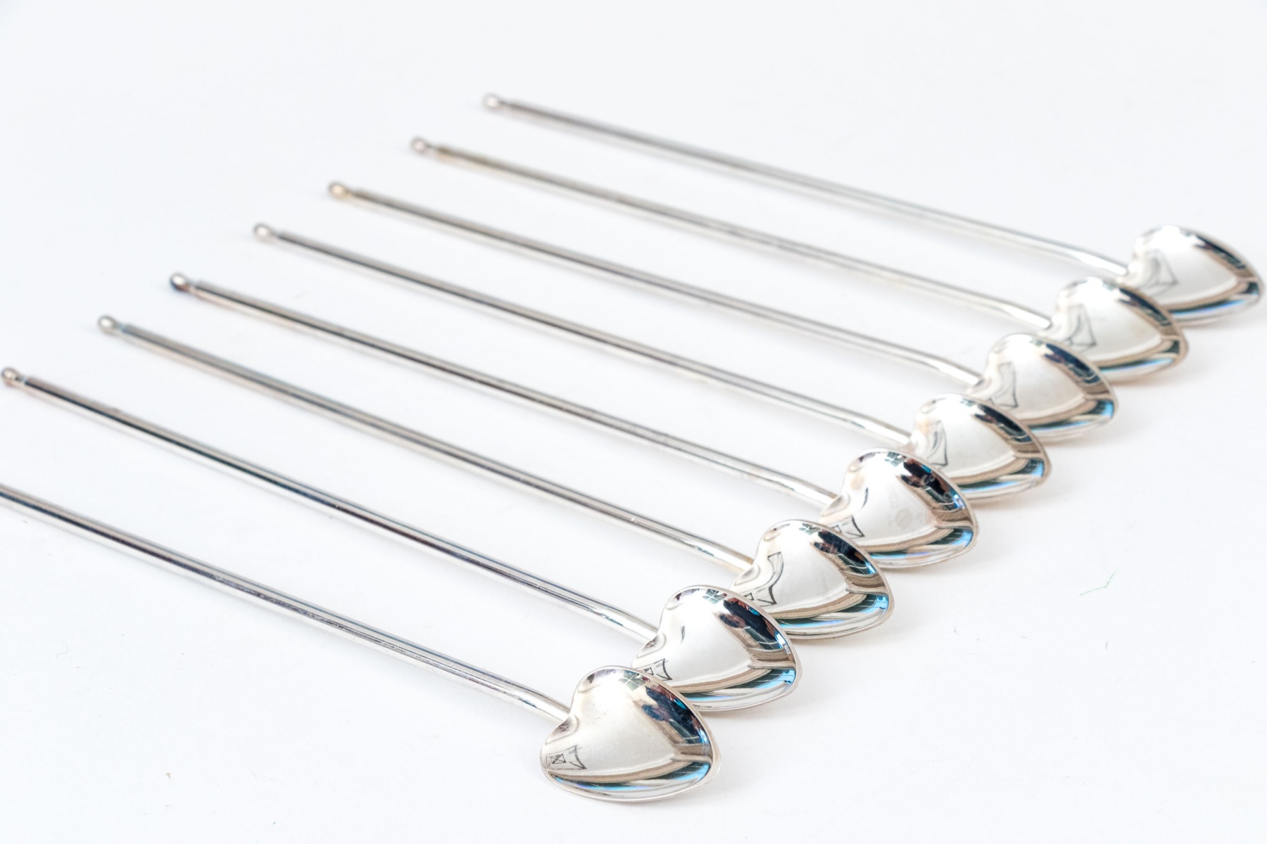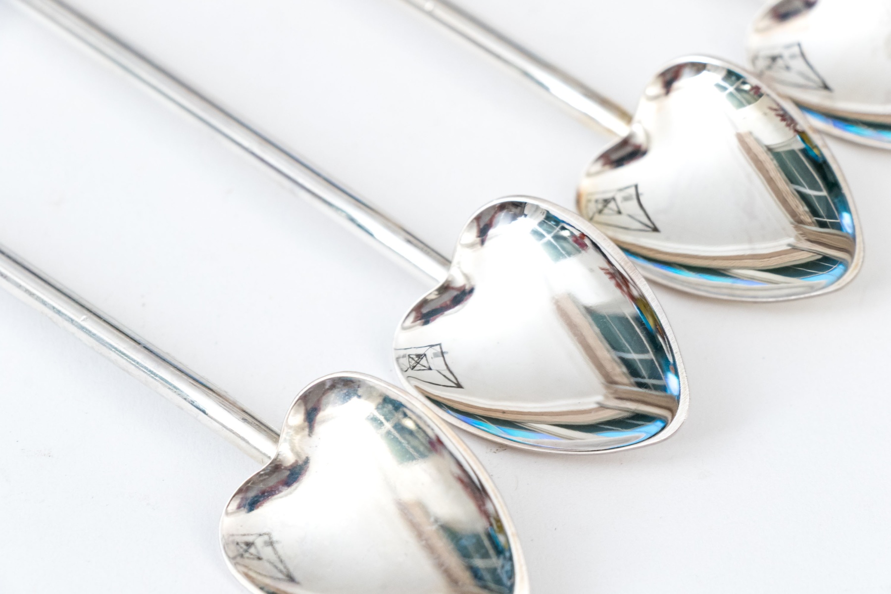 Each with long handles with terminals on one end and adorable heart form bowls on the opposite end.