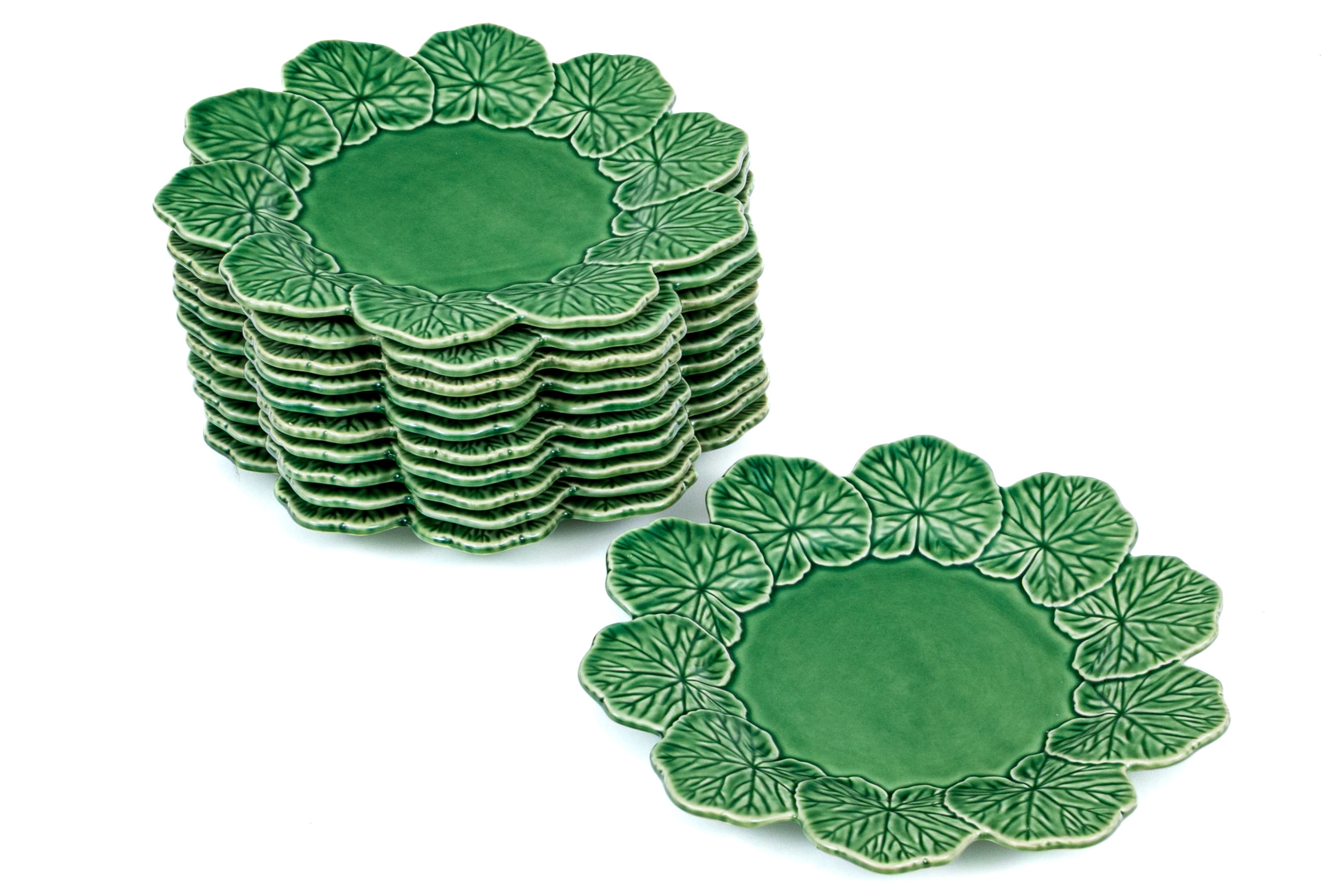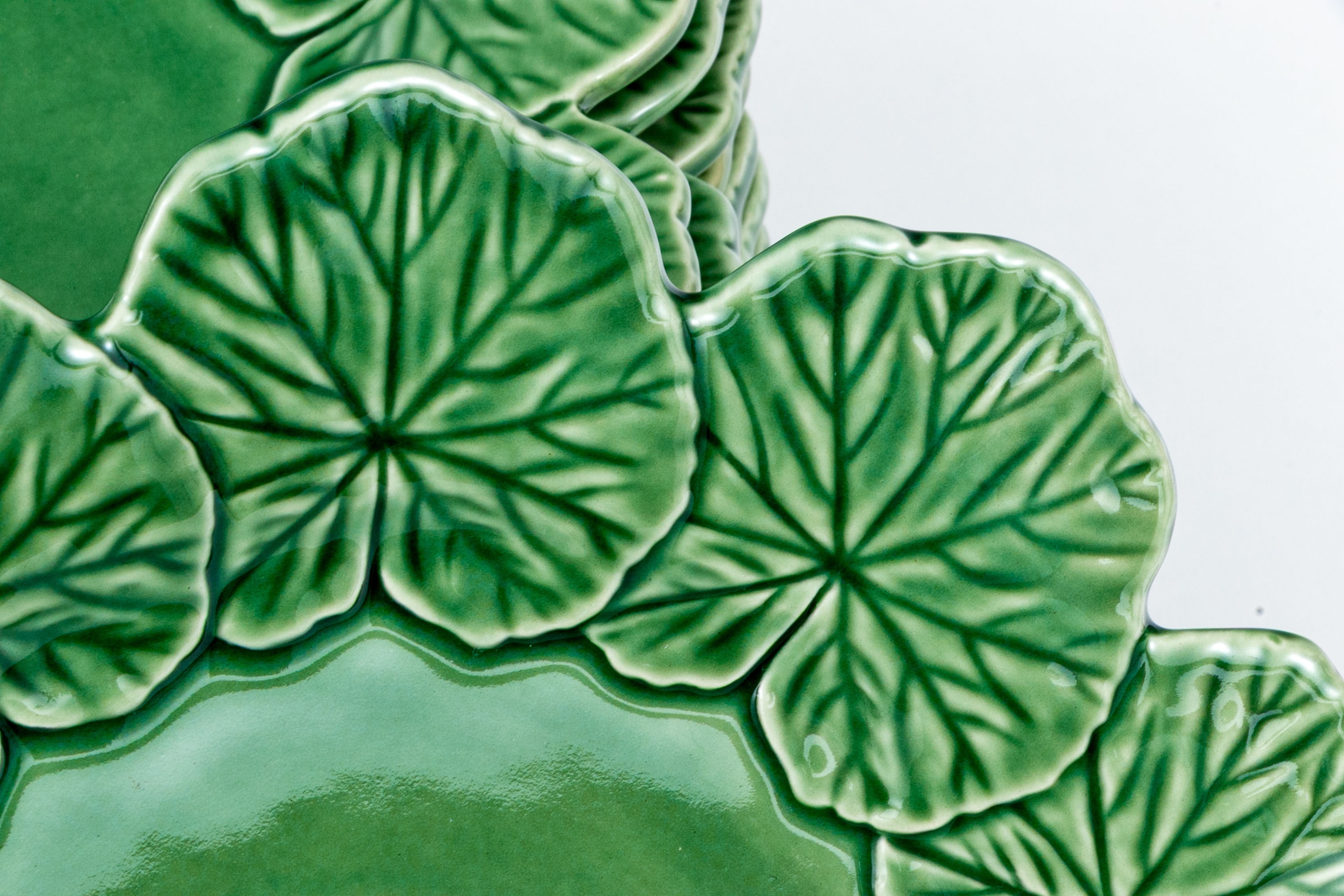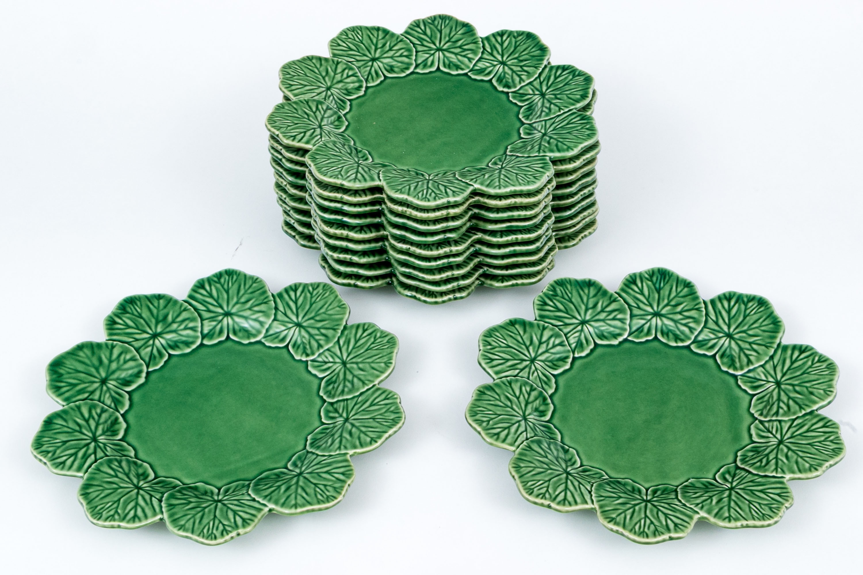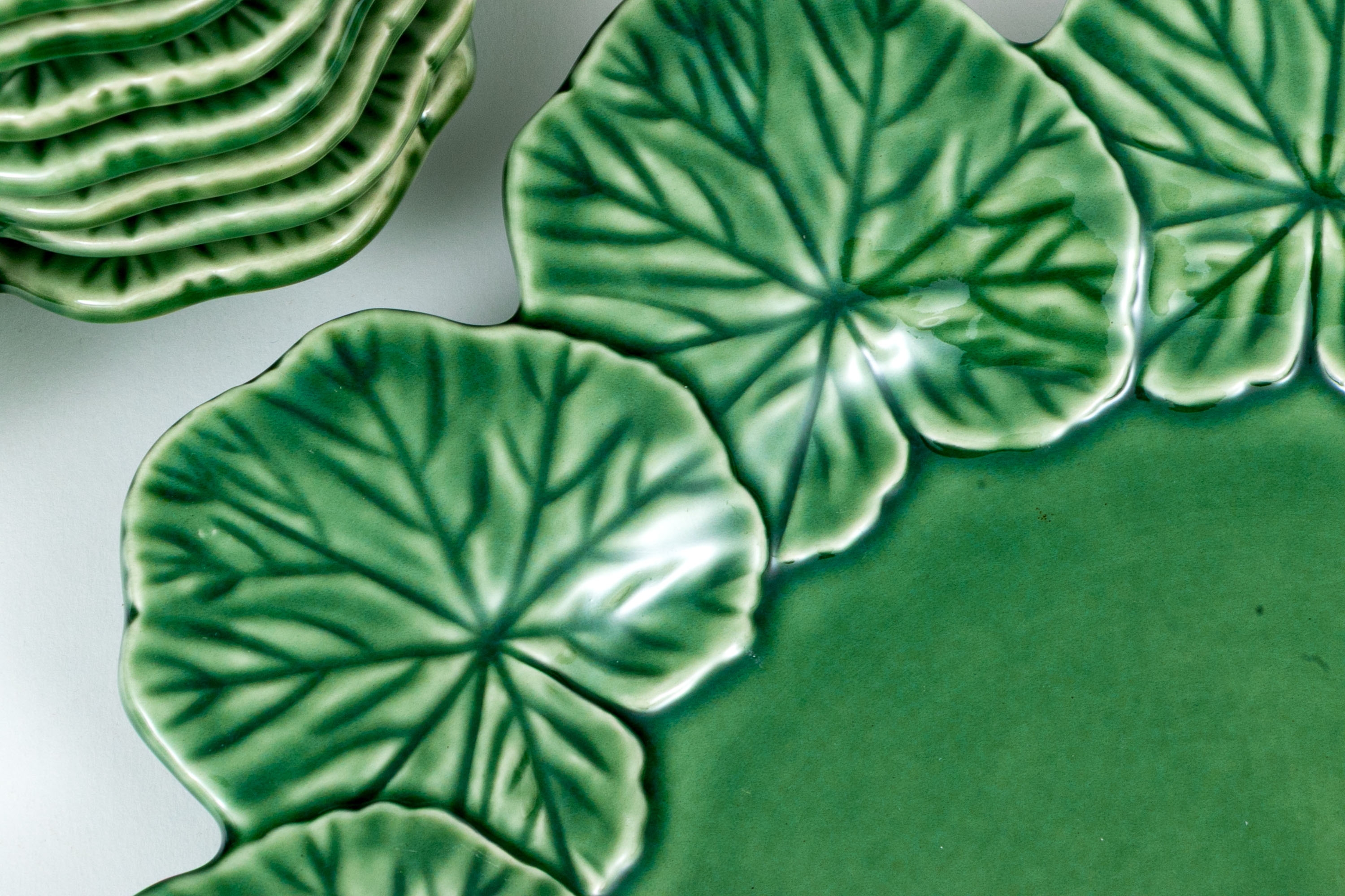 All are green finished with fabulous leaf formed rims giving the plates a stylized scalloped trims.