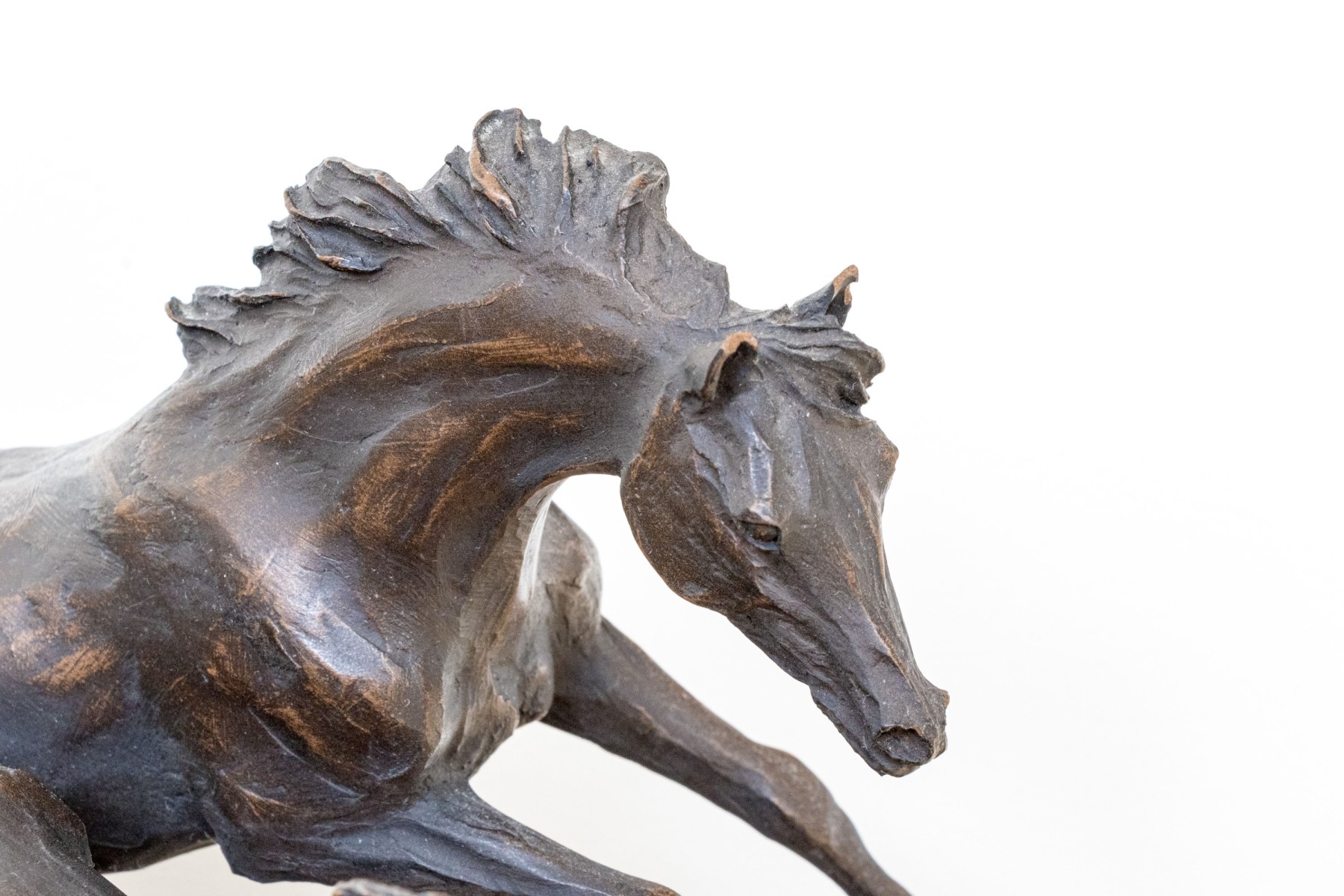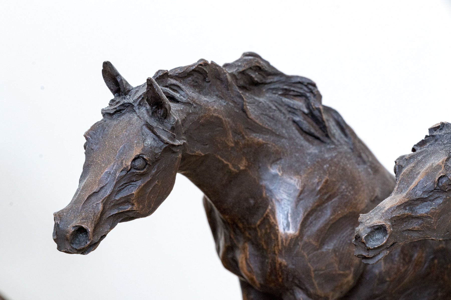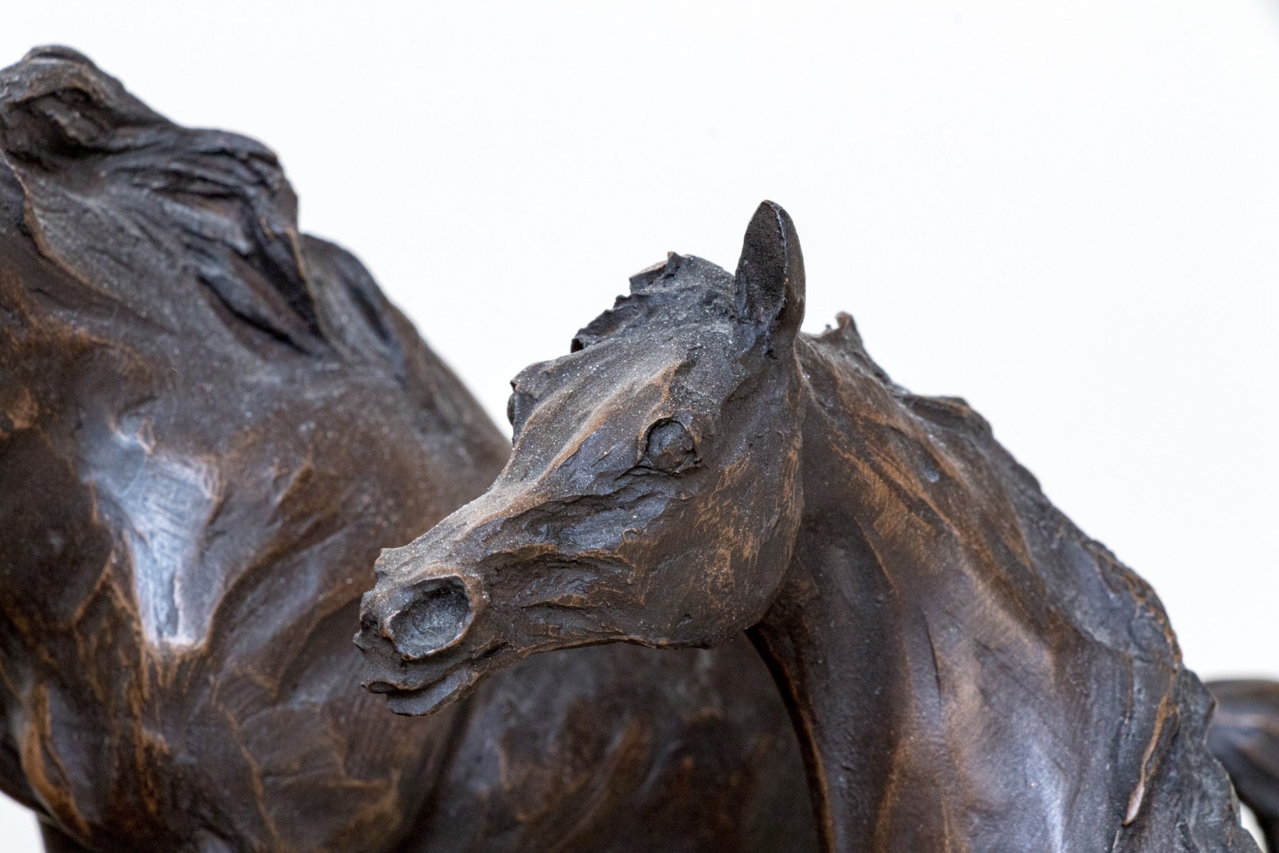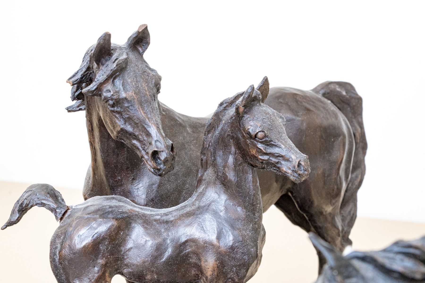 A fabulous set of four Landford Monroe (American, 1950-2000) for Franklin Mint cold cast bronze sculptures depicting horses on naturalistic bases. Includes "Foaling Time," "The Young Stallion," "Intruder," and "Morning On The Montana Plains."