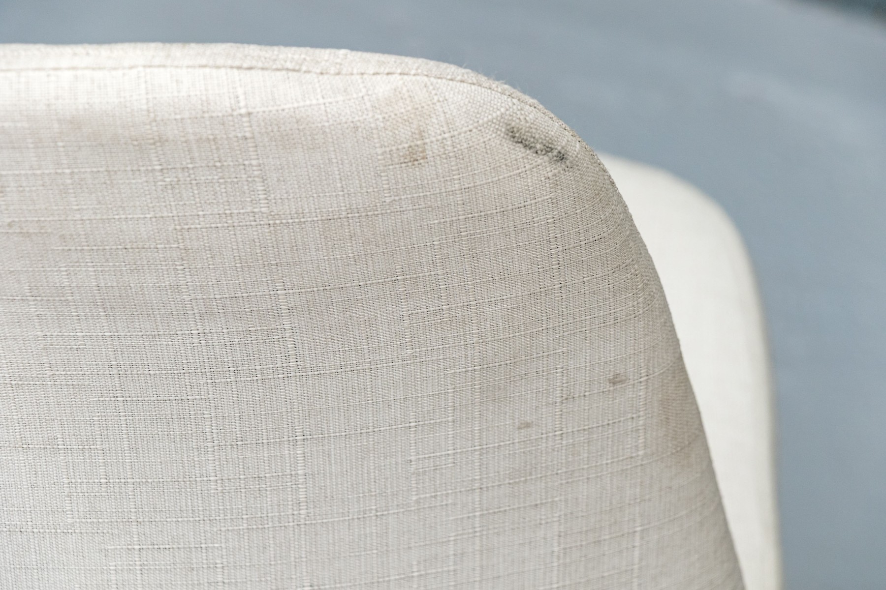 Slight spot staining but could be professionally cleaned. Two of the seats lack hardware to affix onto their legged bases but could likely be purchased after market. *Please note: Items may not include all original parts or accessories. Some screws, brackets, hardware, assemblies may be missing.