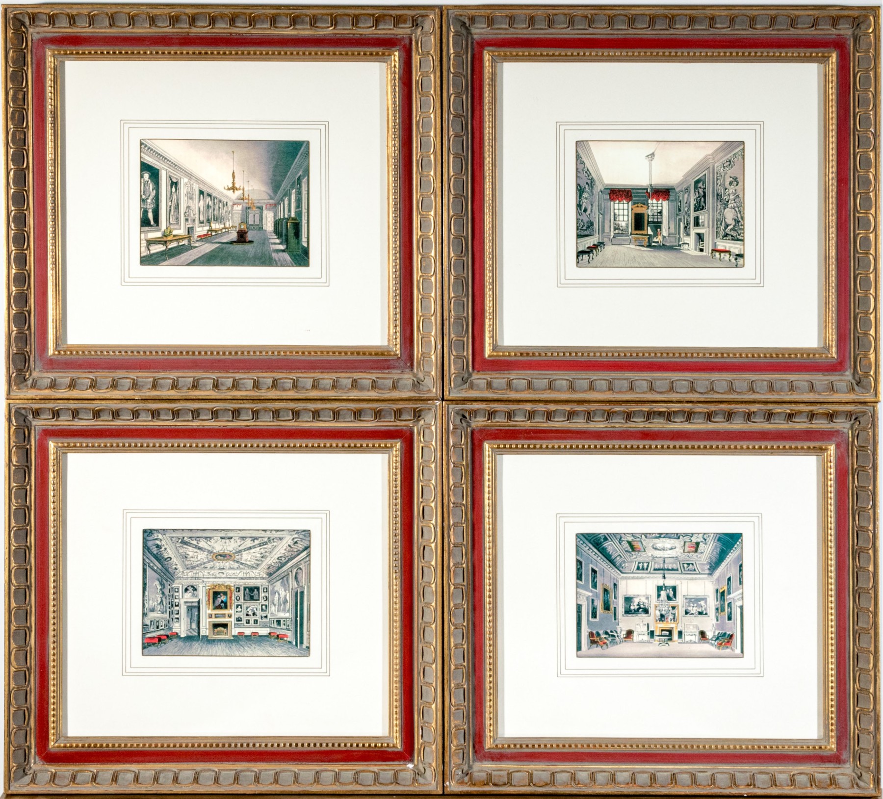 Each is marked with a label on verso and presented in fabulous and elaborately decorated, carved and gilt finished frames.