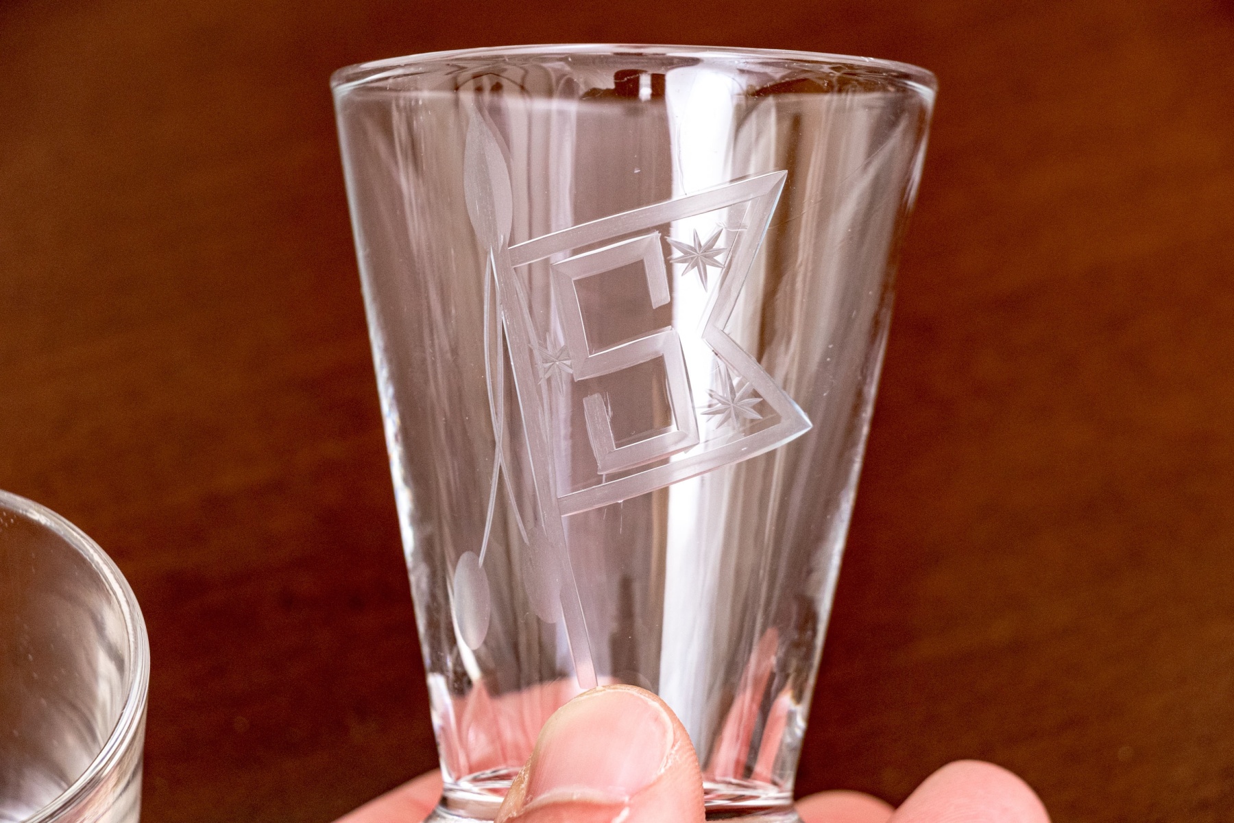 6 shot glasses: 2 1/4” H x 2” Dia.