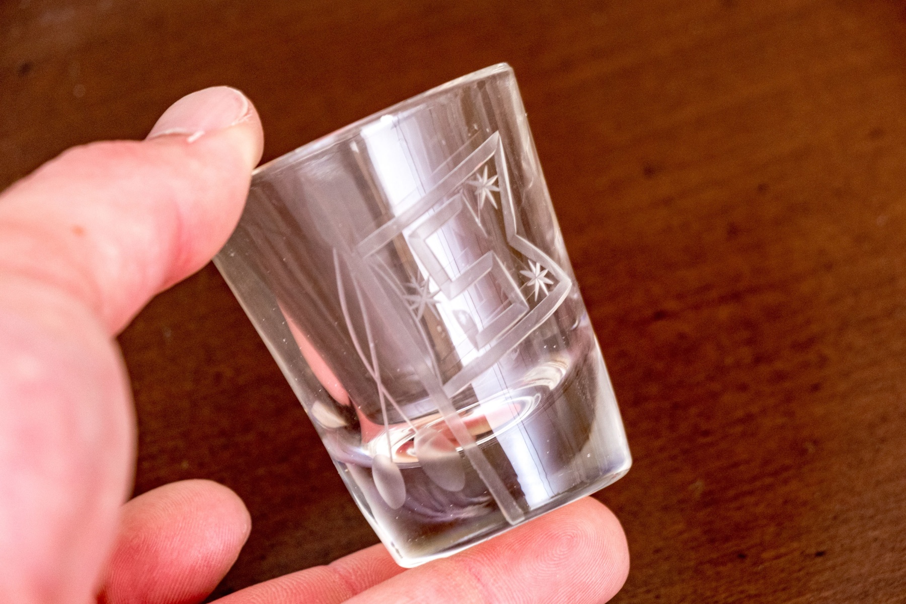 13 double shot glasses: 3 1/2” H x 2 1/2” Dia.