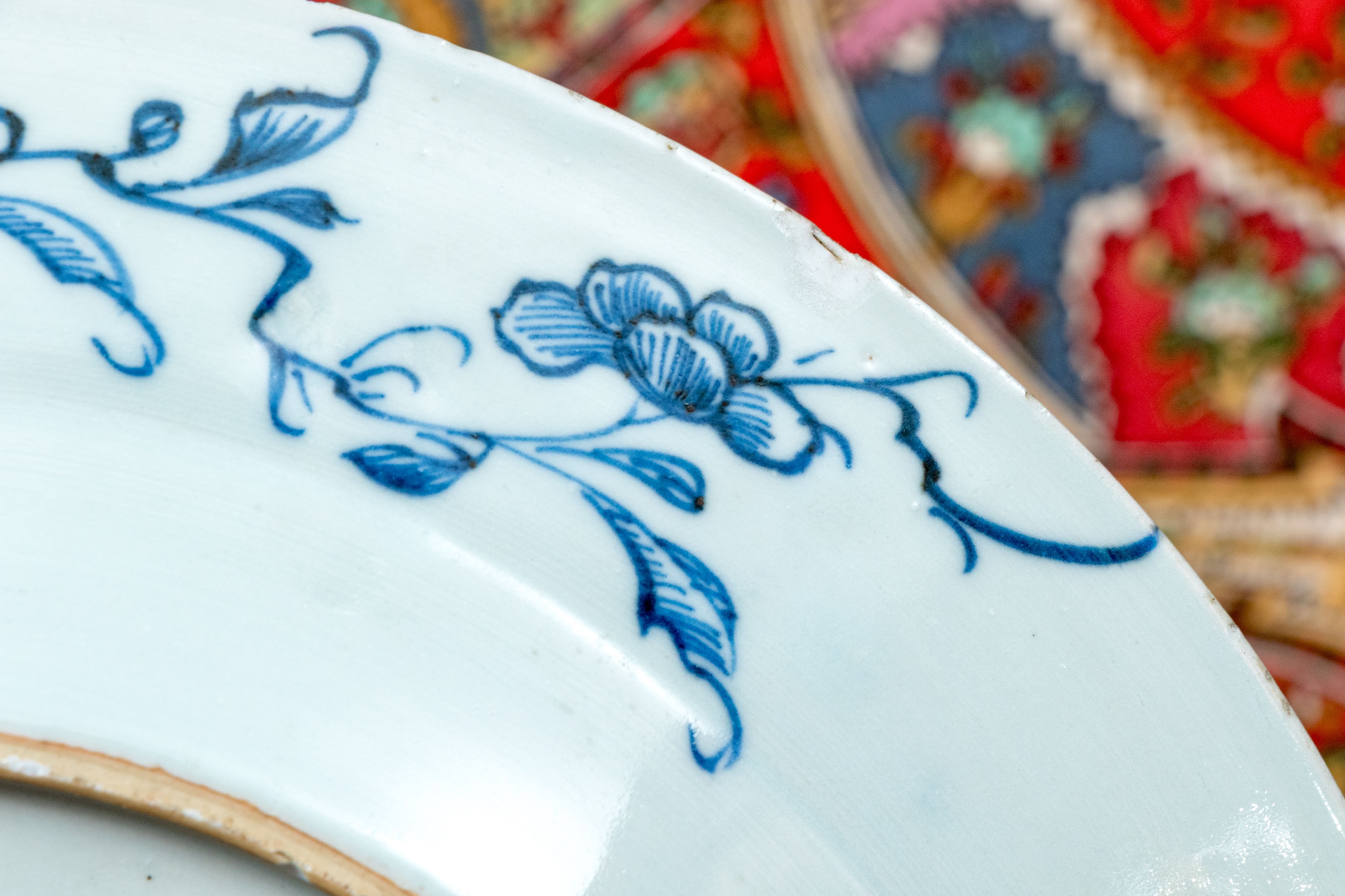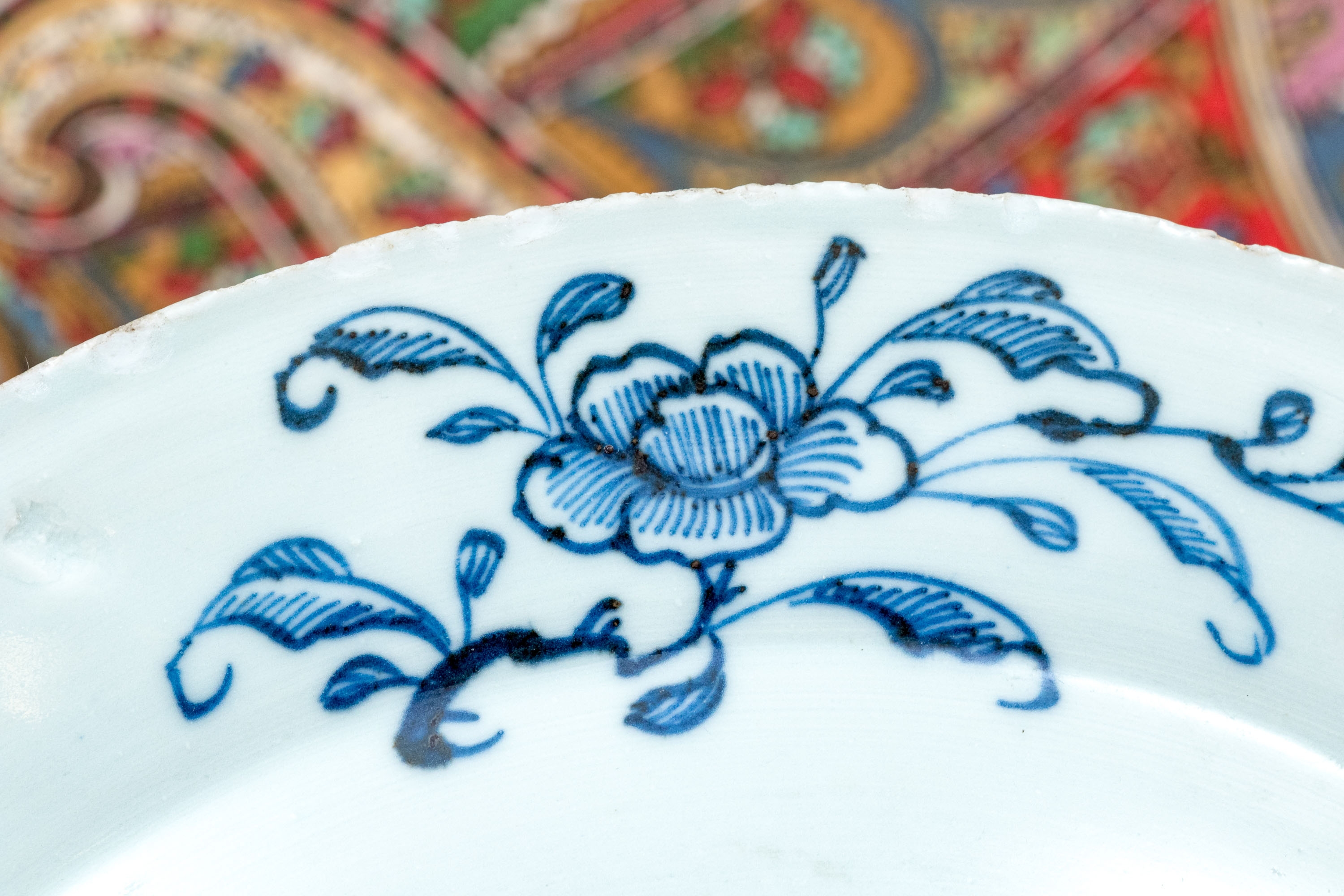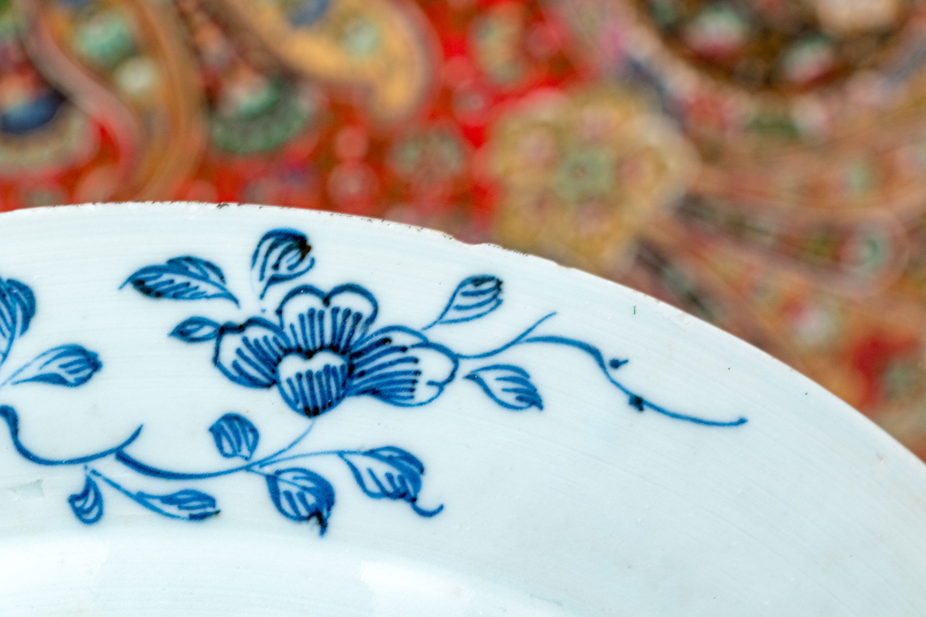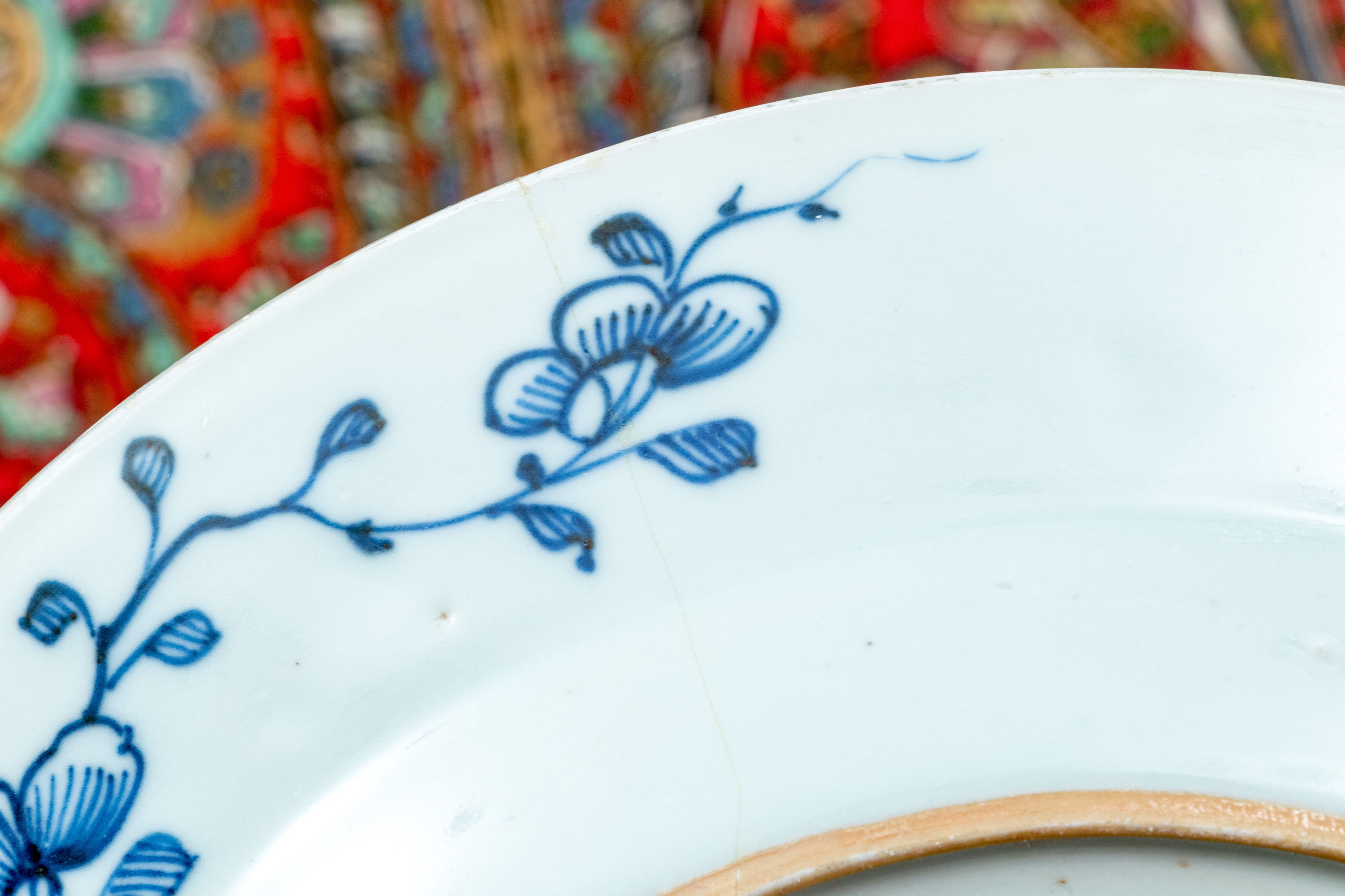 Each wonderfully decorated with underglaze blue motifs depicting figures in architectural landscapes with ornately decorated rims.