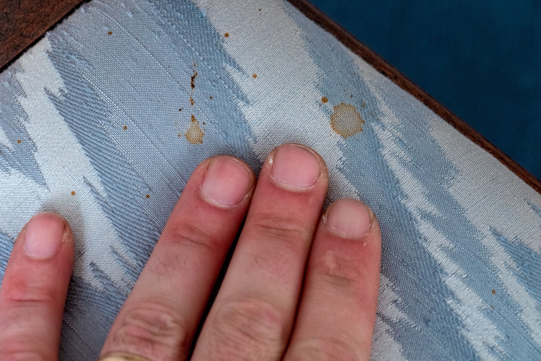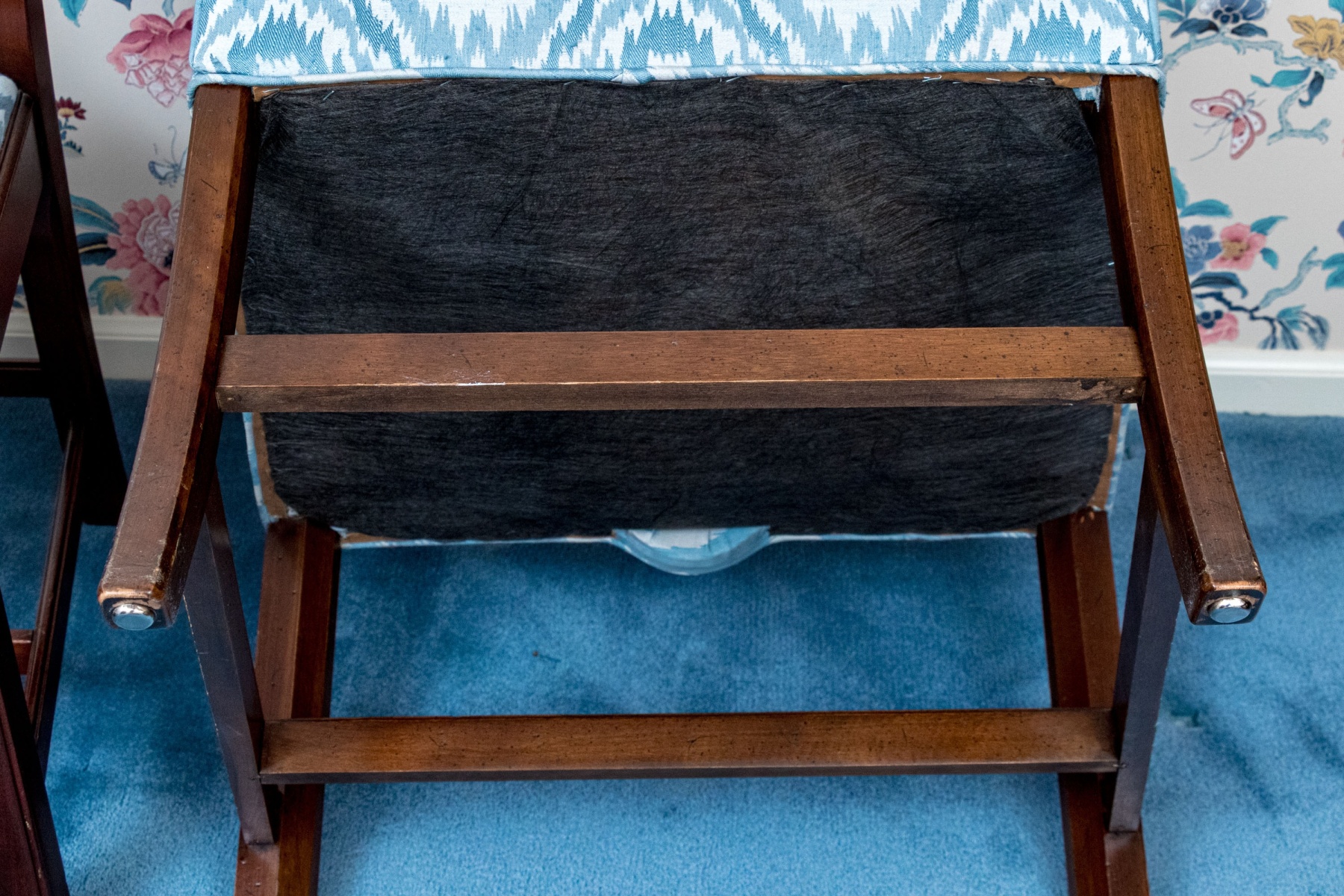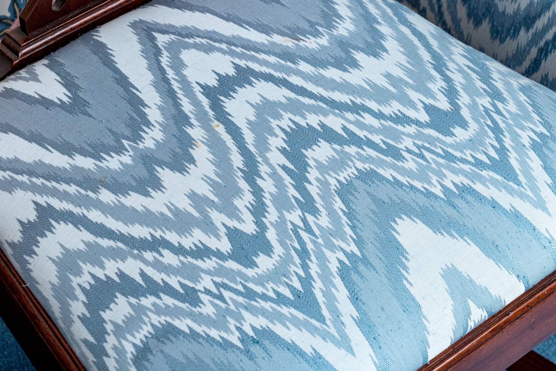 Chips and minor blemishes to finish on legs and wear to the upholstery commensurate with age and use but overall a very handsome set.