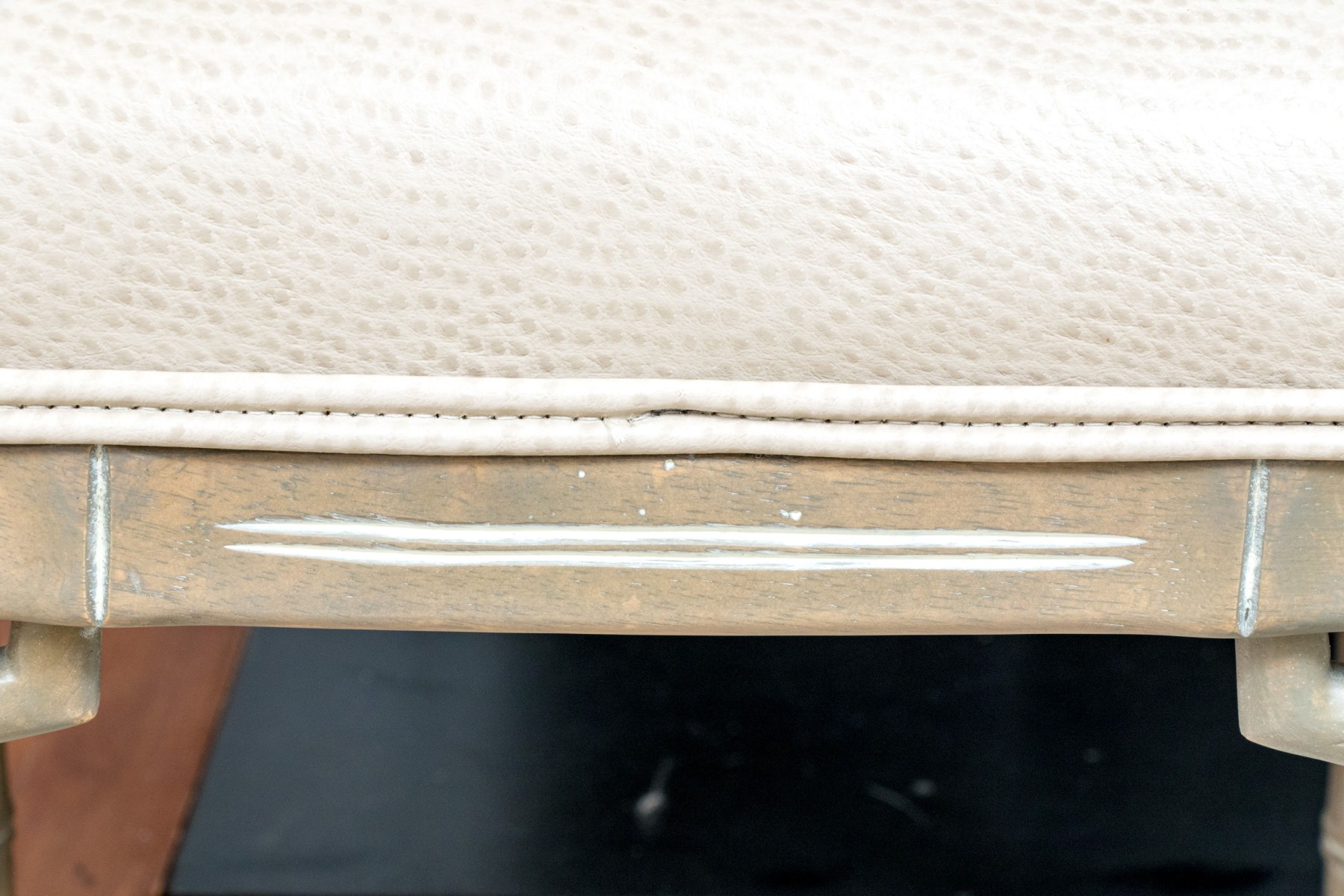 Good overall, all present well with fabulous decorative style. Some scattered finish wear and wear to the piping around the upholstery that does not detract from the overall appearance. Please review the pictures as they are a part of the condition report.