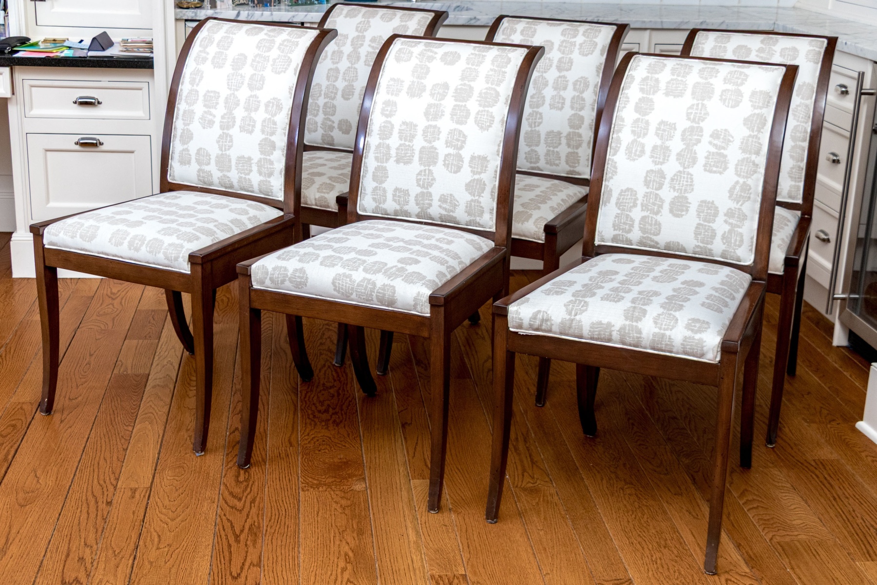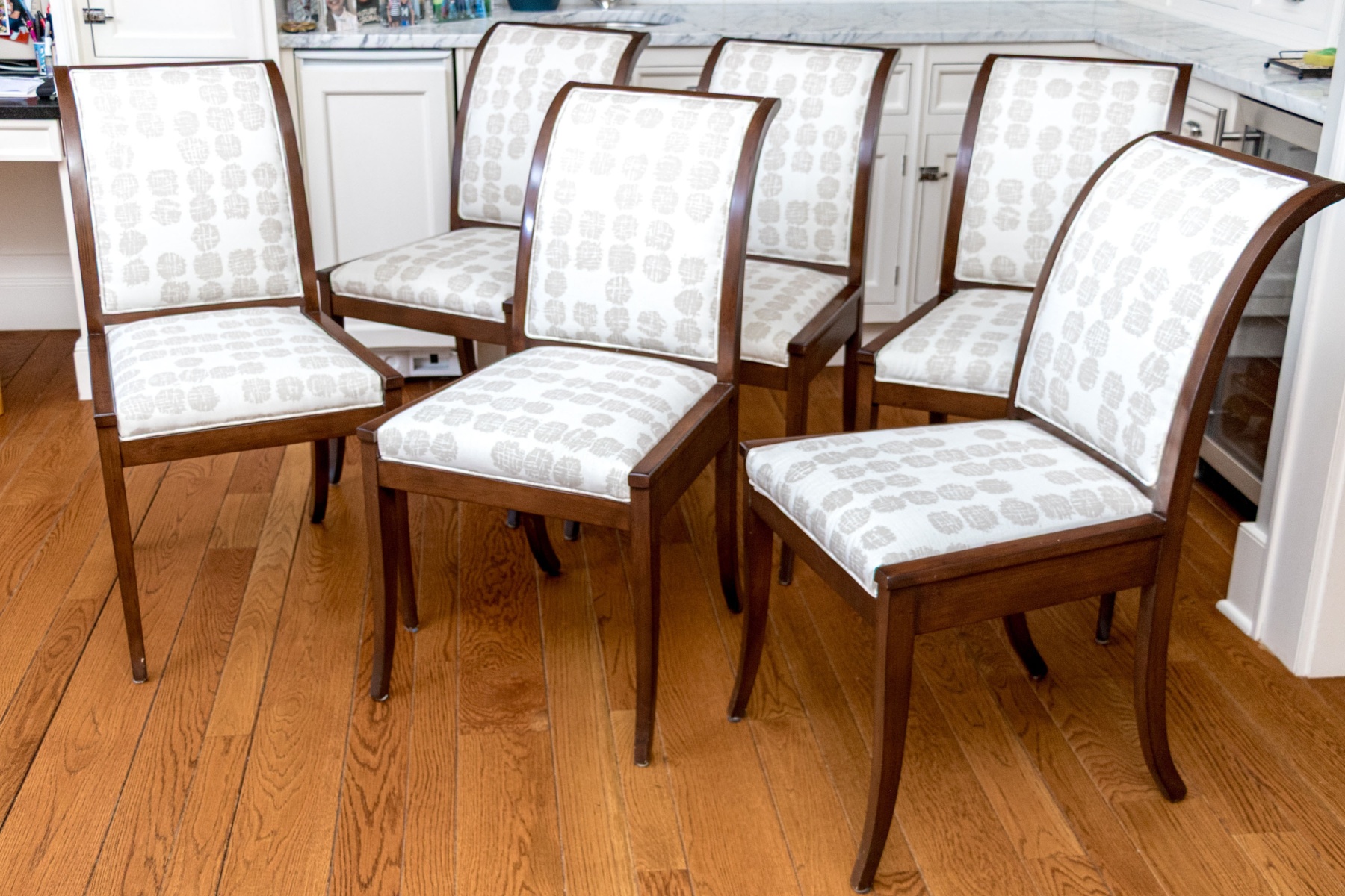 Set Of Six Custom Upholstered Regency Style Klismos Side Chairs #466348. Black Rock Galleries provides high end estate liquidation services through online estate auctions and a 50,000 sq ft designer showroom. estate liquidator, estate sale, online auction, antiques, fine art, liquidation, clean outs, auction, consignment, interior design, fine jewelry, collectibles, appraisals, estate appraisals, estate services, decor, furniture, furniture consignment, antique center, consignment shop. We offer appraisal services and specialize in fine art, jewelry, antiques and decorative arts. Sell with us. Black Rock Galleries is the tri-state's largest estate liquidator serving New England and the greater New York City area. We are the trusted source for expert appraisals, auction services, estate sales, and consignments. Black Rock Galleries is the east coast's largest and most trusted estate liquidator, with locations in Connecticut, greater Boston, MA and Raleigh, NC, Fairfield, Southport, Apex, TX. We are the best source for expert appraisals, auction services, estate sales and consignments. We have served thousands of families and estates with compassion, professionalism and expertise. BRG works with attorneys, executors, realtors and families to bring the greatest return on personal and estate property in the current market. Our unique combination of services make us the easy choice to get the job done in a timely and stress-free manner. We are with you from the initial consultation to the final clean out. Our house-built online auction software platform offers clients a dynamic approach to liquidating their personal property. This venue is most successful in bringing the best return with the least amount of disruption for our clients. See our services page for a complete description of this offering. Set Of Six Custom Upholstered Regency Style Klismos Side Chairs #466348