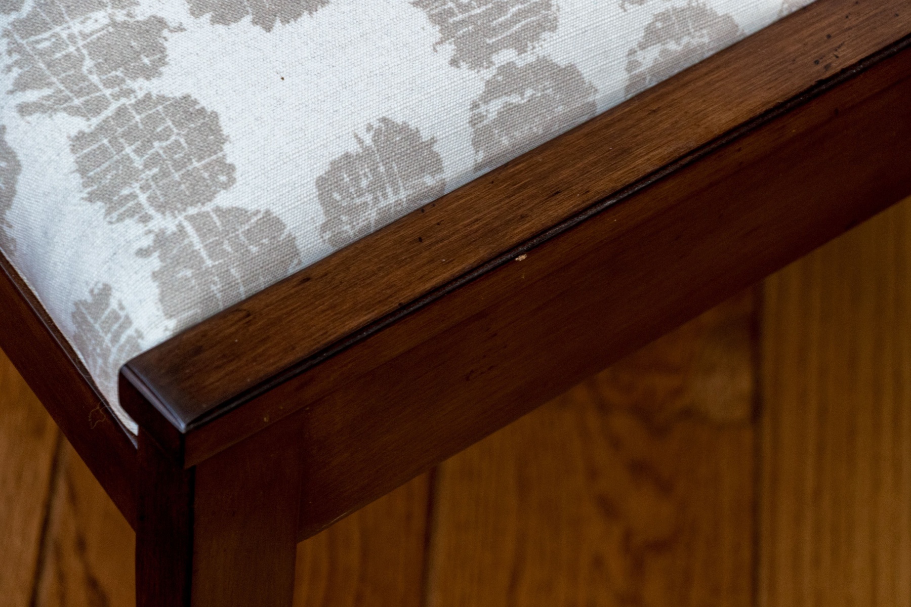 Some chairs with modest wear to the upholstery, notably at the front trim where ones legs would rest and some loose material to the front commensurate with gentle care and light age.