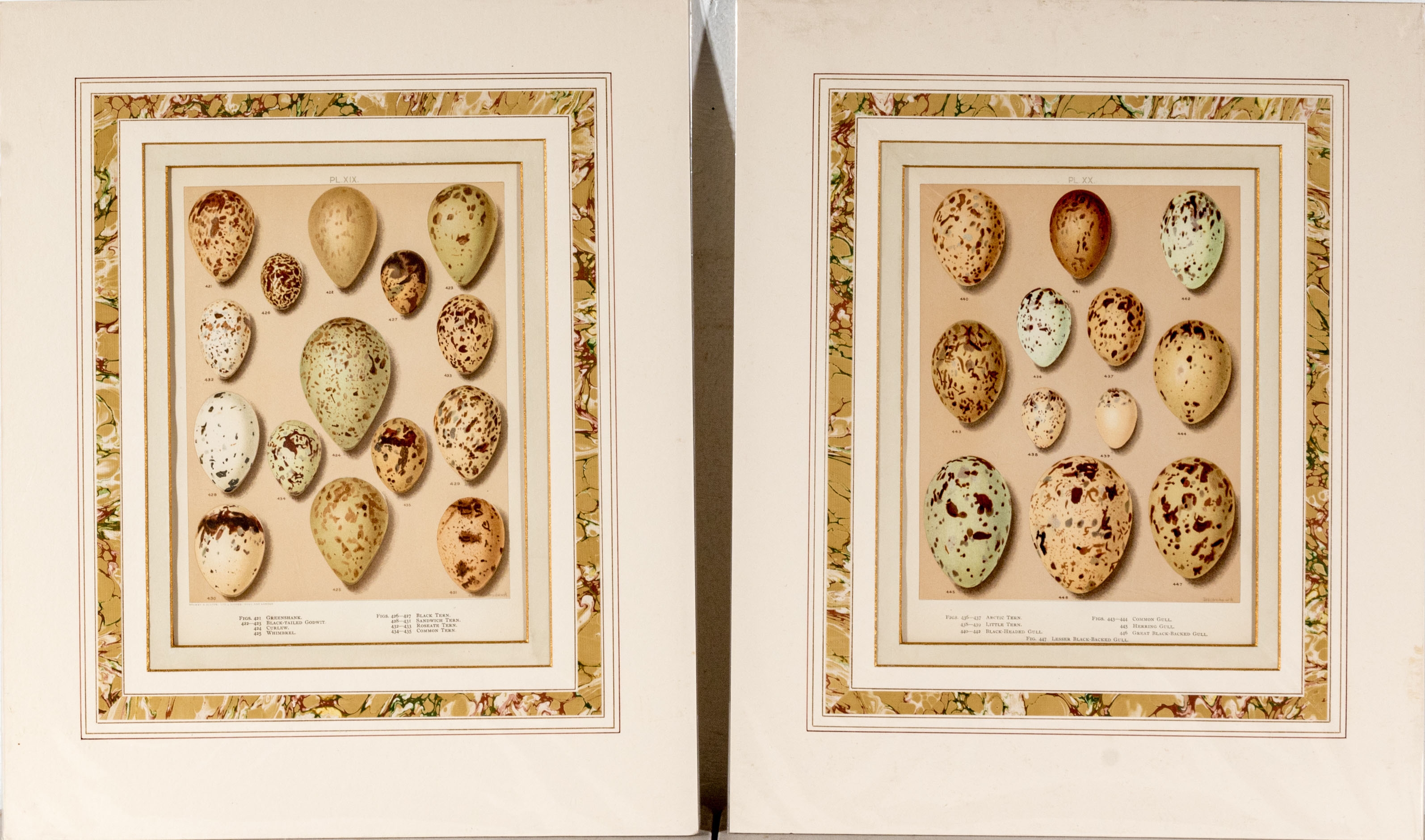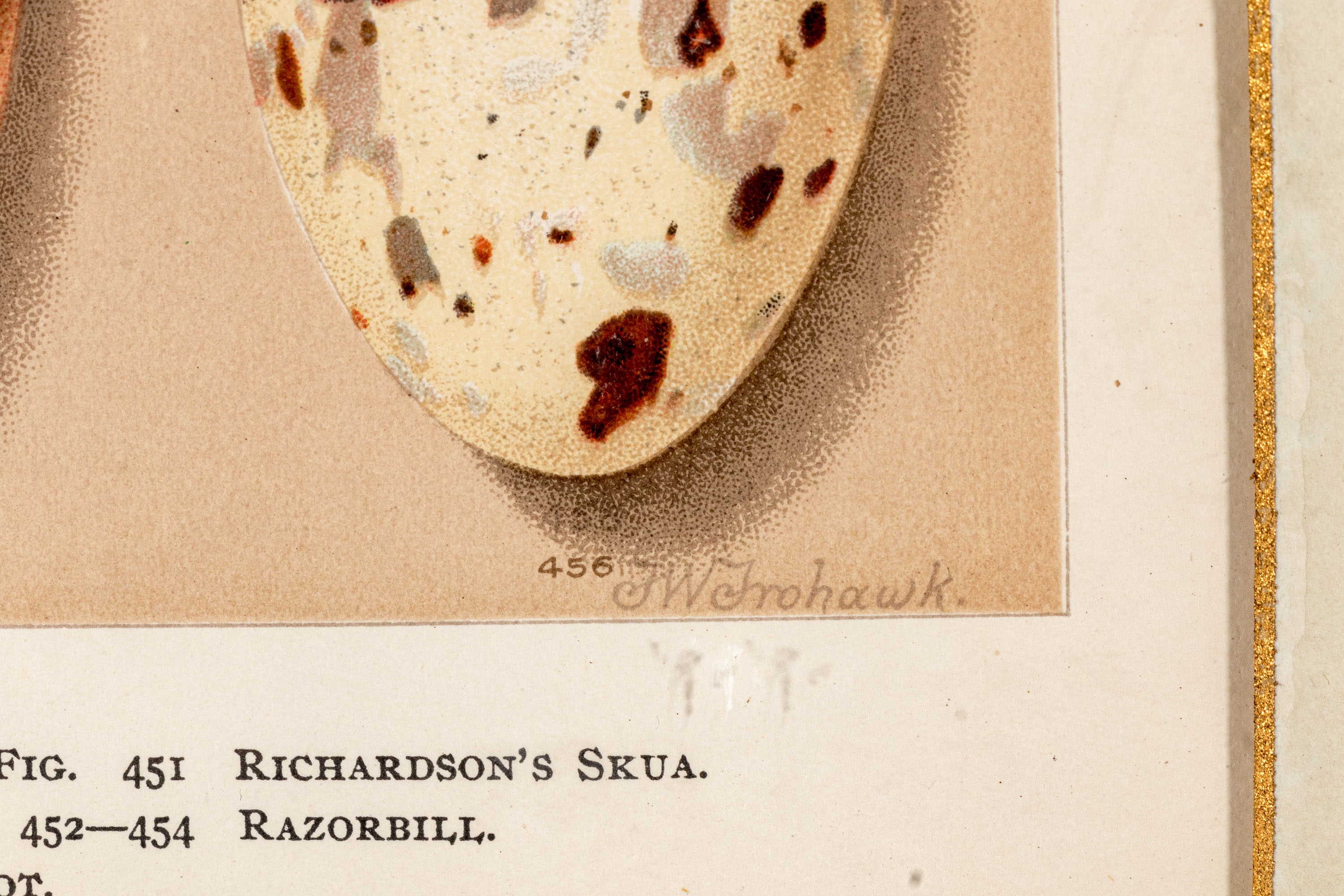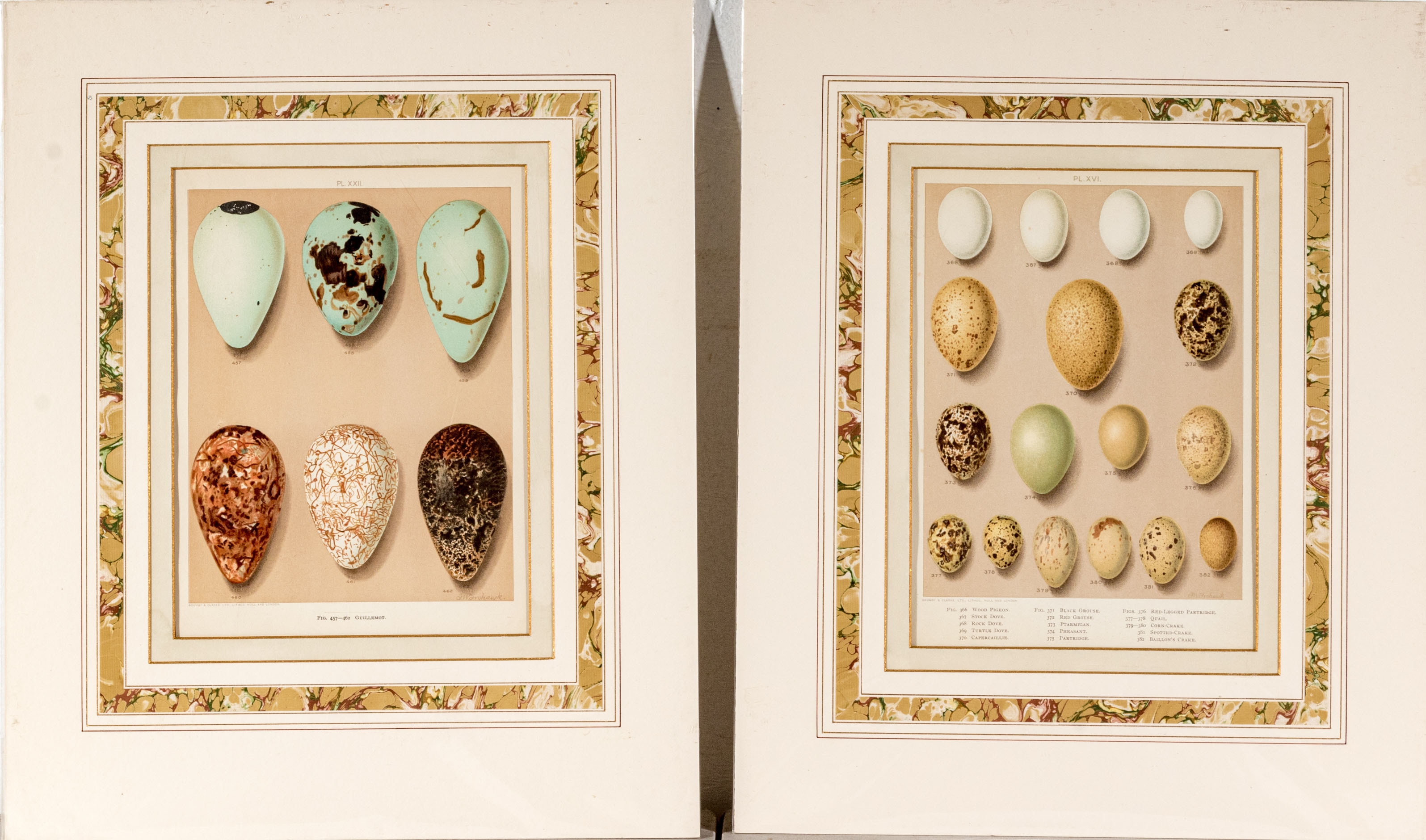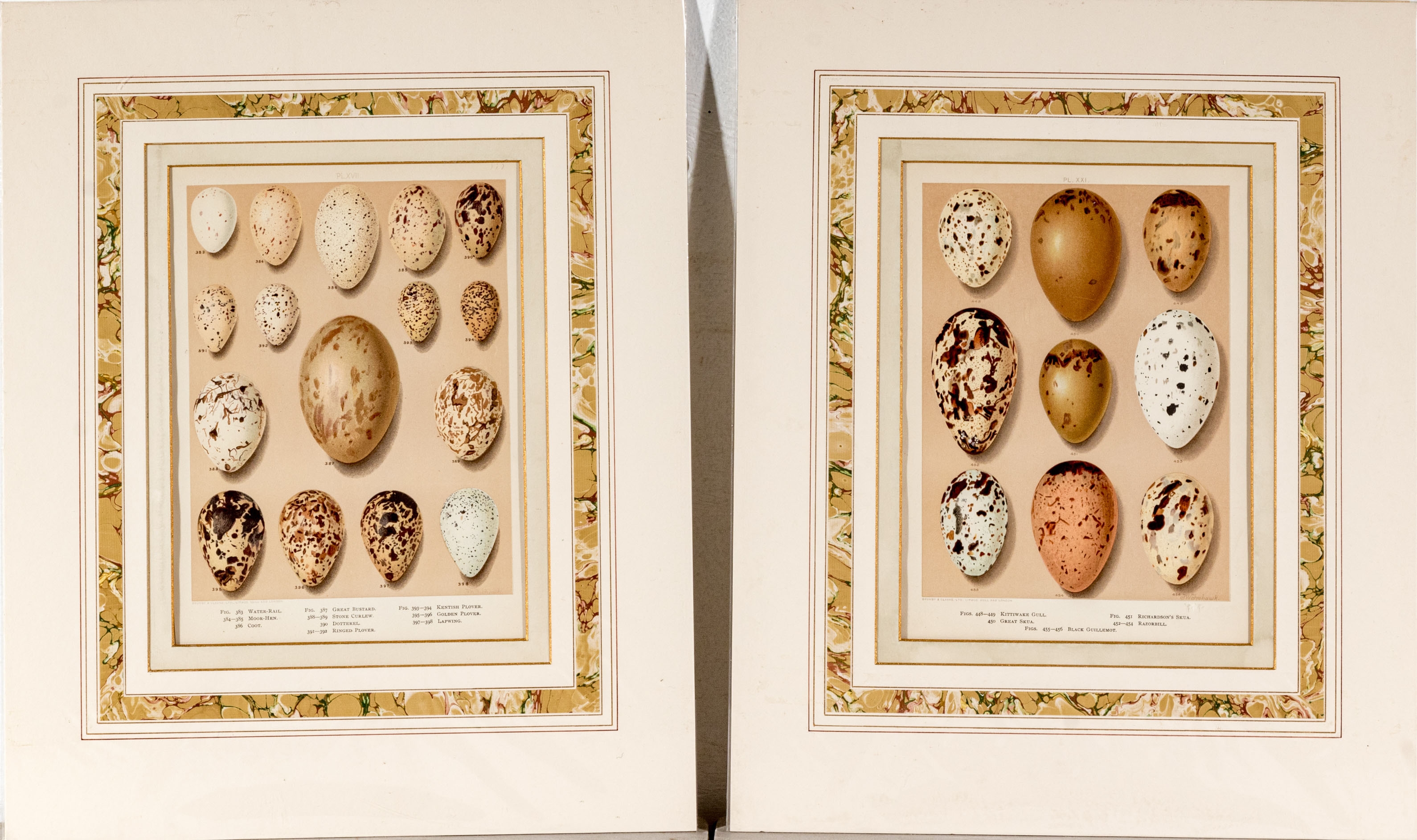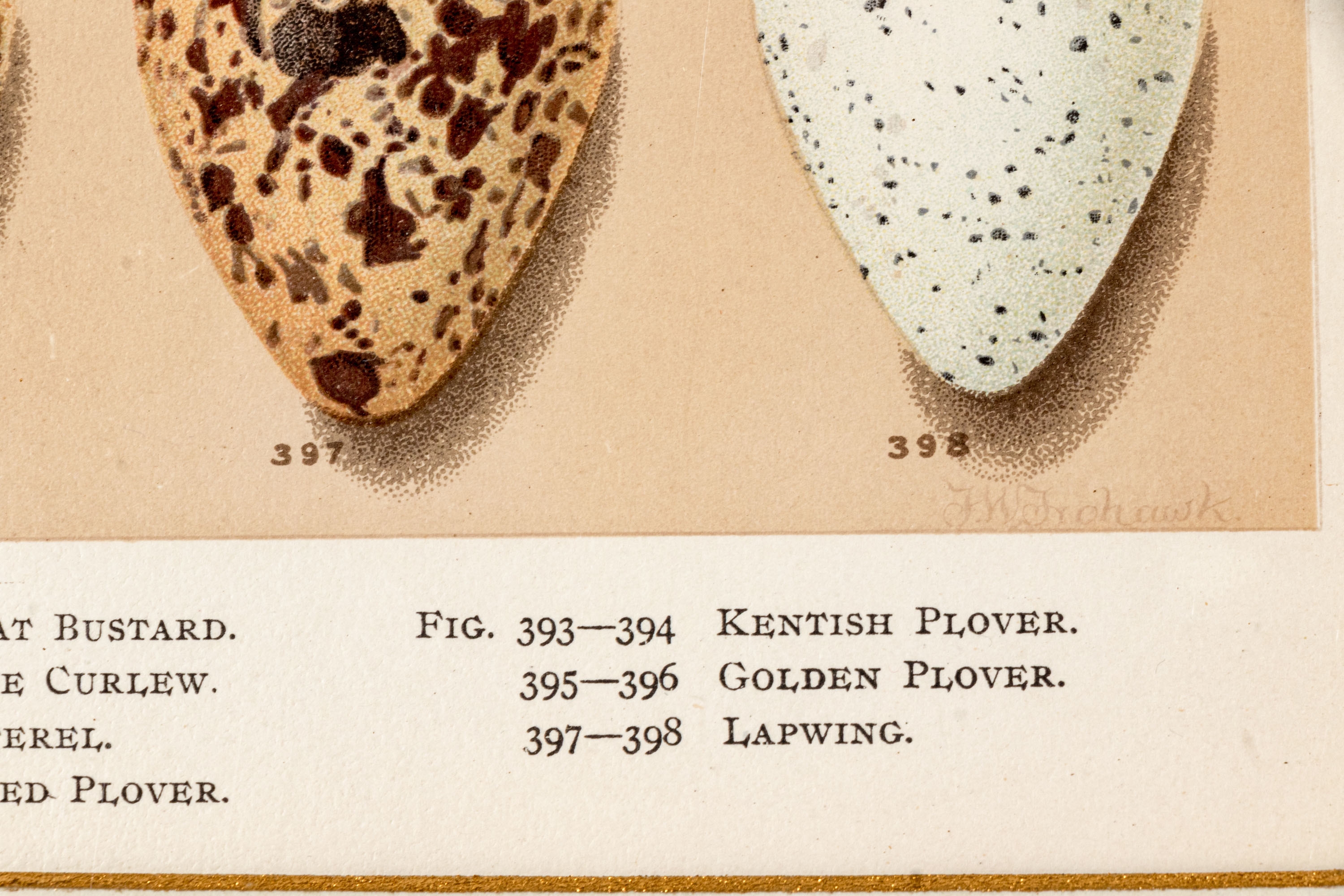 Printed in London by Grumby & Clarke after F.W. Frohawk (UK, 1861-1946) zoological artworks. Colorful eggs from a variety of shore and game birds Including pheasant, dove, terns, plovers, gulls, et al. Unframed and presented finely matted and wrapped in plastic.