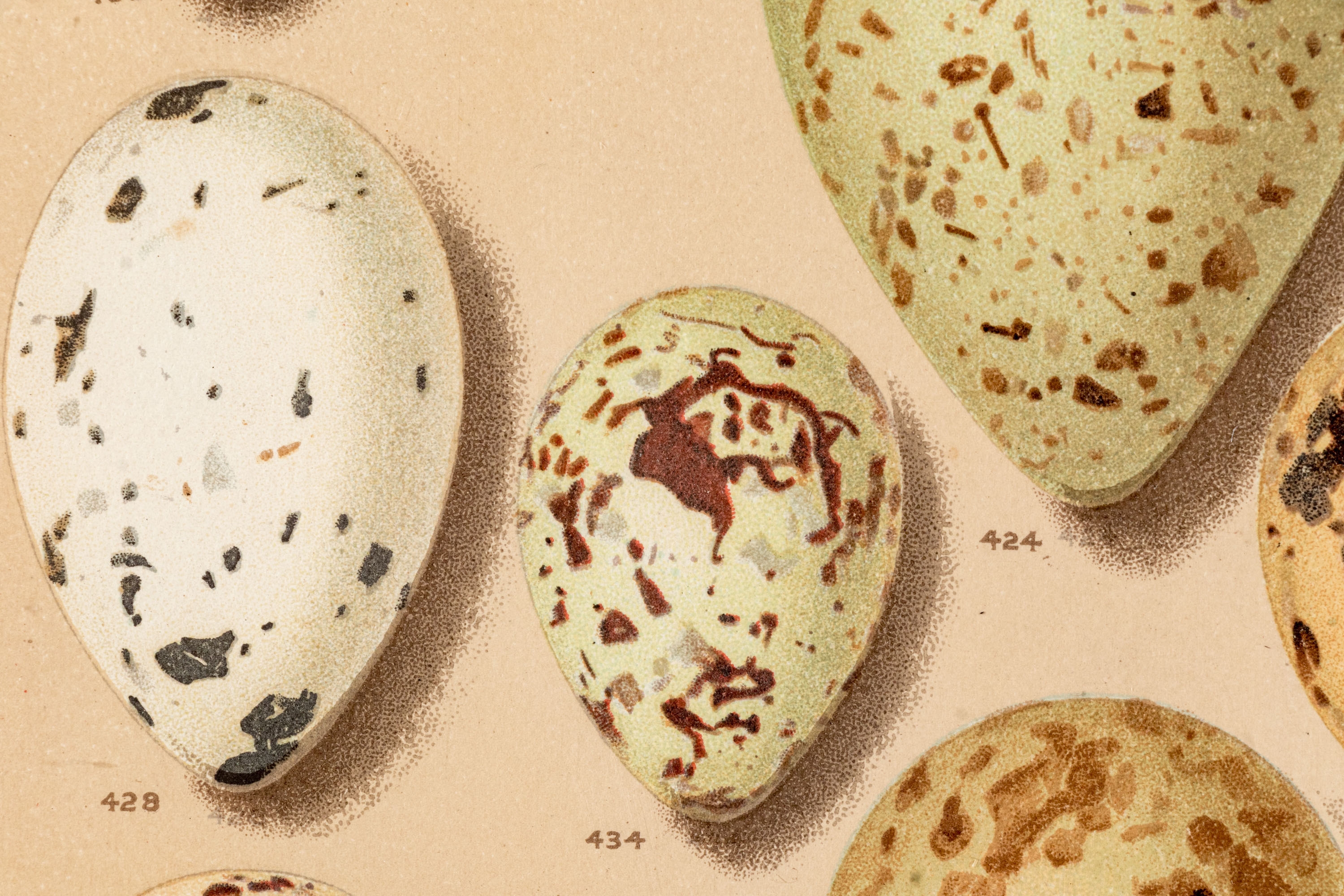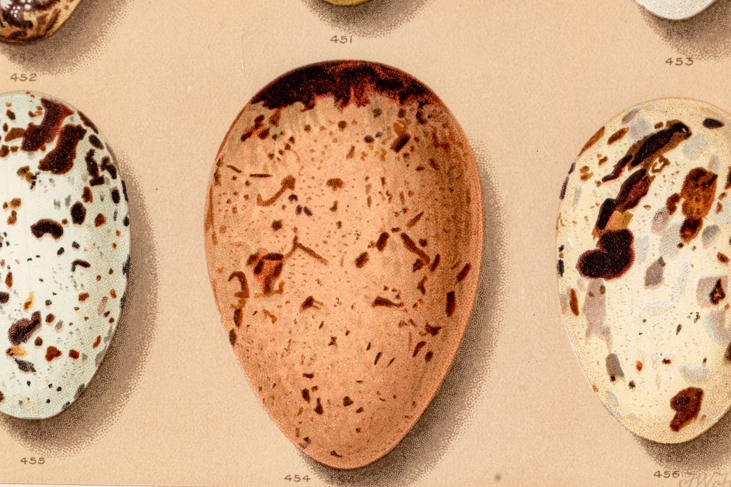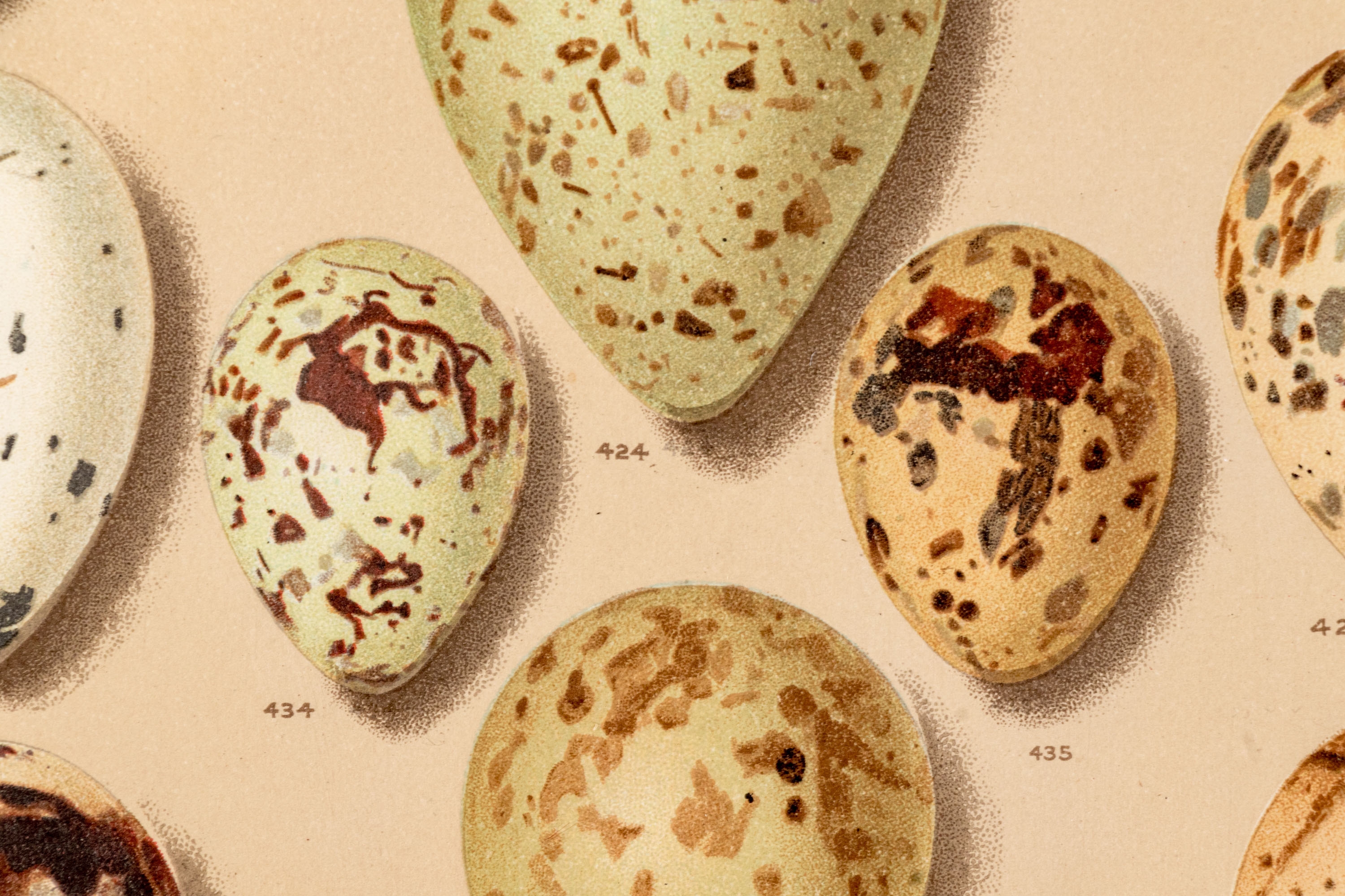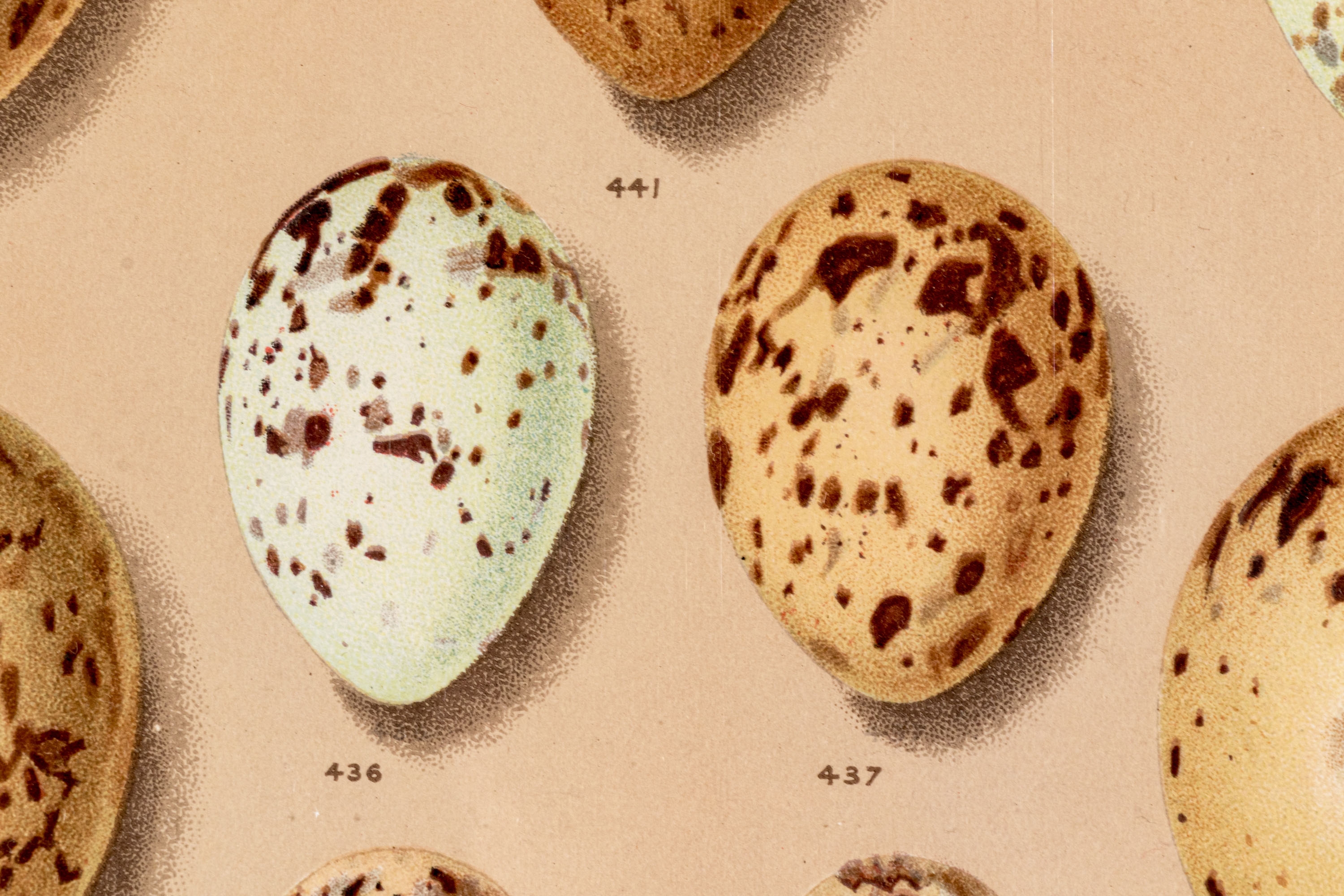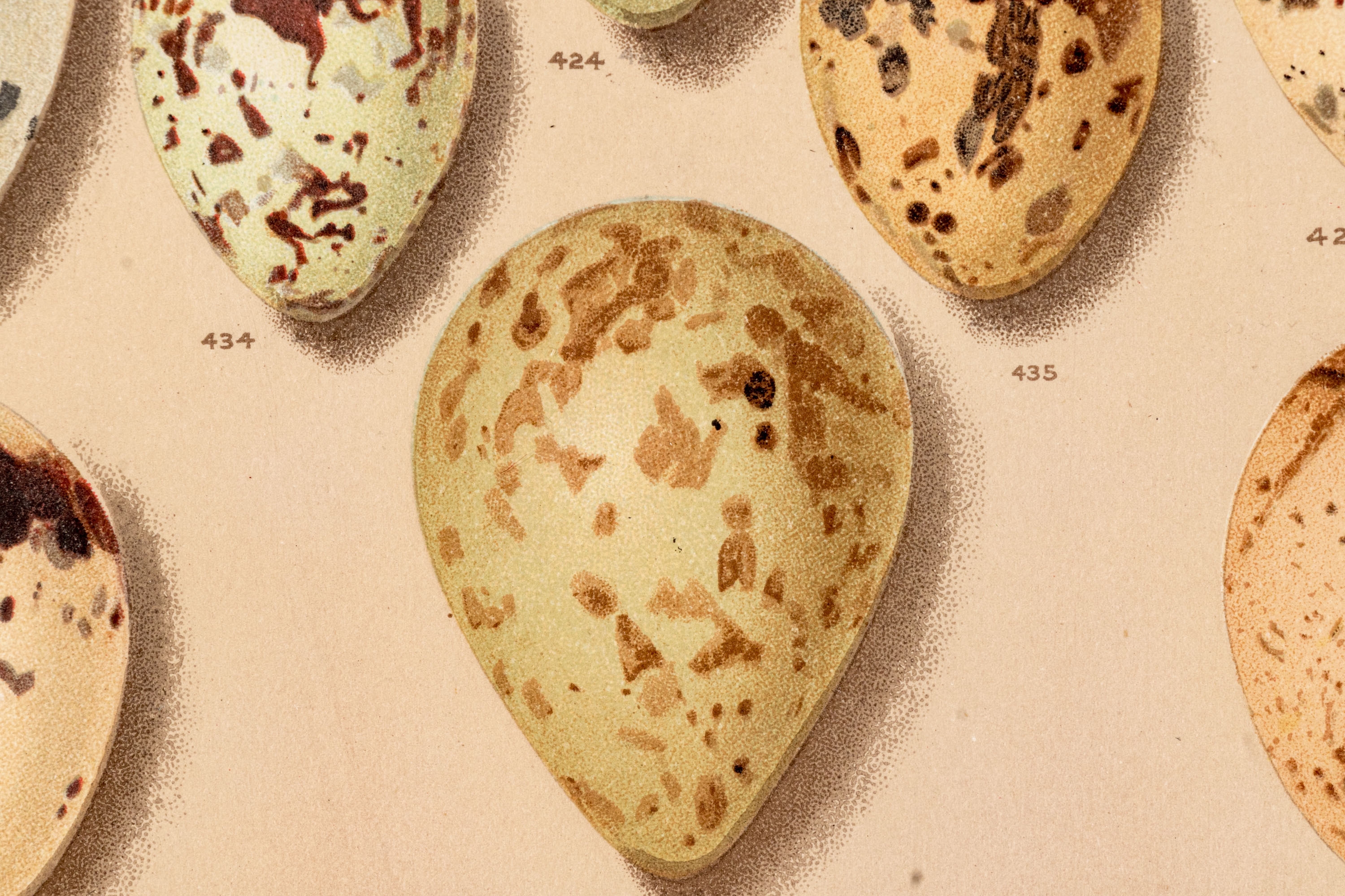 Printed in London by Grumby & Clarke after F.W. Frohawk (UK, 1861-1946) zoological artworks. Colorful eggs from a variety of shore and game birds Including pheasant, dove, terns, plovers, gulls, et al. Unframed and presented finely matted and wrapped in plastic.