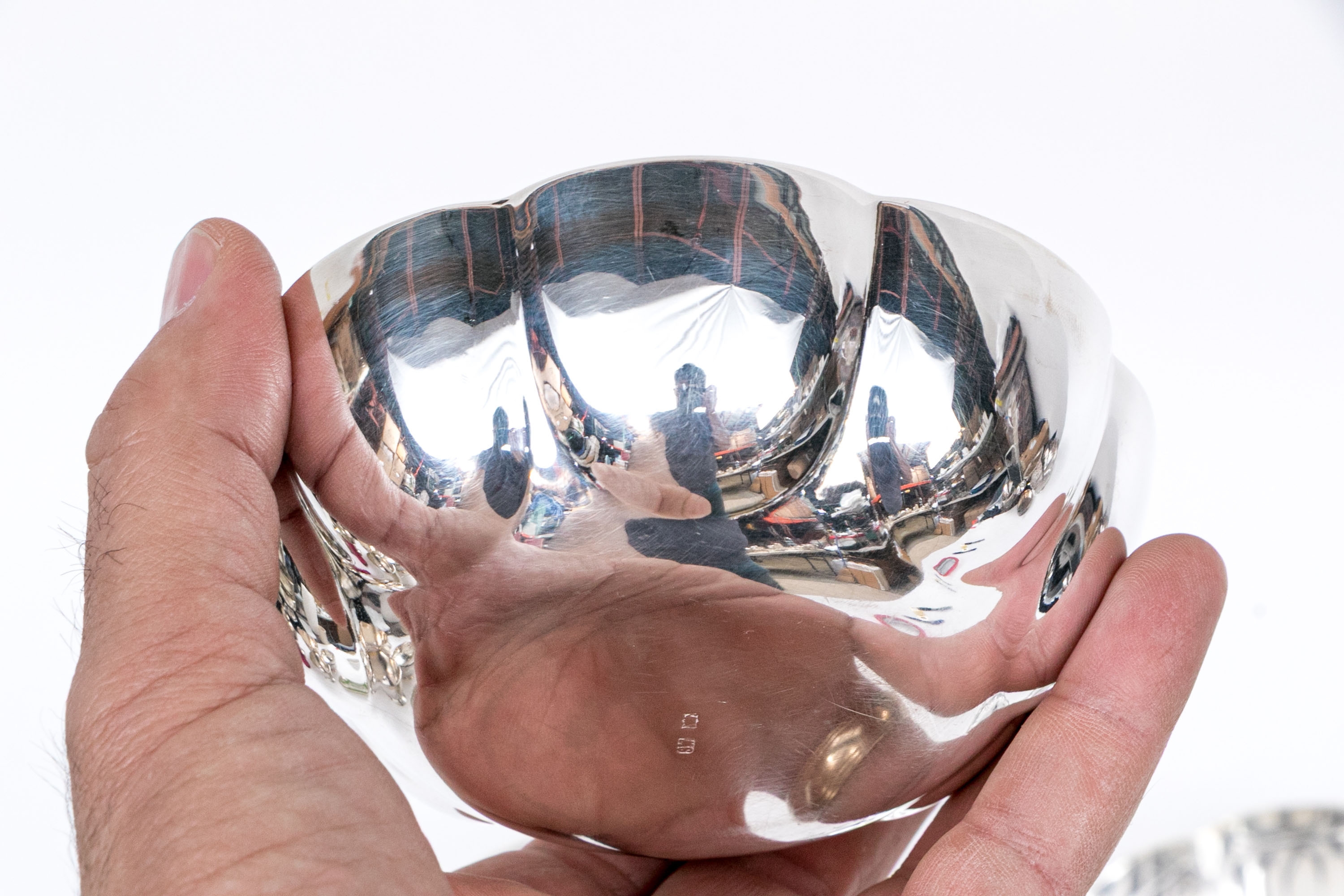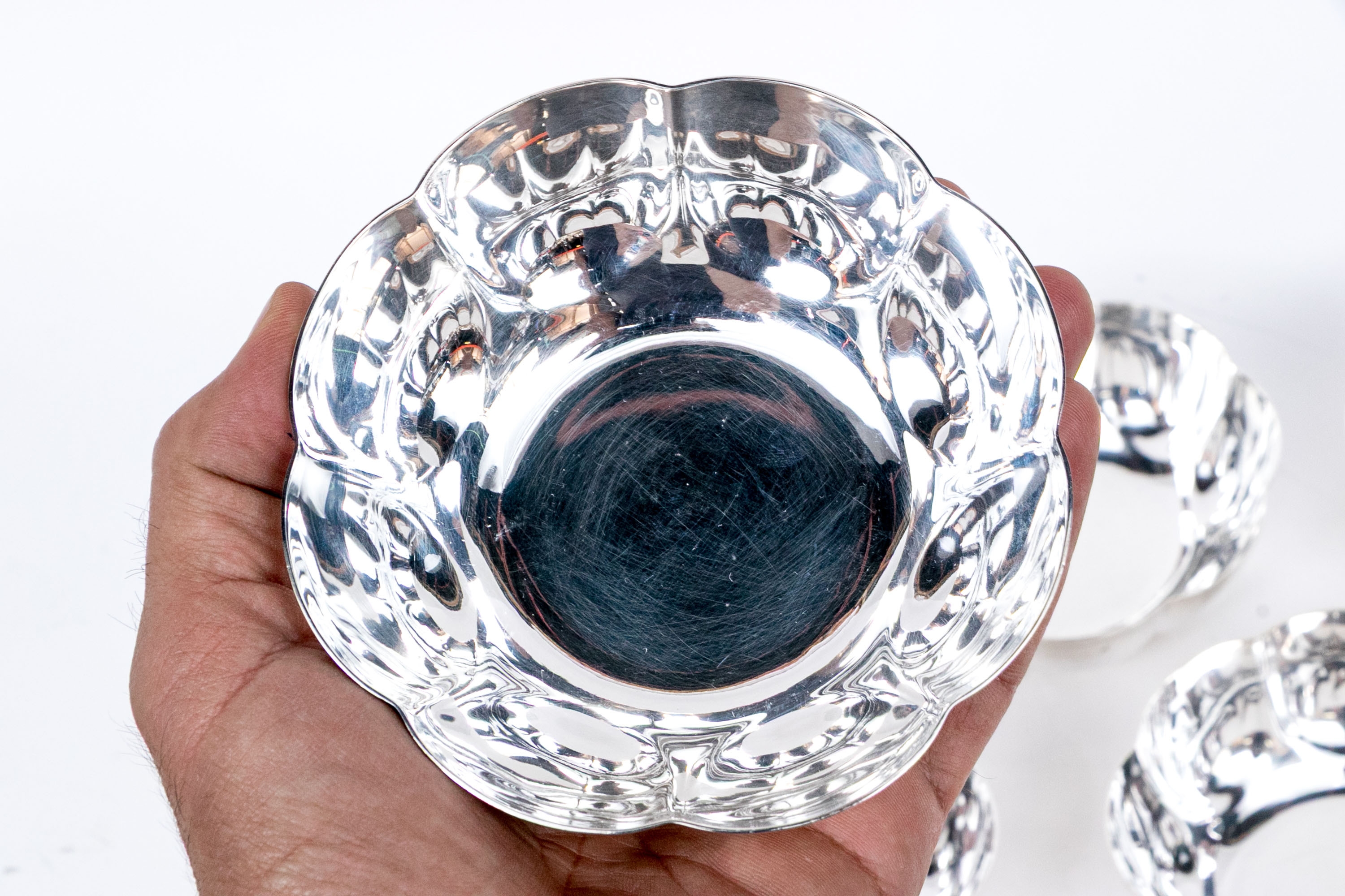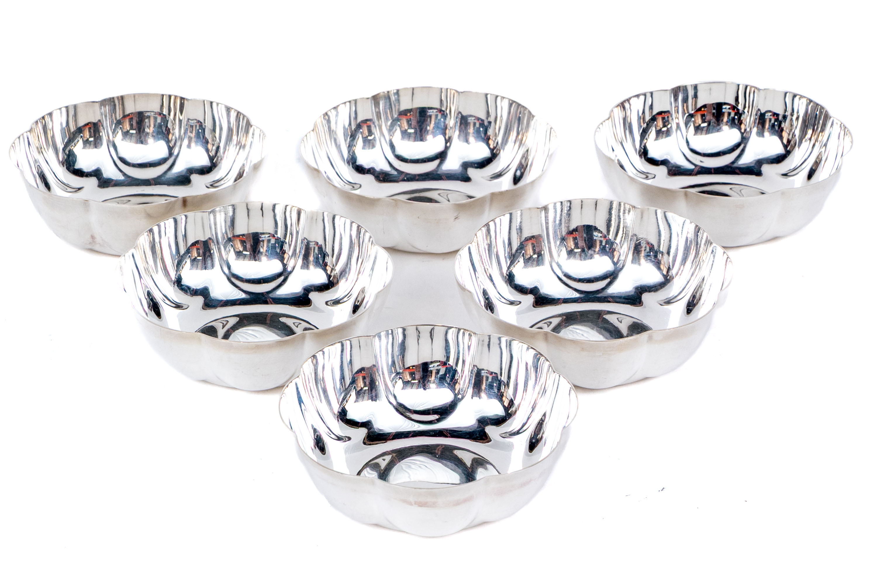 Fine scalloped lobed small bowls. They have been professionally restored and replated to a fine finish.