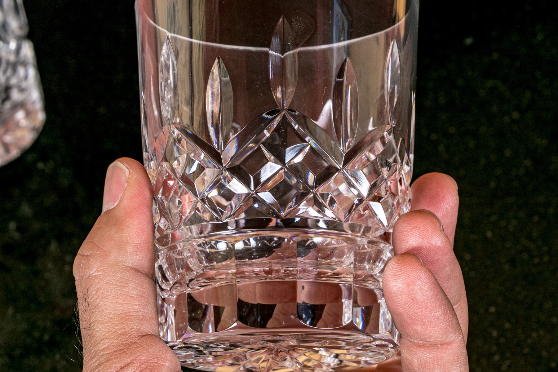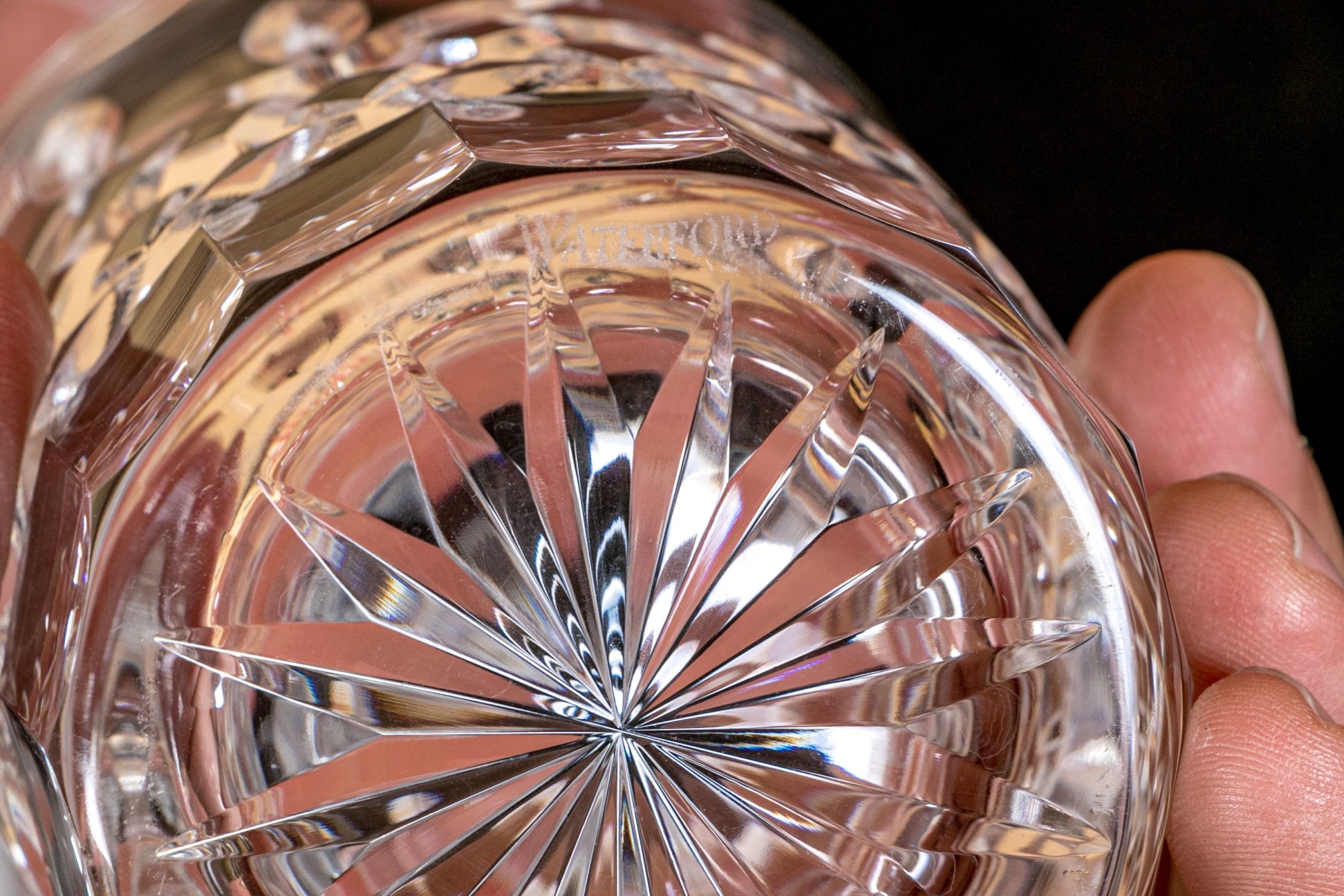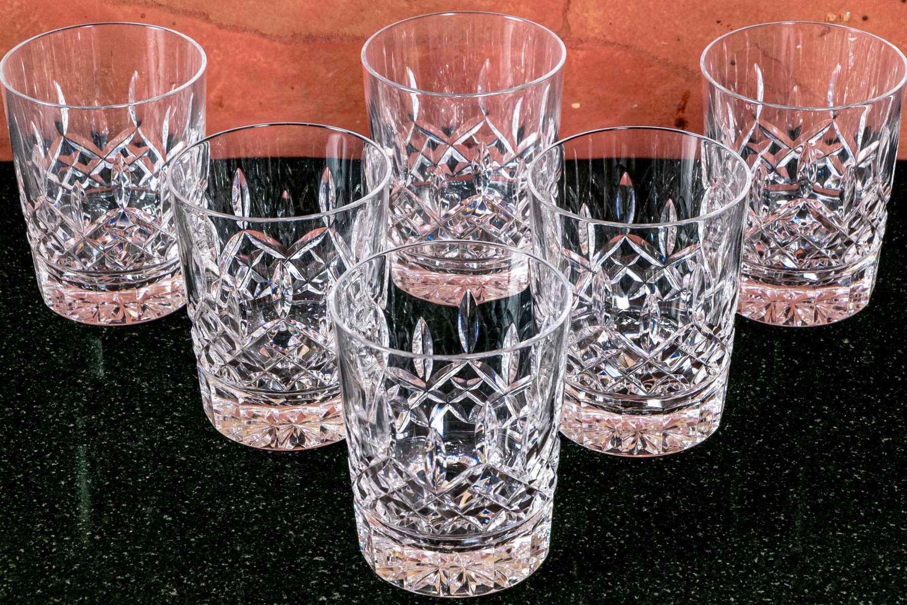 A wonderful set of six Waterford "Lismore" crystal double old fashioneds with elegant cut forms and fluted borders around the feet. Marked underfoot.