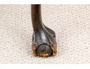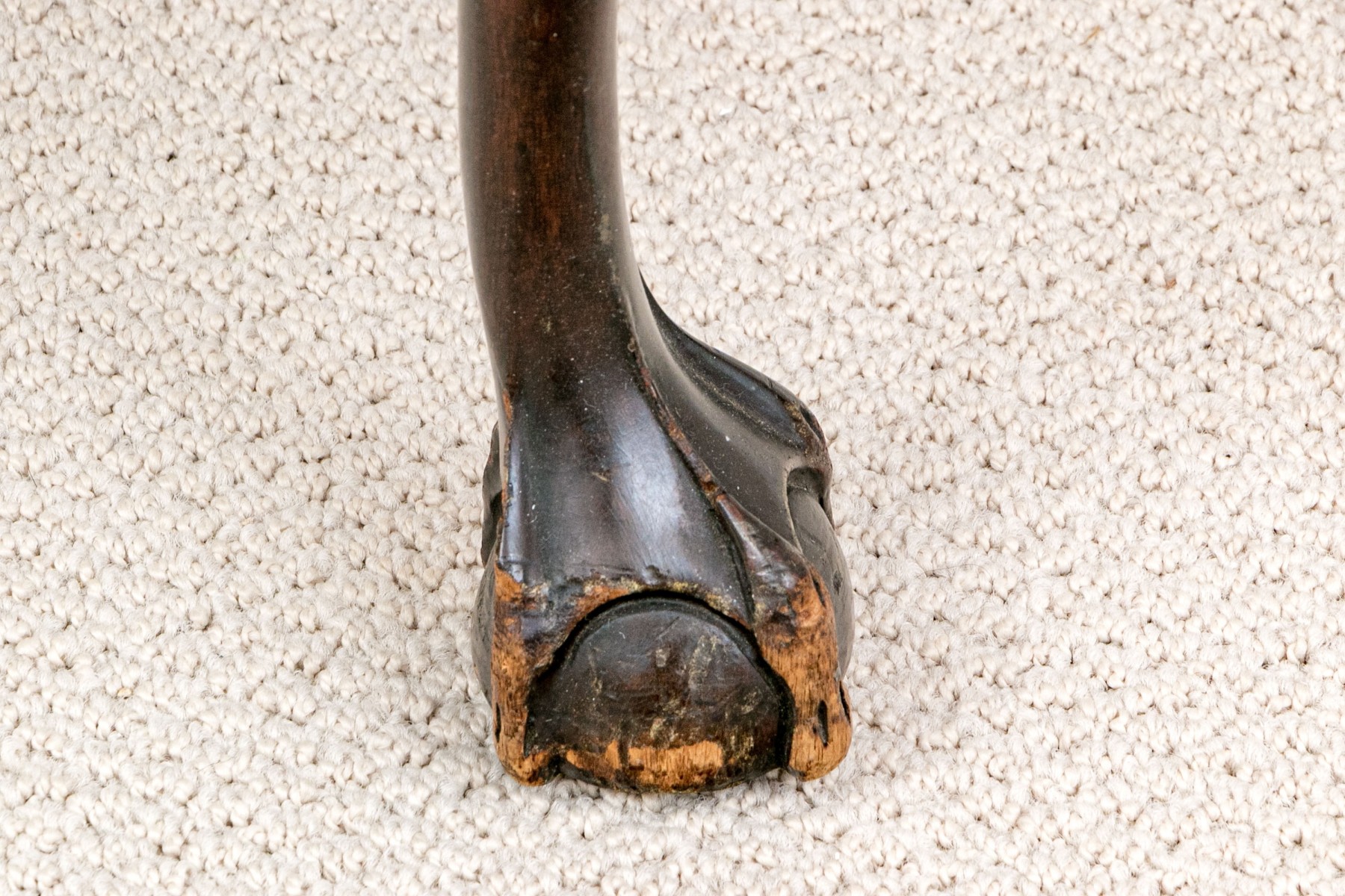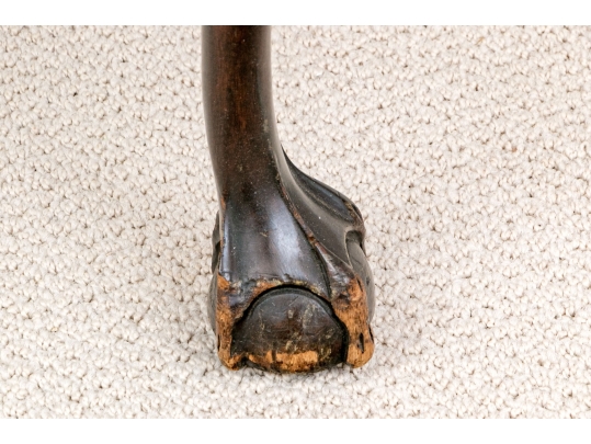 Condition: The dining chairs with good joinery, spots of heavy wear to finish, heavily worn and stained upholstery.