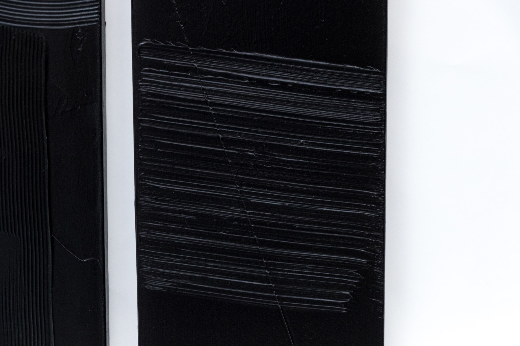 As-Is. Some wear and losses to the finish and white marks to the black impasto. See lot images. *Please note: Items may not include all original parts or accessories. Some screws, brackets, hardware, assemblies may be missing.