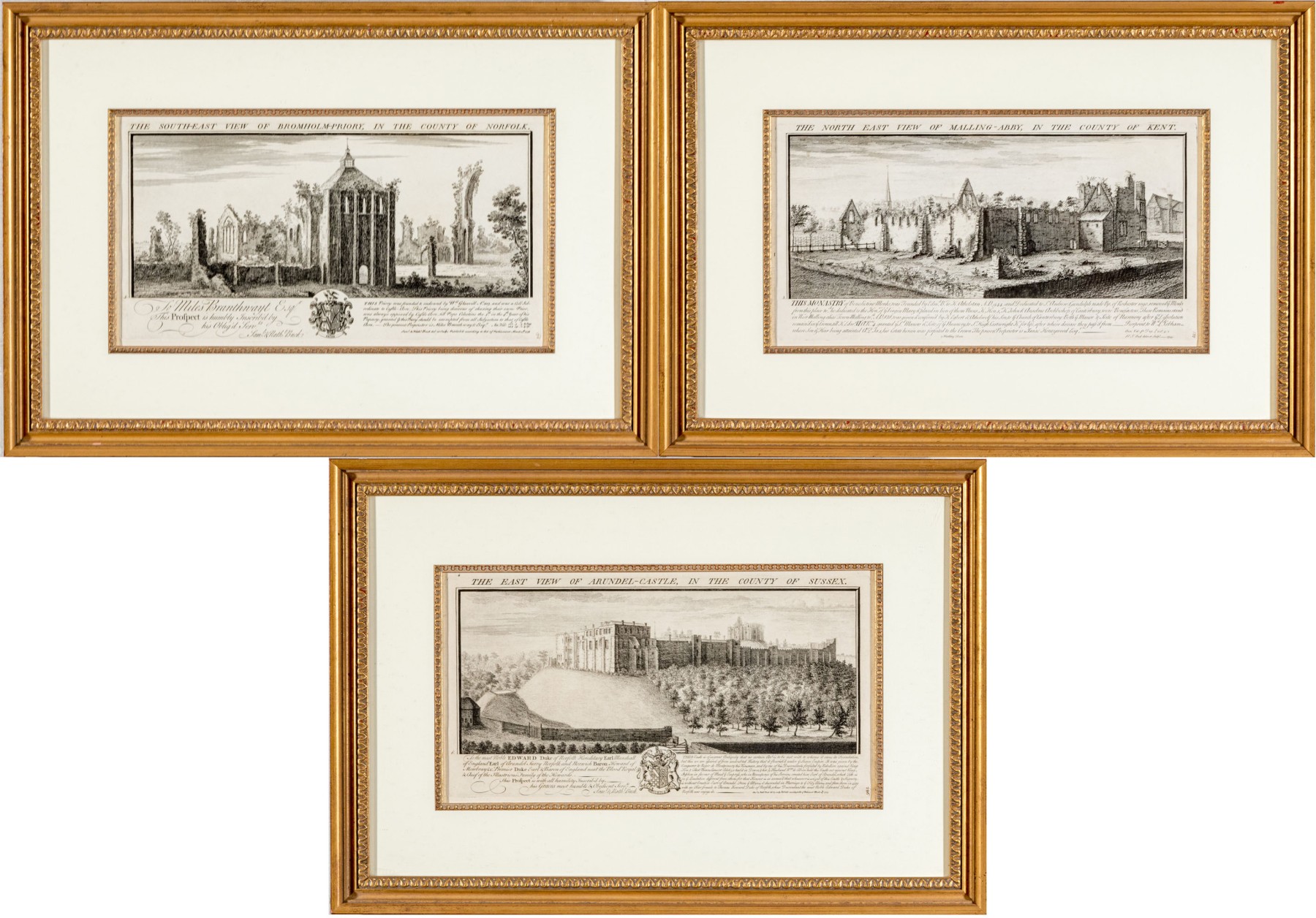 the ruins of Milling Abbey, Kent, ruins of Bromholm Priory, Norfolk, and Arundel Castle, Sussex.