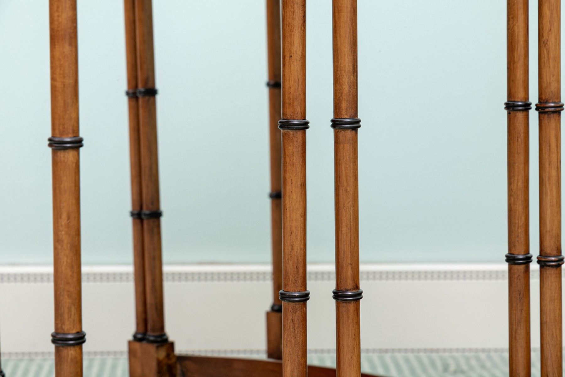 The tables stand on wonderful faux bamboo form legs with brackets with two feet, one to each side.