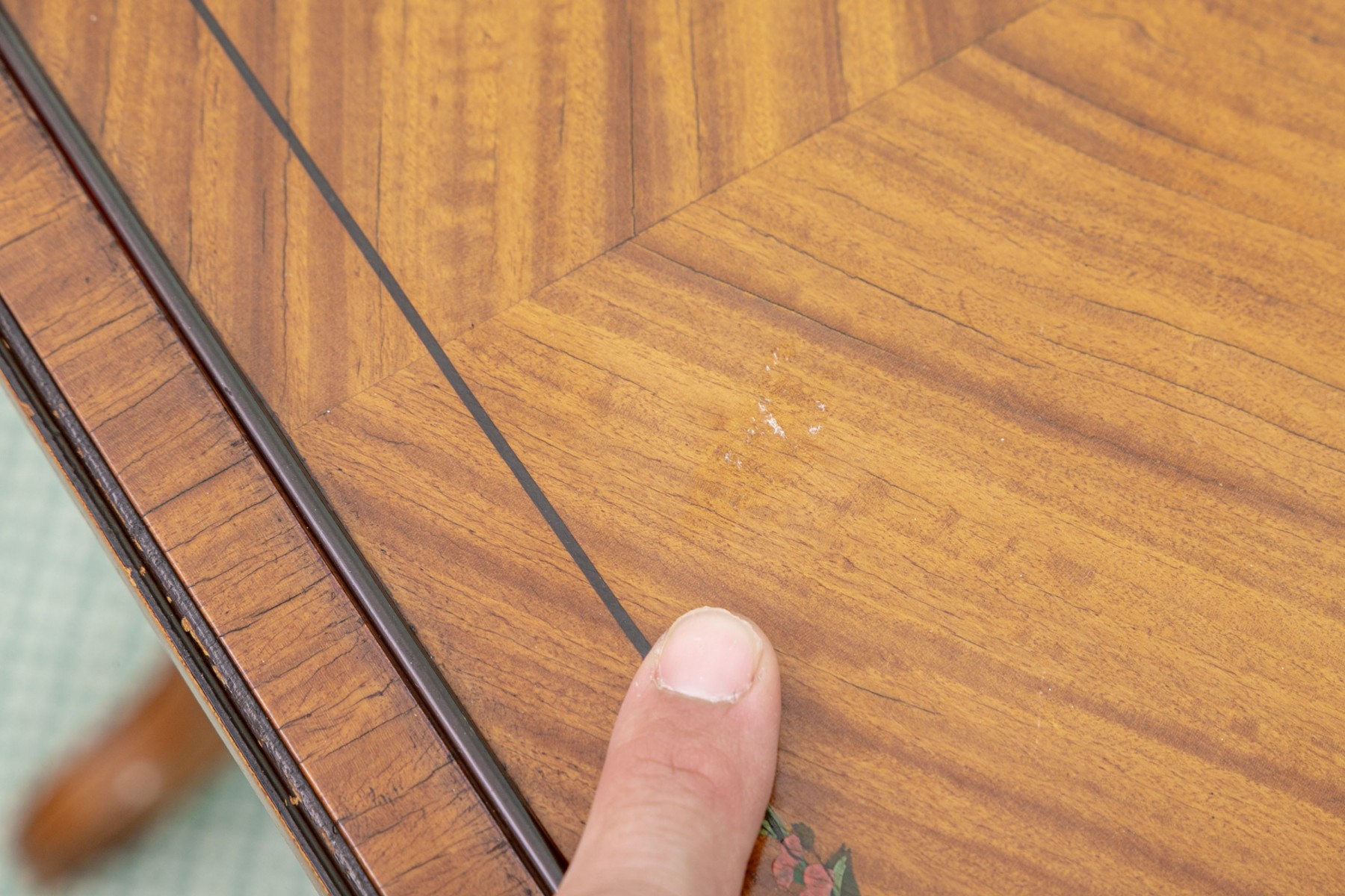Condition: Scratches and wear to the veneers with scuffs and loose joinery in spots. Overall a sweet group of nesting tables to incorporate into your home.