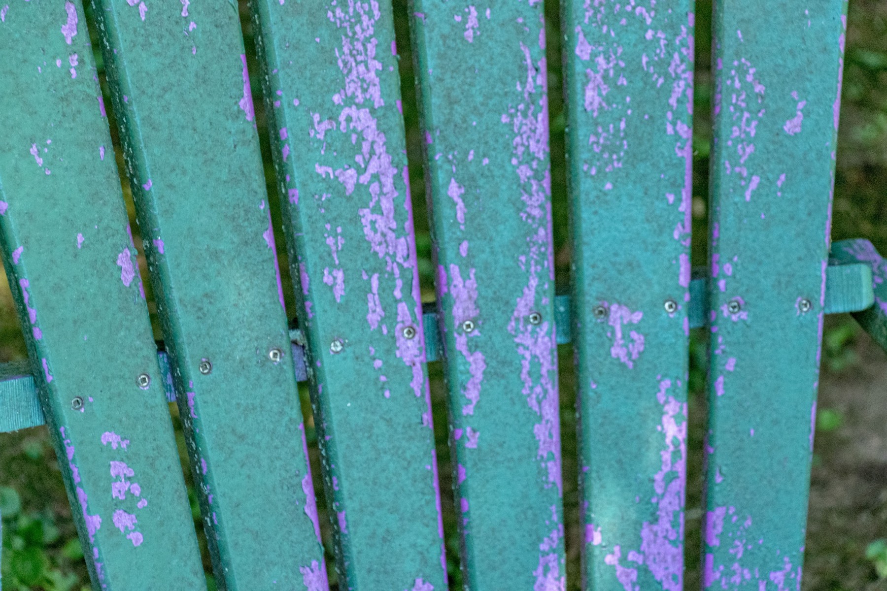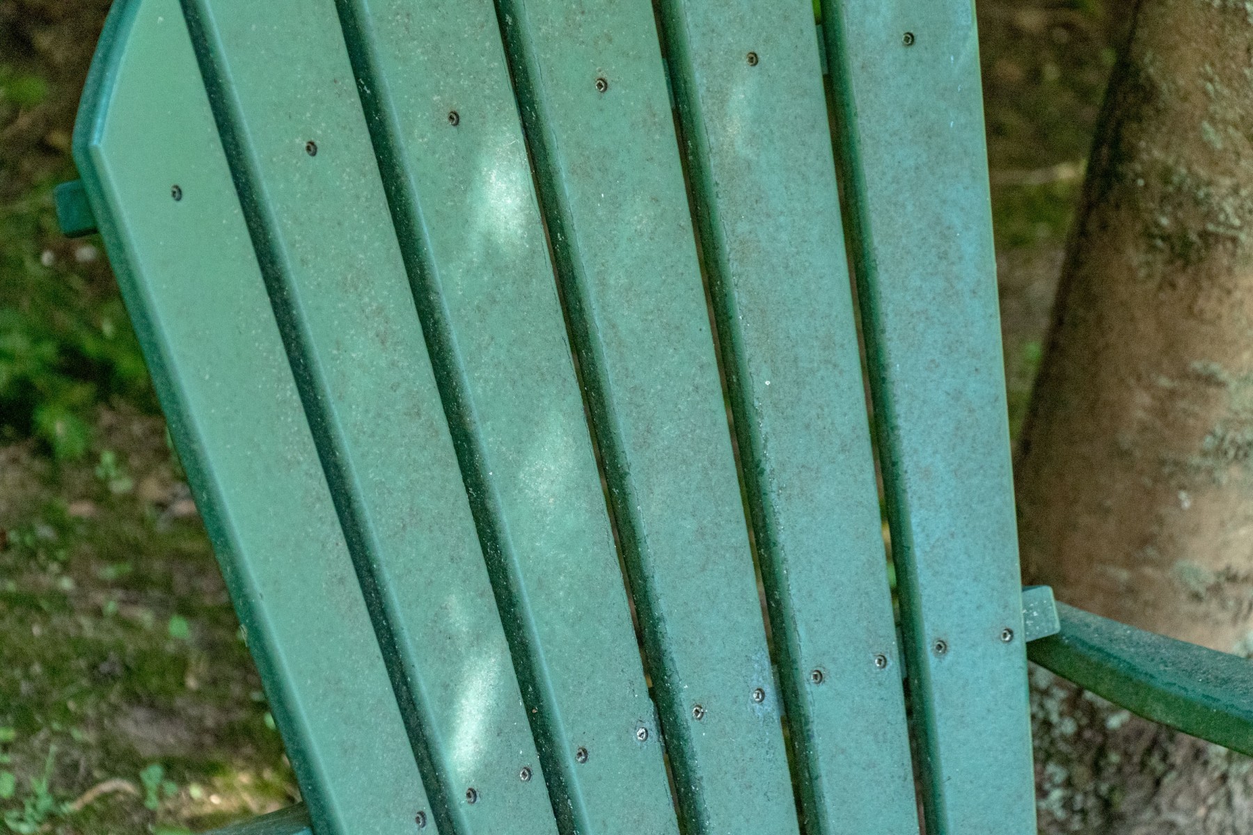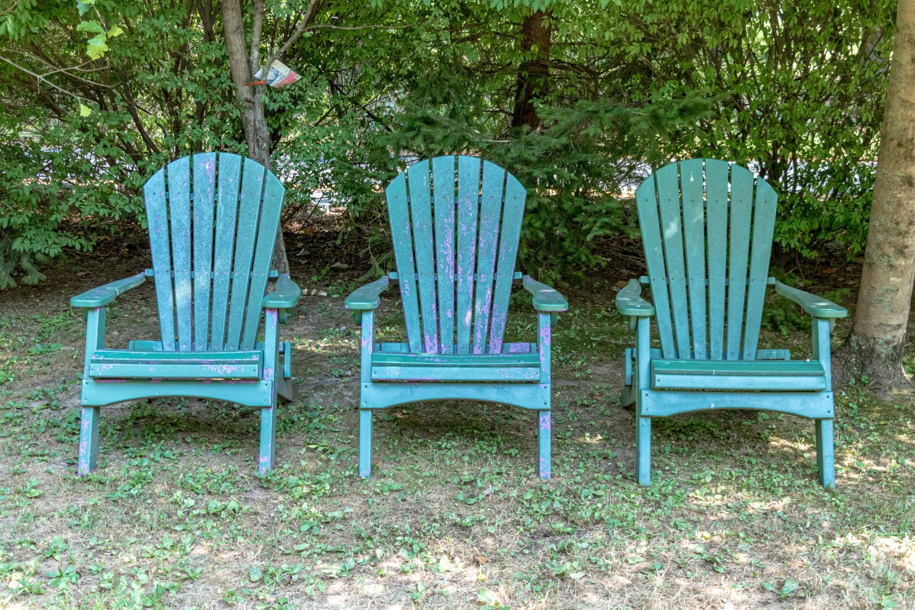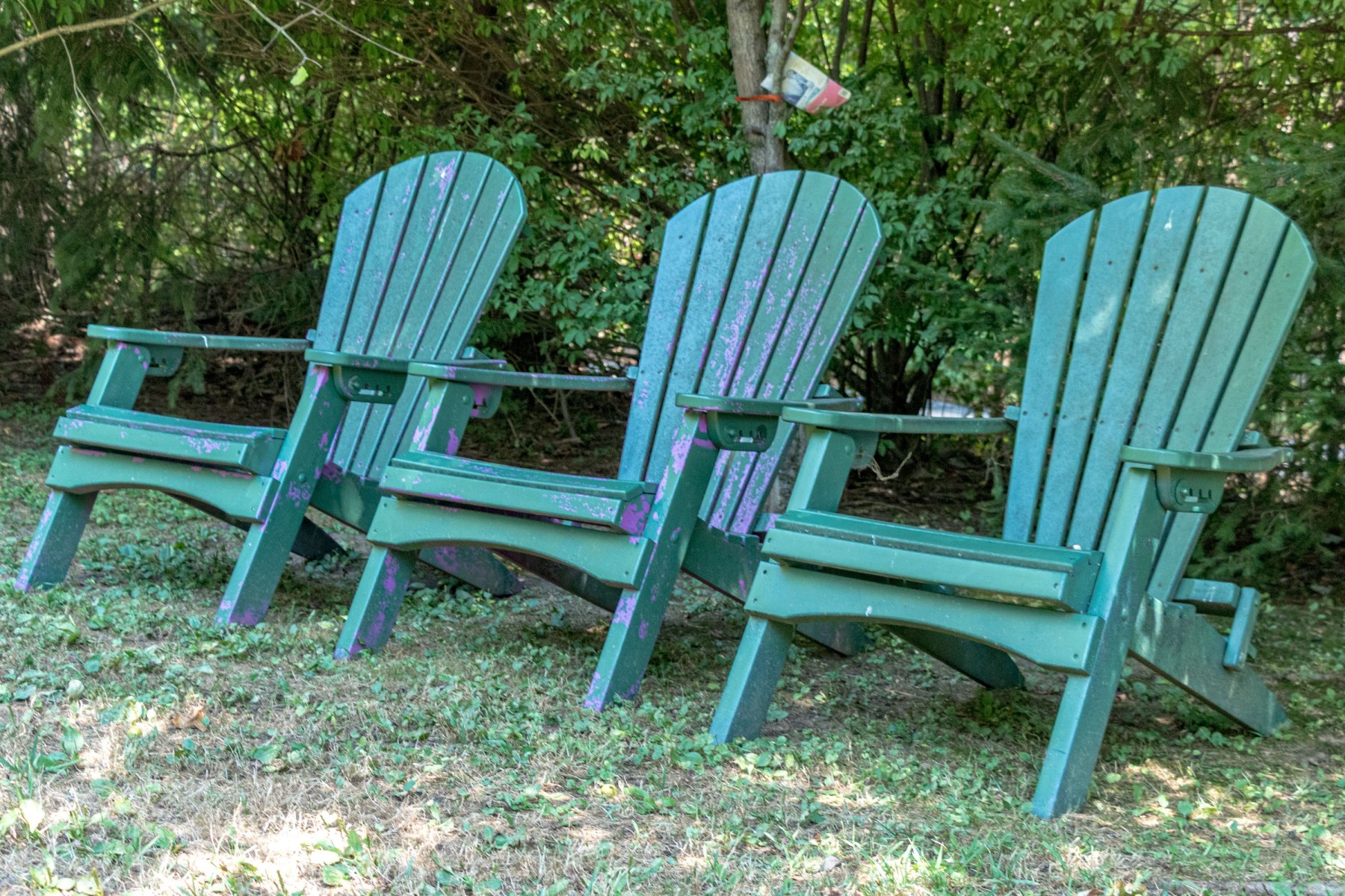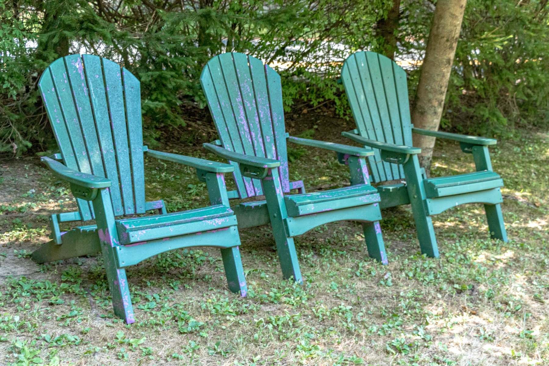 A fantastic set of three resin Adirondack chairs painted in a lovely green color.