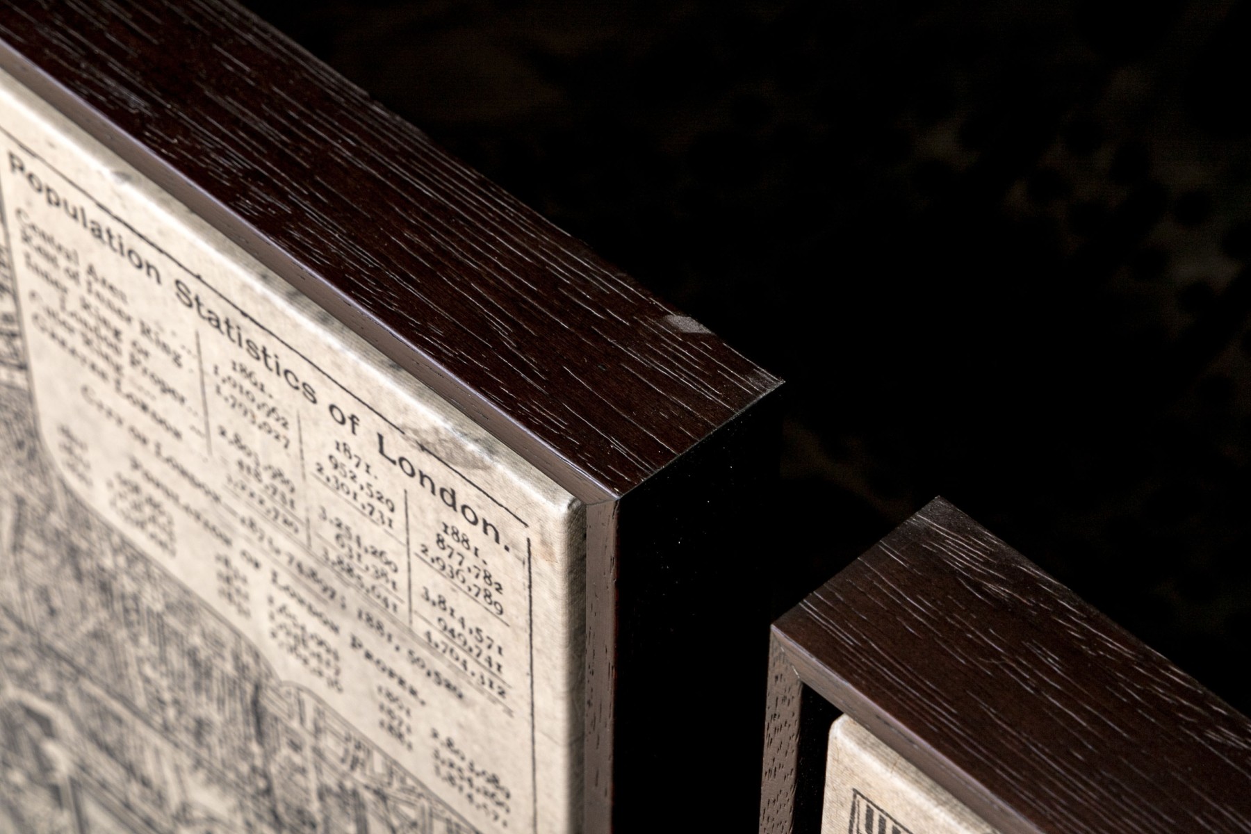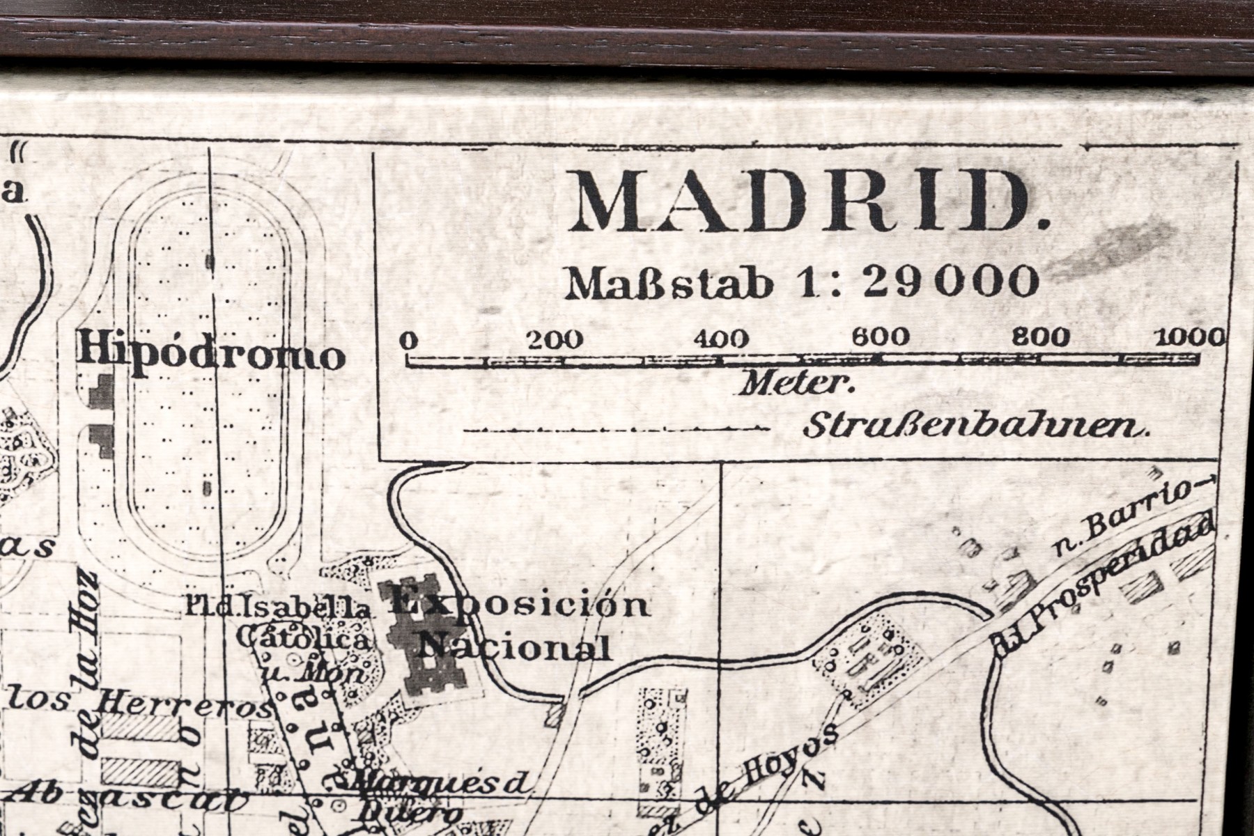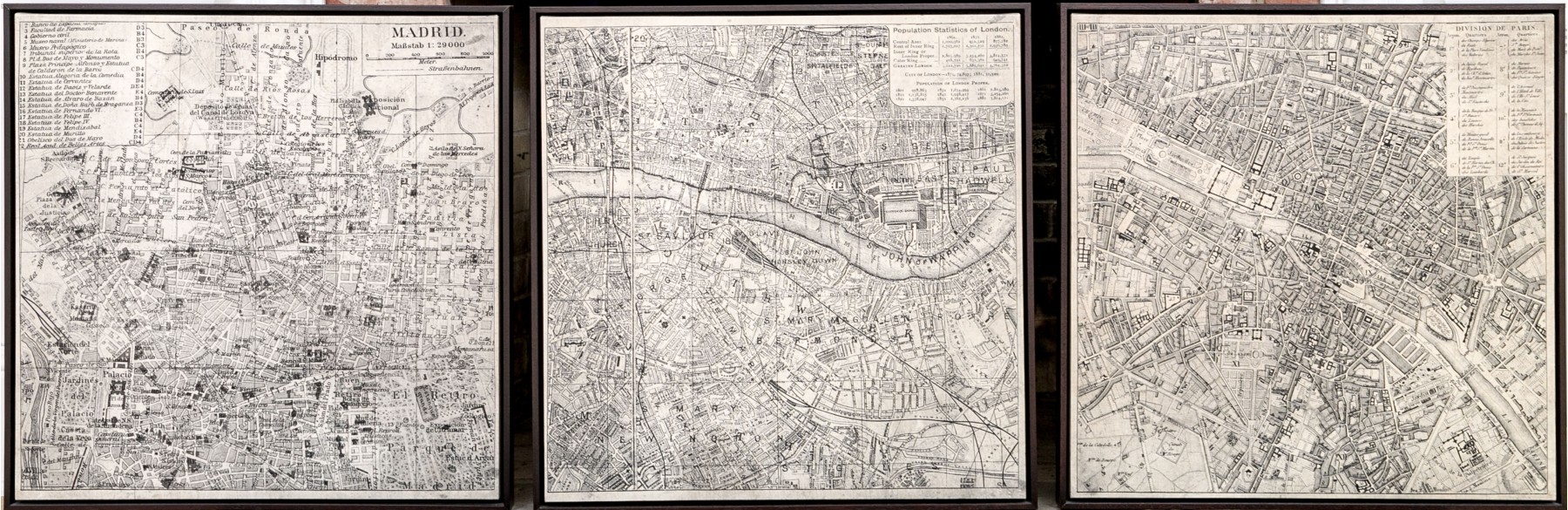 One depicts Paris, and the second depicts London, and the third depicts Madrid. All three are handsomely presented with black finished wood frames.