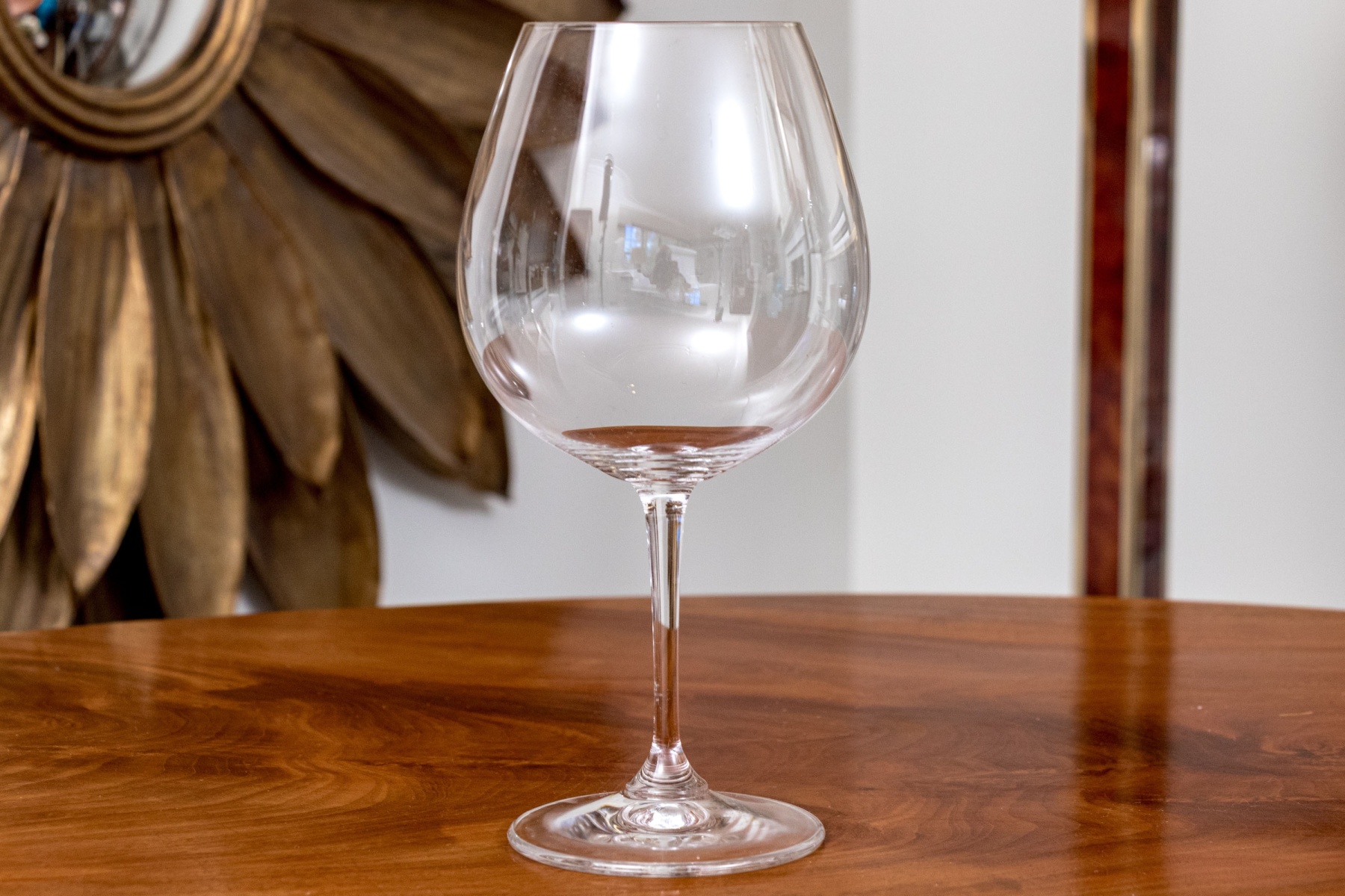A wonderful set of twelve Riedel red wine goblets designed with generously sized and elegantly tapered bowls on dainty stems leading down to circular feet. Marked on the feet.