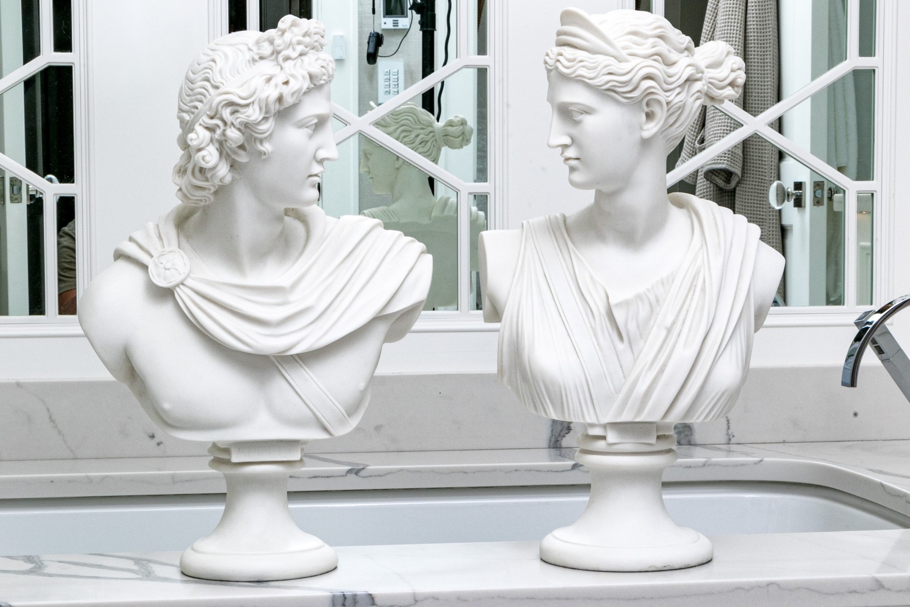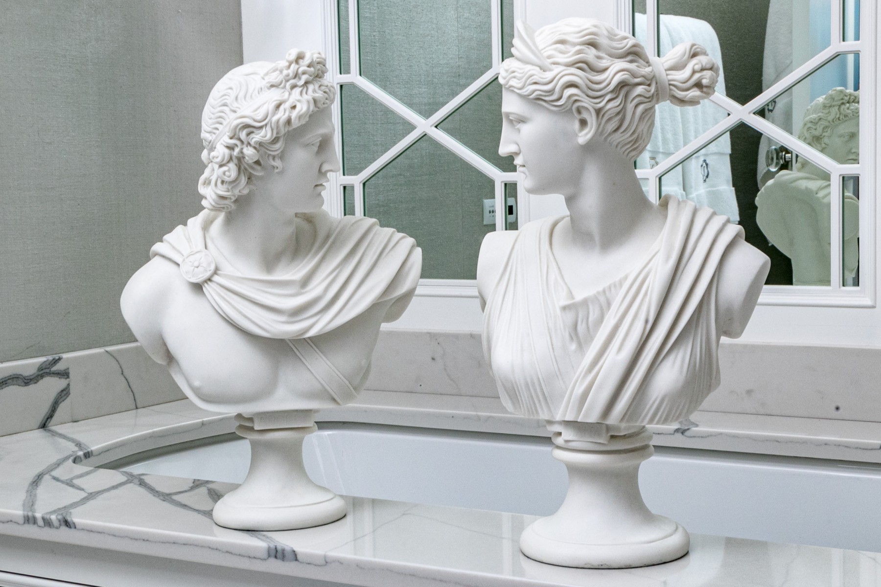 Elevate your decor with these exquisite resin casts depicting Apollo and Diane. Highly decorative and meticulously crafted, these pieces capture the timeless beauty and elegance of classical mythology. Perfect for adding a touch of artistic sophistication to any interior setting.