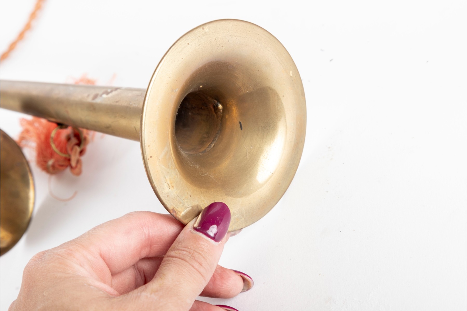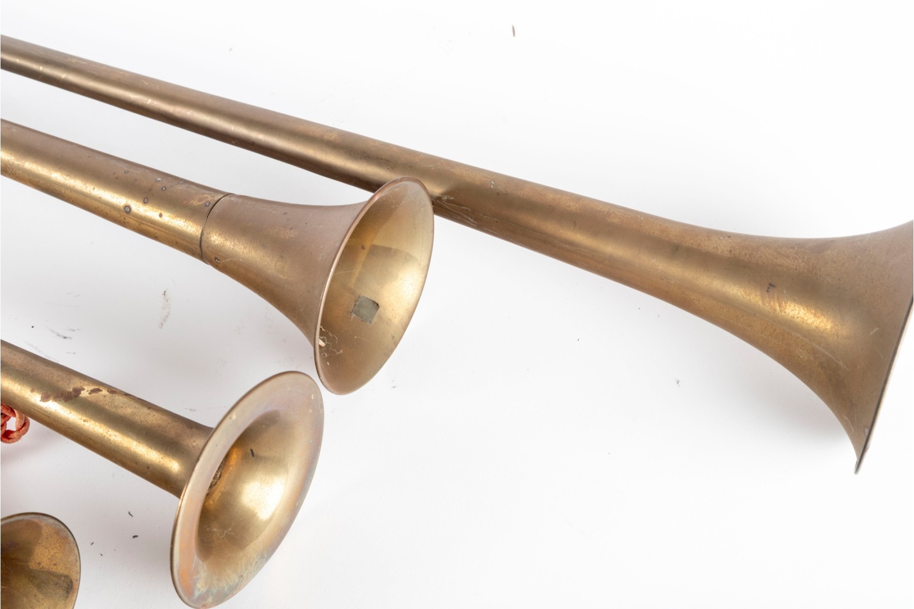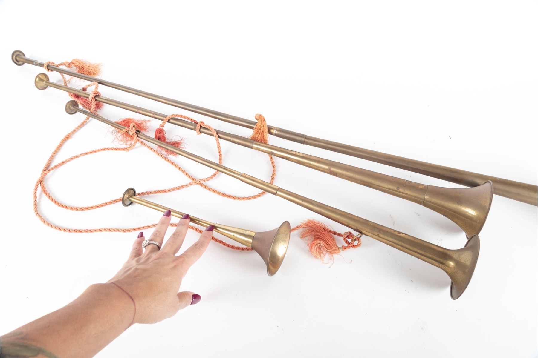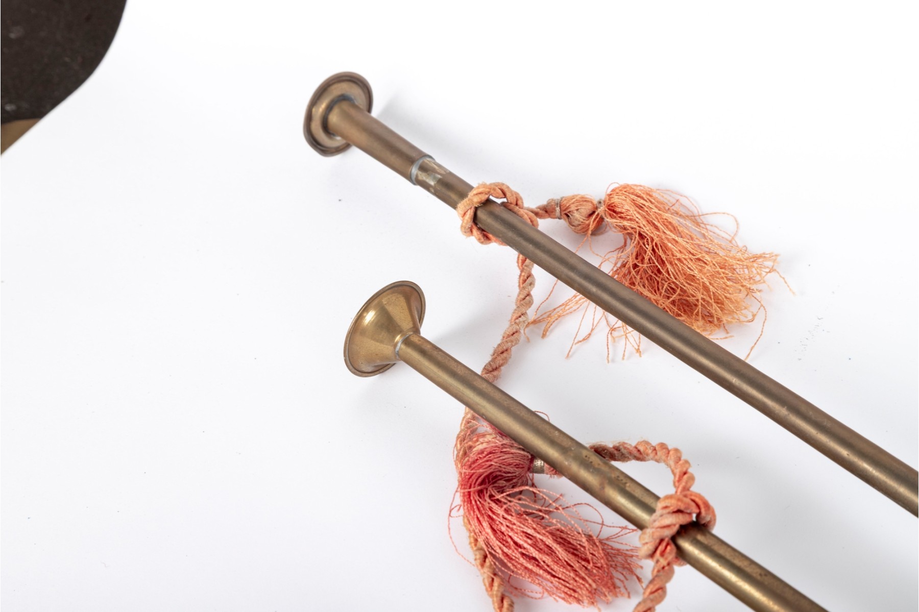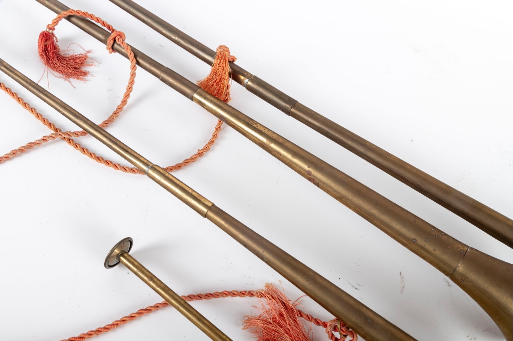 Set Of Vintage Brass Herald Trumpets With Tassel Ropes