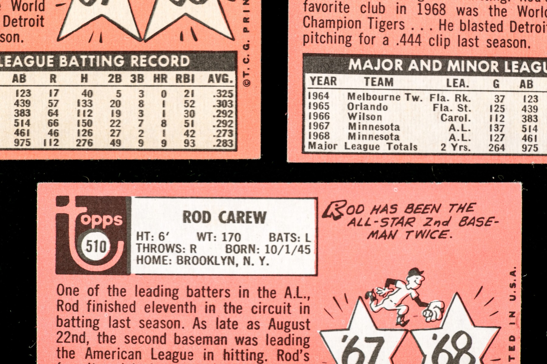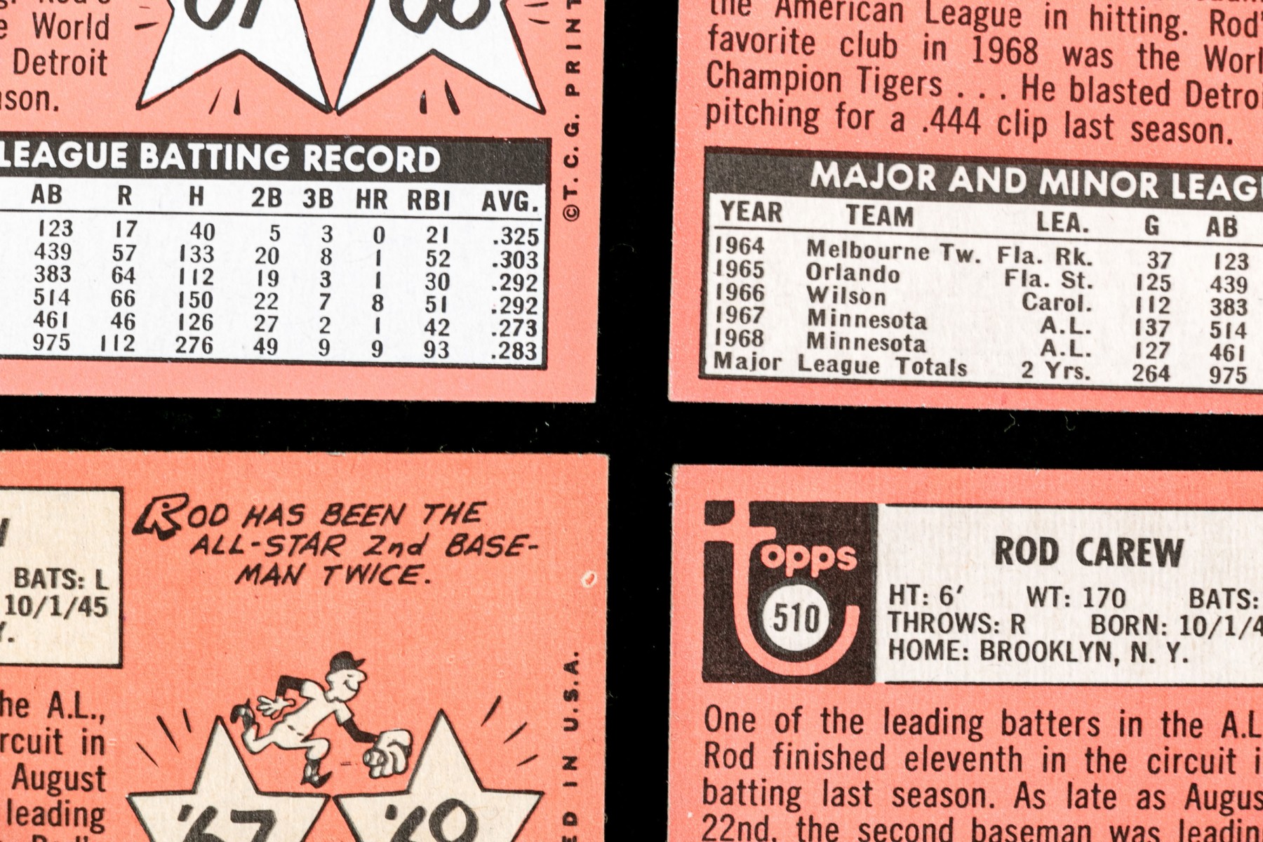 Seven 1969 Topps Rod Carew Cards #510 EX-NMT #298096. Black Rock Galleries provides high end estate liquidation services through online estate auctions and a 50,000 sq ft designer showroom. estate liquidator, estate sale, online auction, antiques, fine art, liquidation, clean outs, auction, consignment, interior design, fine jewelry, collectibles, appraisals, estate appraisals, estate services, decor, furniture, furniture consignment, antique center, consignment shop. We offer appraisal services and specialize in fine art, jewelry, antiques and decorative arts. Sell with us. Black Rock Galleries is the tri-state's largest estate liquidator serving New England and the greater New York City area. We are the trusted source for expert appraisals, auction services, estate sales, and consignments. Black Rock Galleries is the east coast's largest and most trusted estate liquidator, with locations in Connecticut, greater Boston, MA and Raleigh, NC, Fairfield, Southport, Apex, TX. We are the best source for expert appraisals, auction services, estate sales and consignments. We have served thousands of families and estates with compassion, professionalism and expertise. BRG works with attorneys, executors, realtors and families to bring the greatest return on personal and estate property in the current market. Our unique combination of services make us the easy choice to get the job done in a timely and stress-free manner. We are with you from the initial consultation to the final clean out. Our house-built online auction software platform offers clients a dynamic approach to liquidating their personal property. This venue is most successful in bringing the best return with the least amount of disruption for our clients. See our services page for a complete description of this offering. Seven 1969 Topps Rod Carew Cards #510 EX-NMT #298096