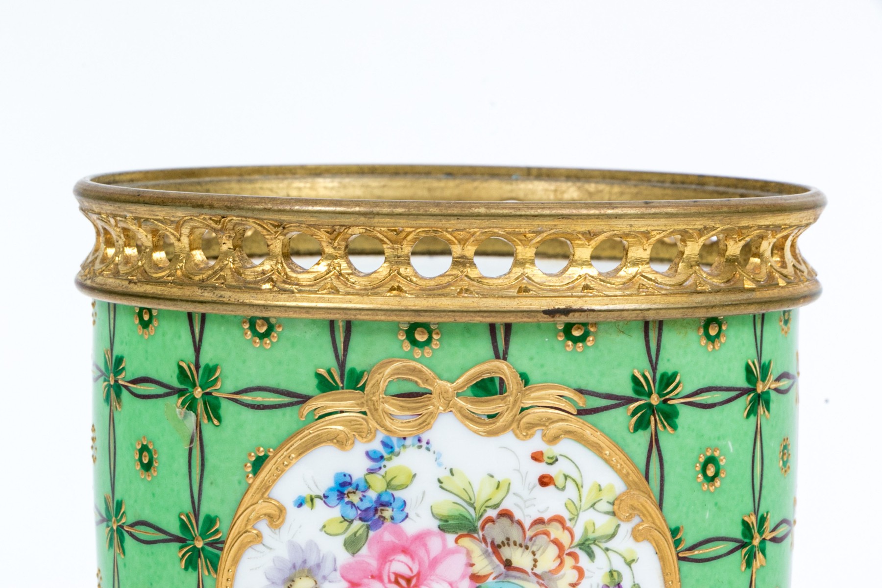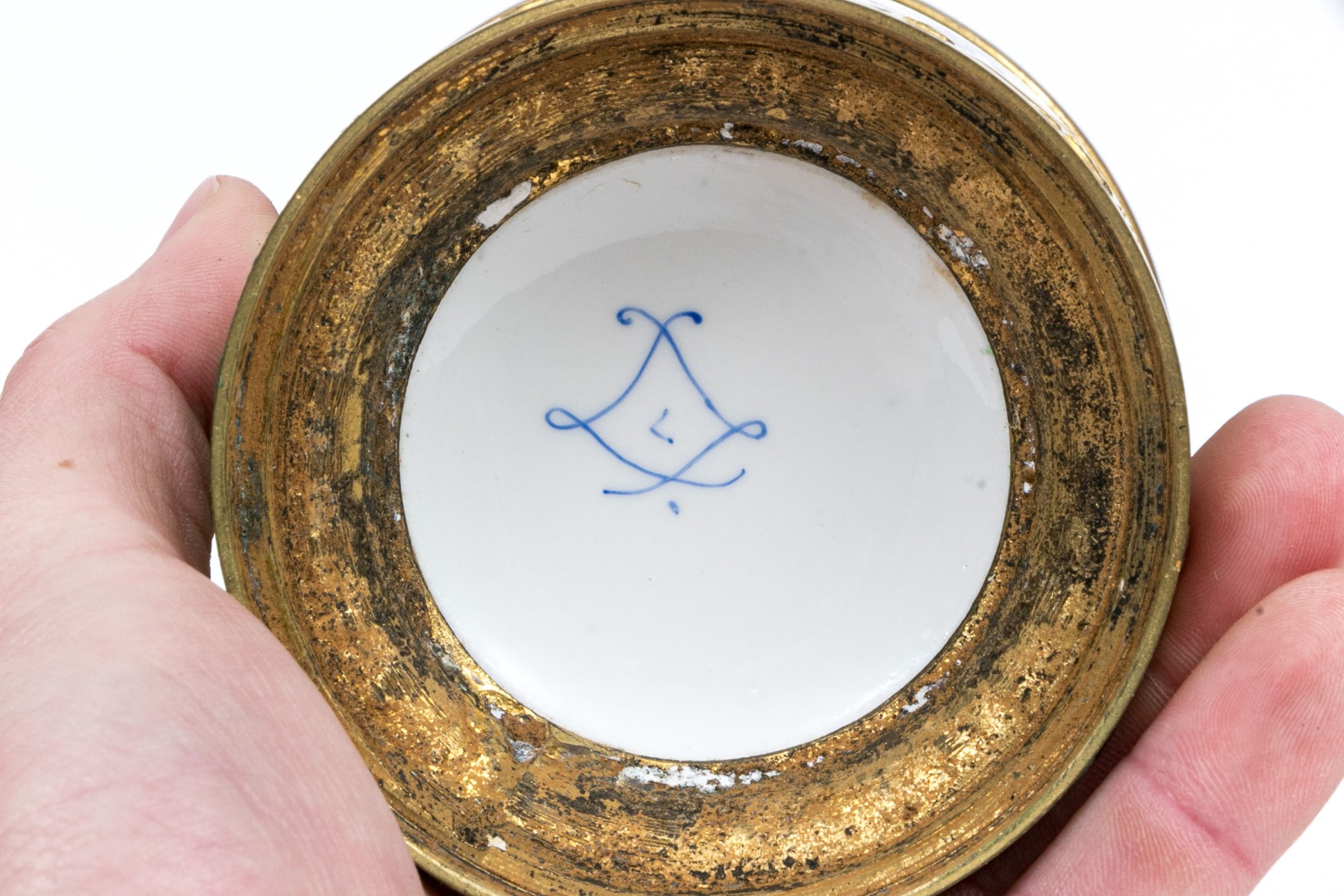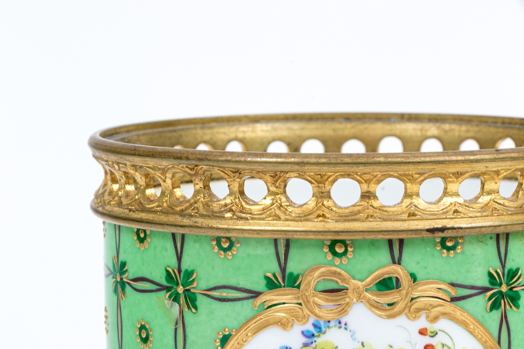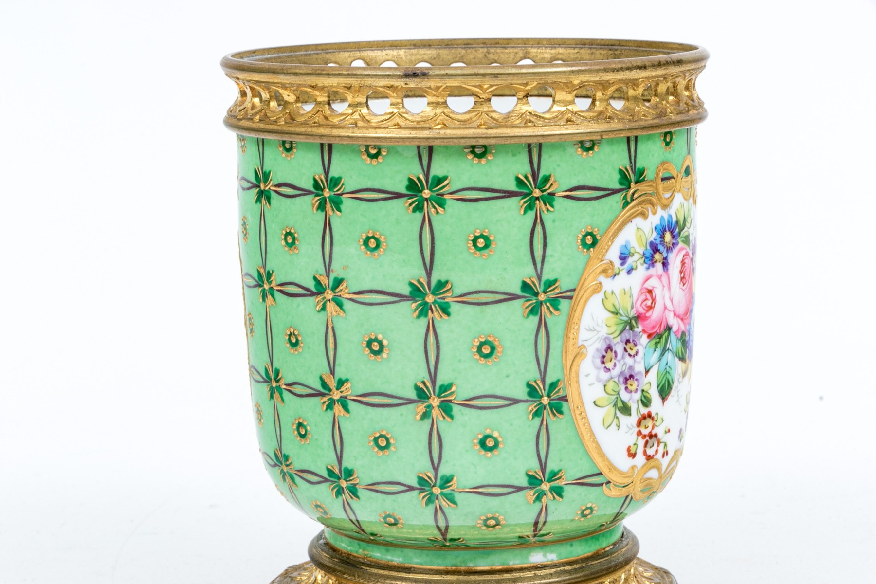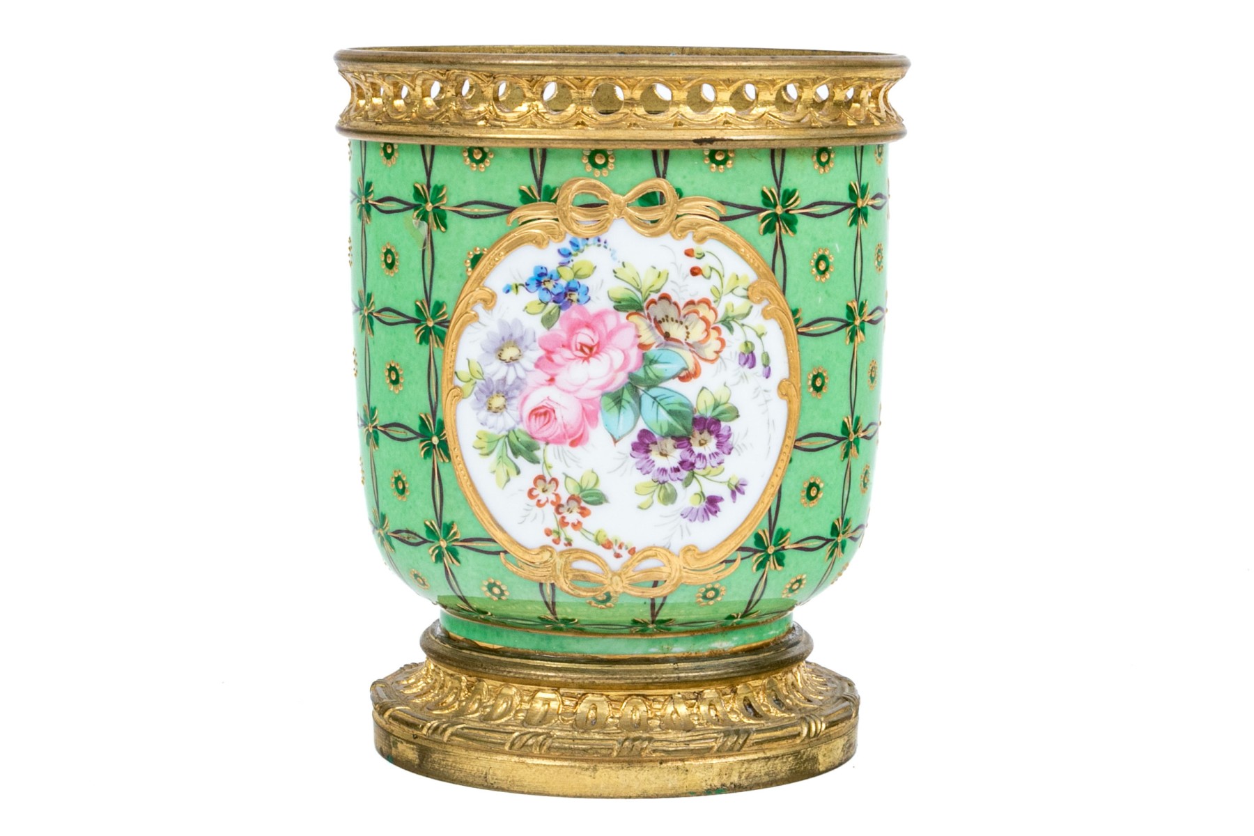 Marked underfoot. Gilt metal foot and pierced mouth rim.