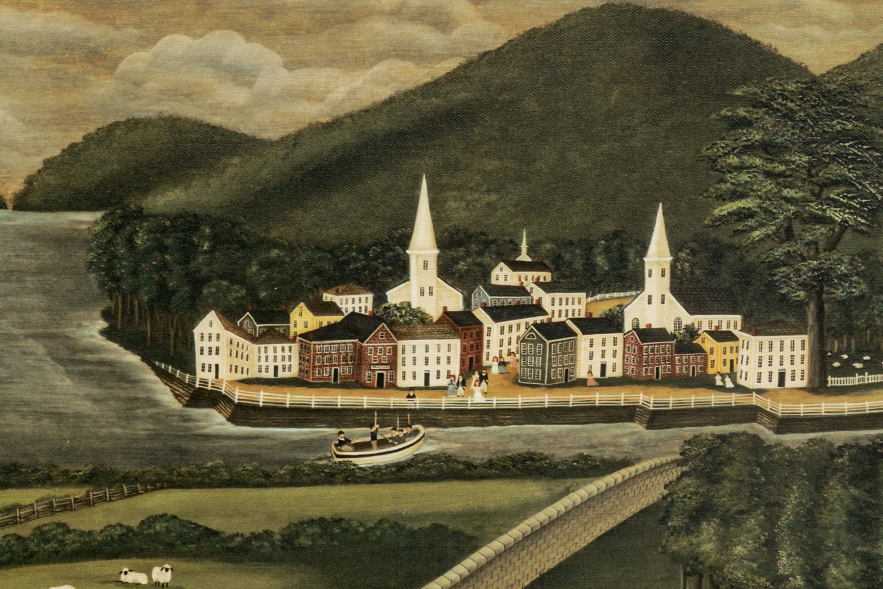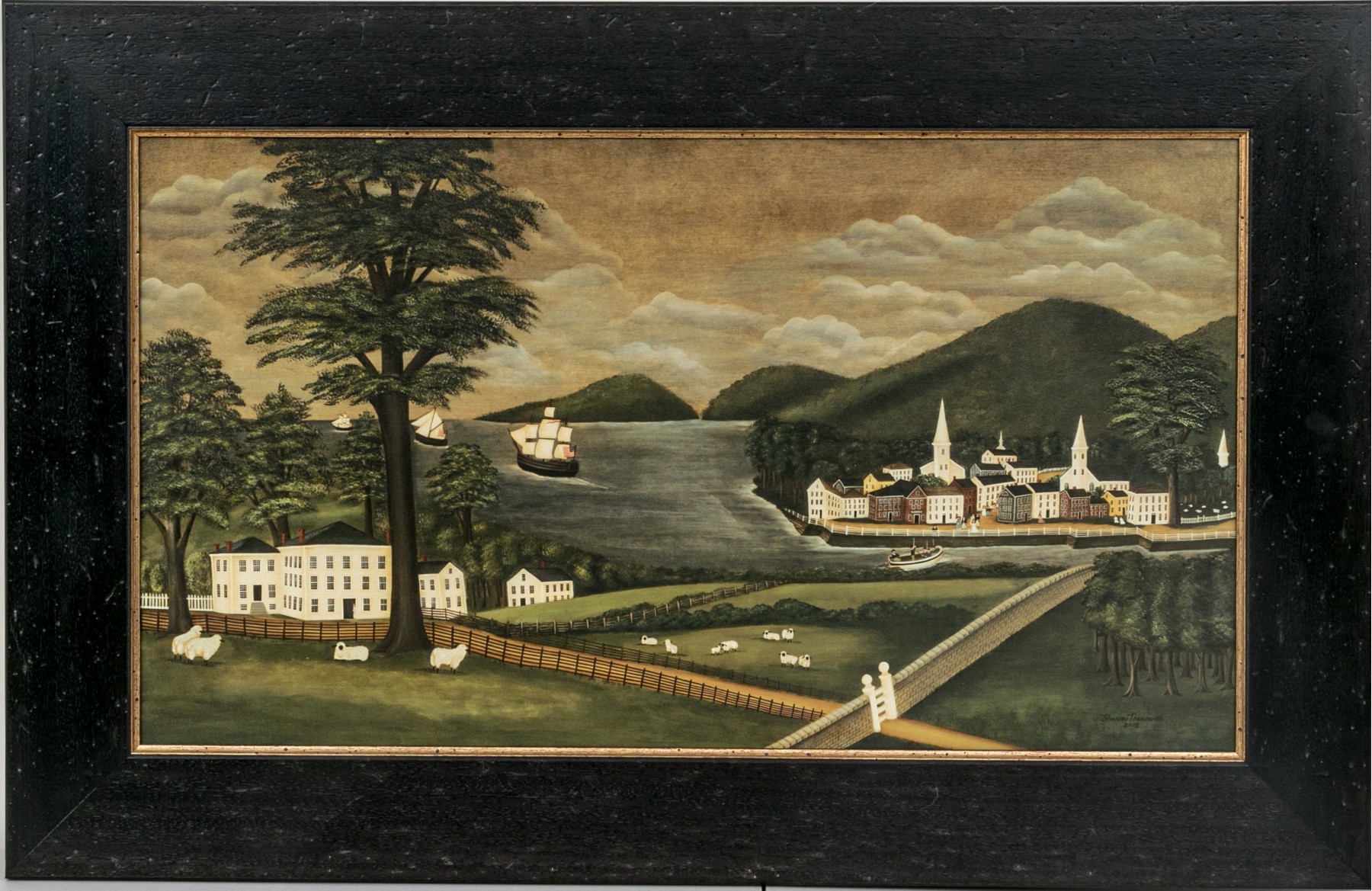 American Folk Art landscape Giclee by Sharon Trenoweth. Signed within print lower right.