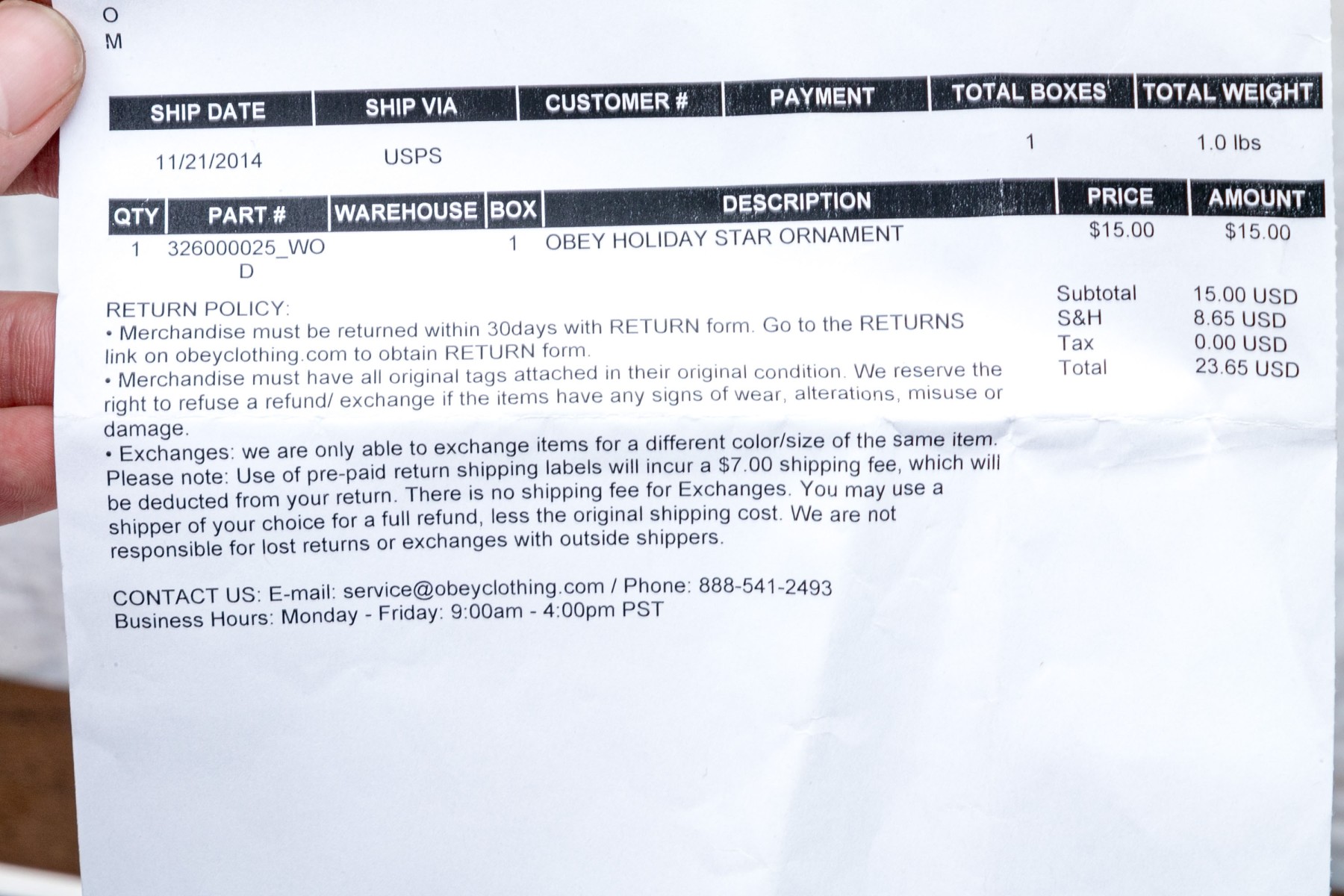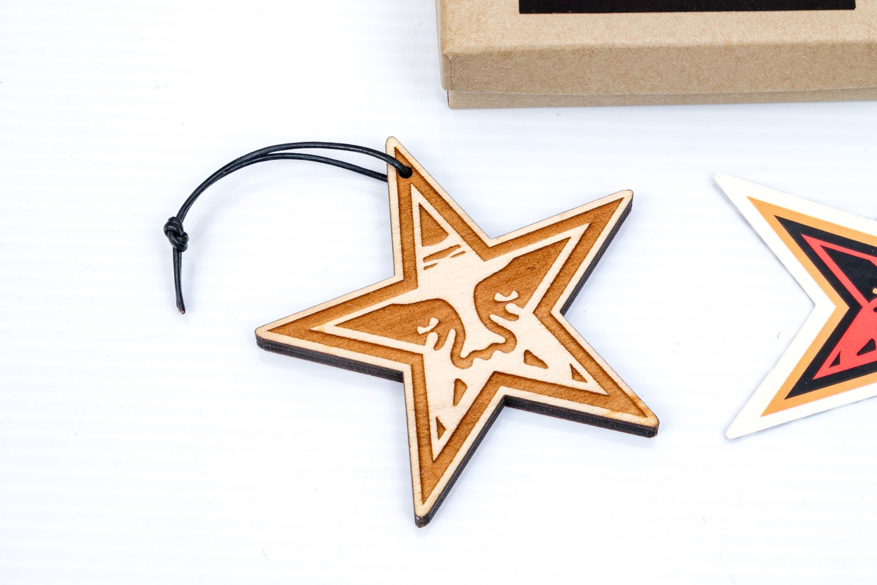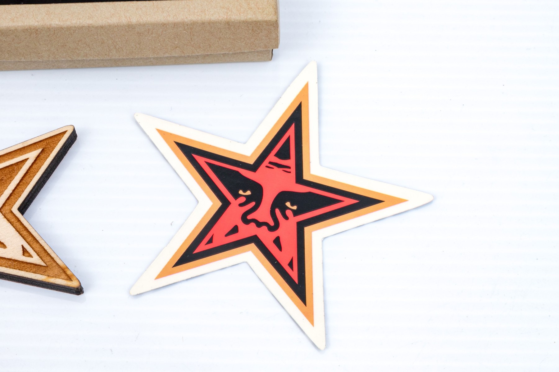 Obey box with holiday star ornament and a sticker.