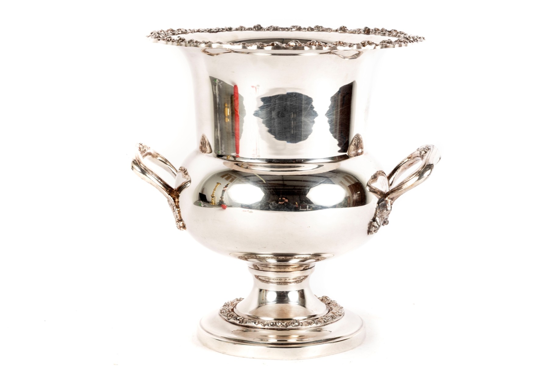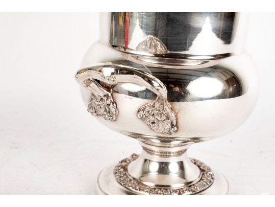 A stately, moulded vine trim ice bucket wine urn by the Sheridan Silver Company.