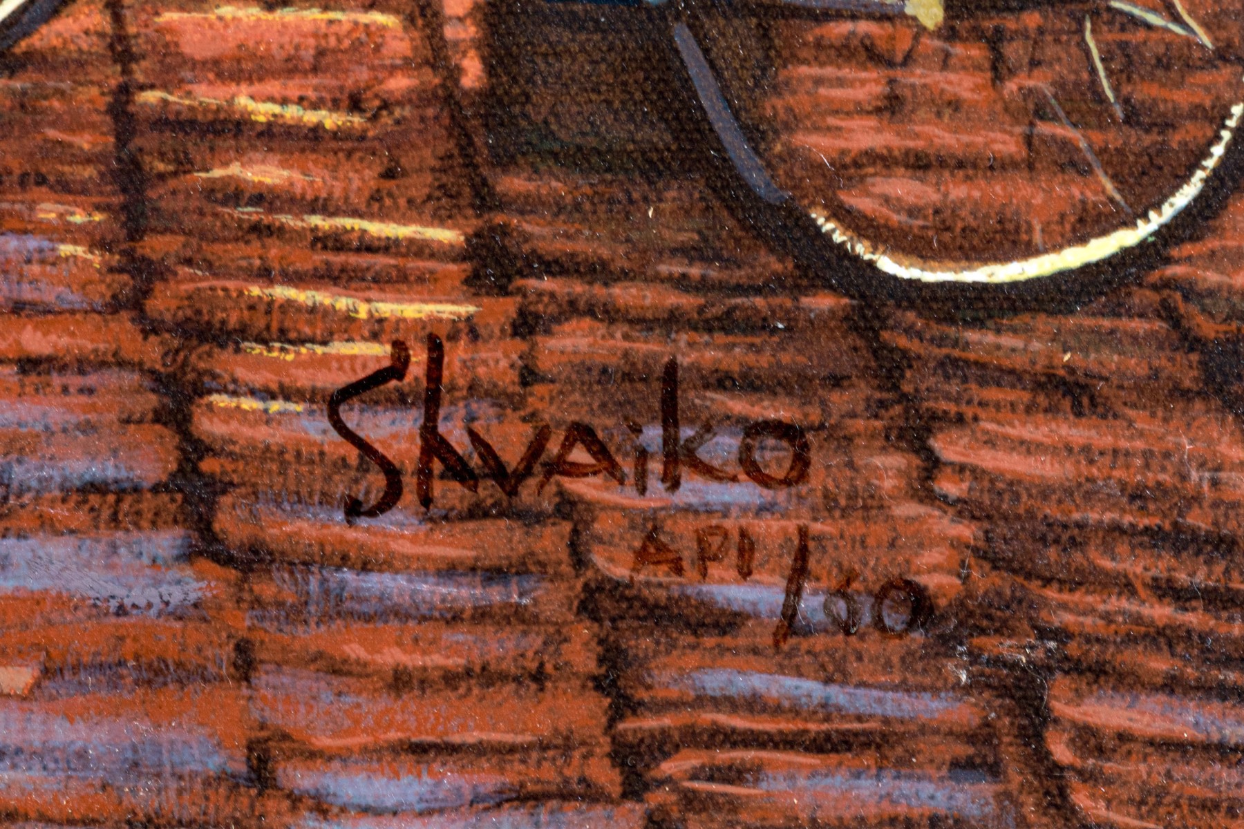 Signed and marked AP 1 lower right. Presented with a gilt interior trim an linen filet and gilt finished frame.