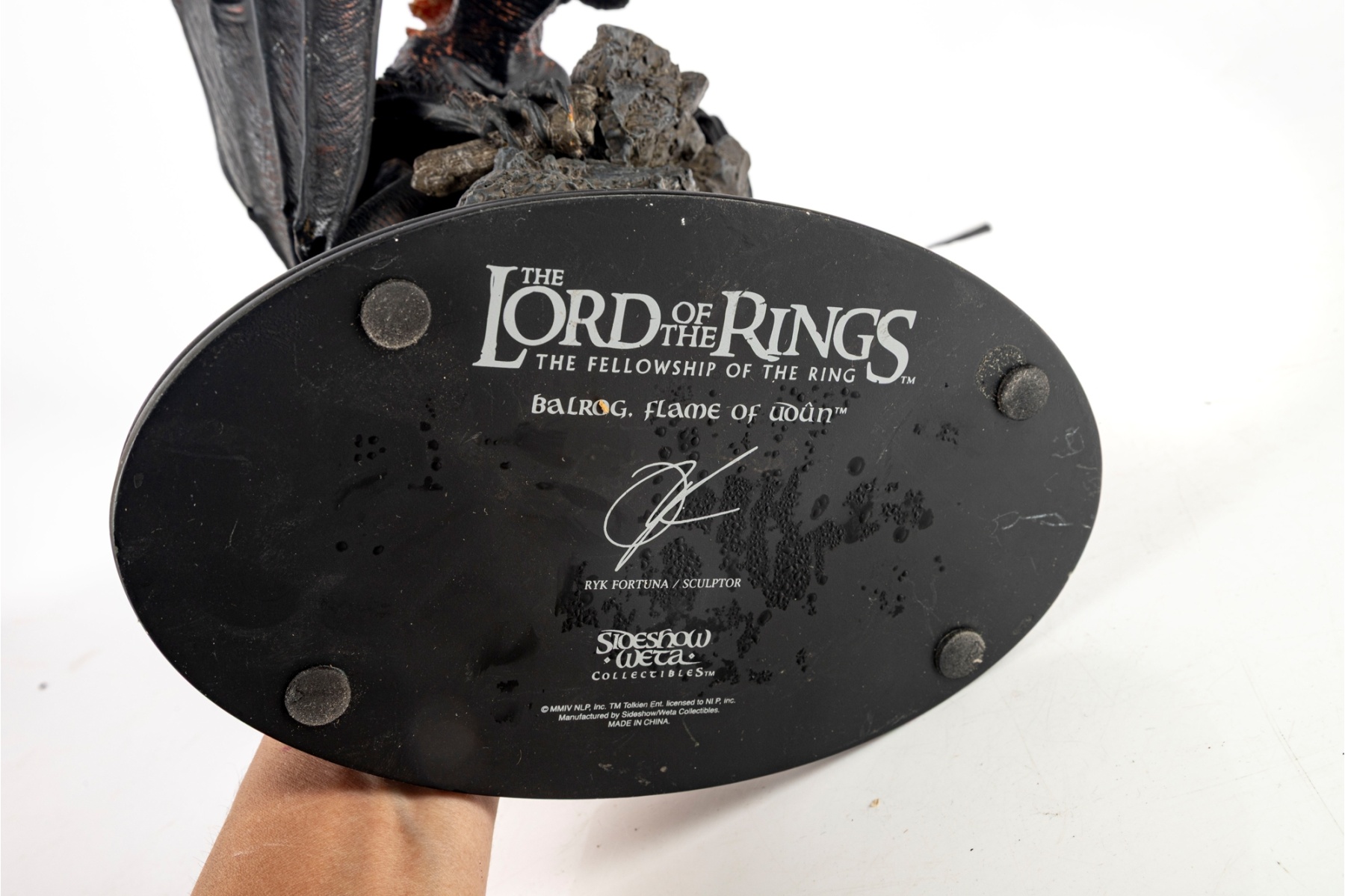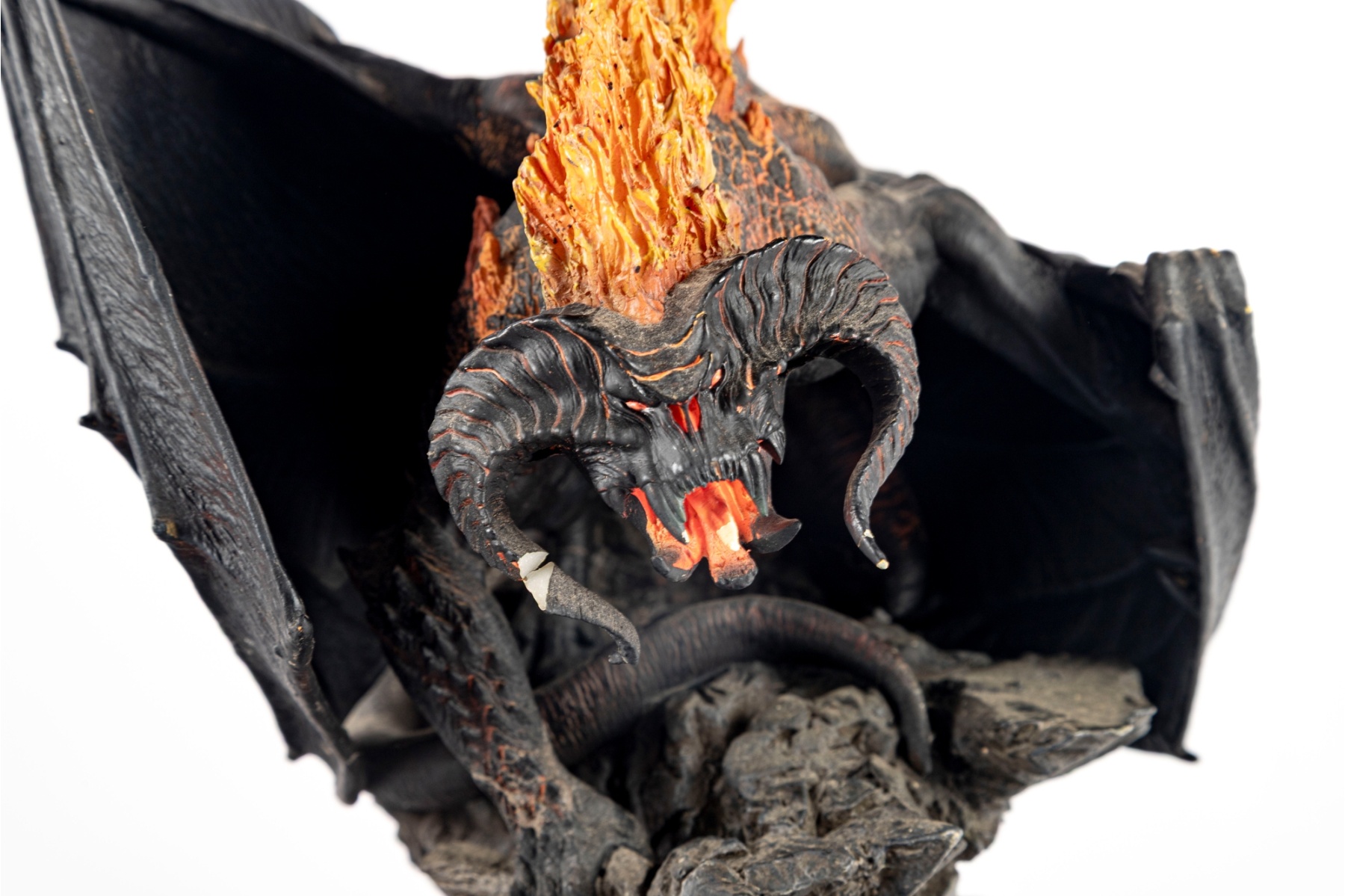 An impressive Sideshow Weta Collectibles sculpture titled “Balrog: Flame of Udûn”, inspired by The Lord of the Rings: The Fellowship of the Ring. Sculpted by Ryk Fortuna, this detailed collectible captures the iconic confrontation between the Balrog and Gandalf in the Mines of Moria.