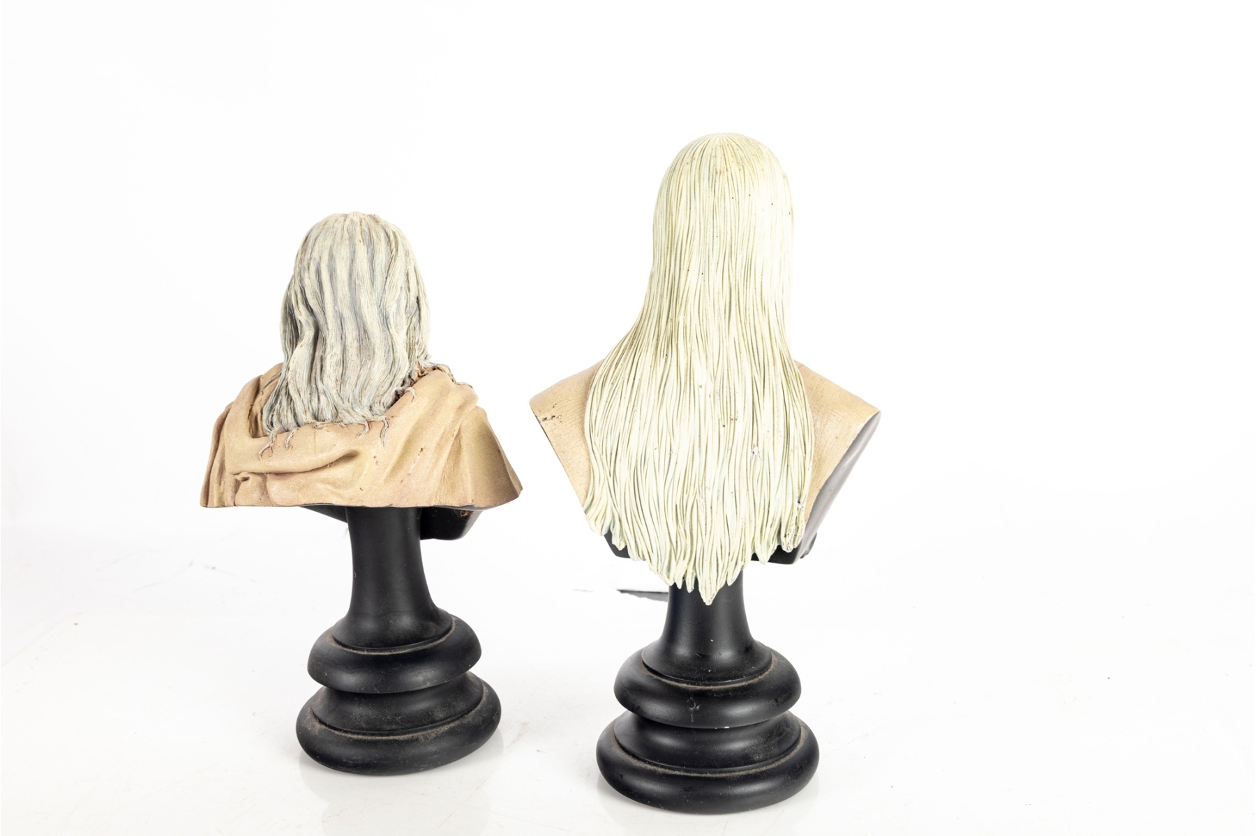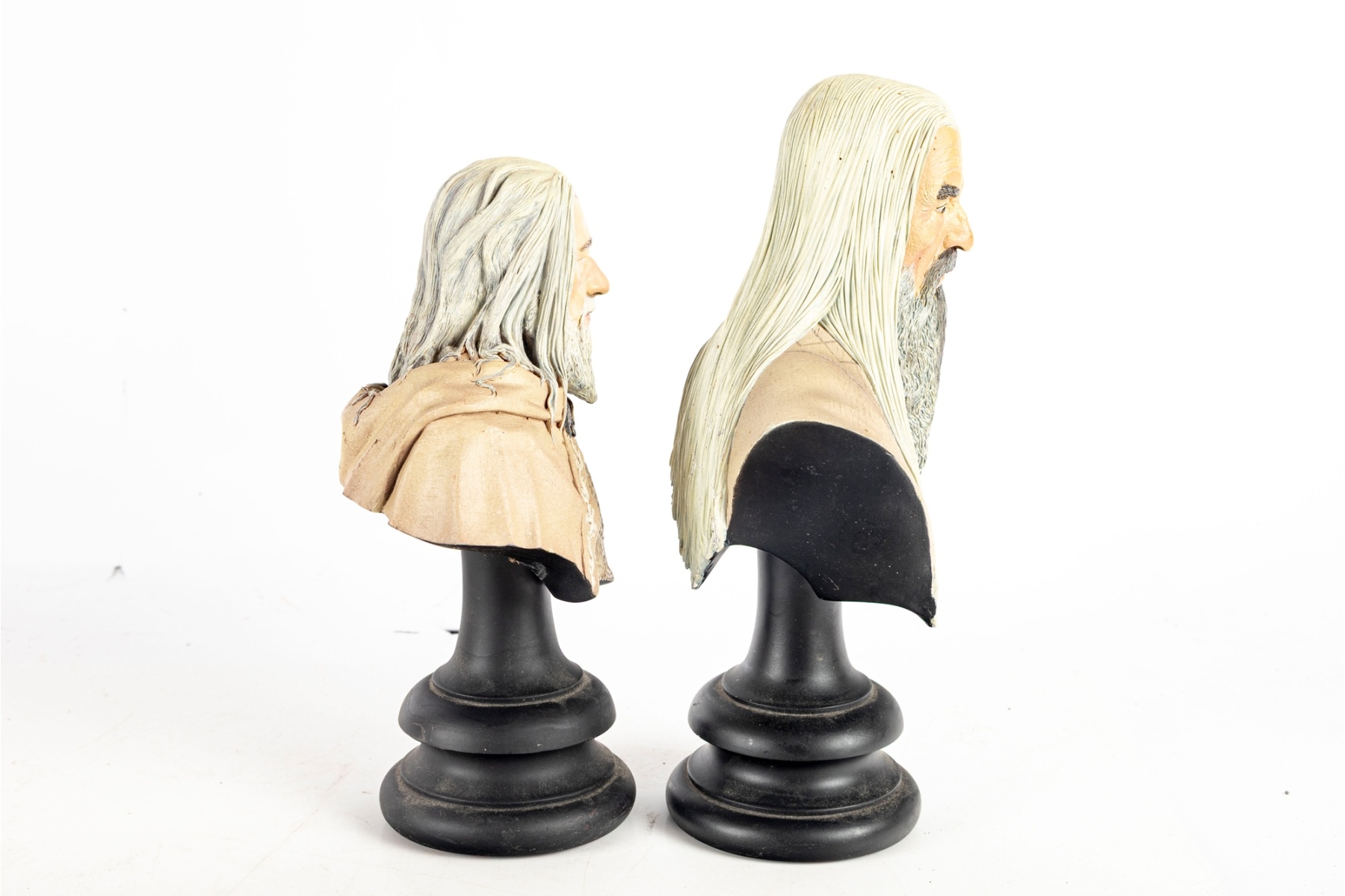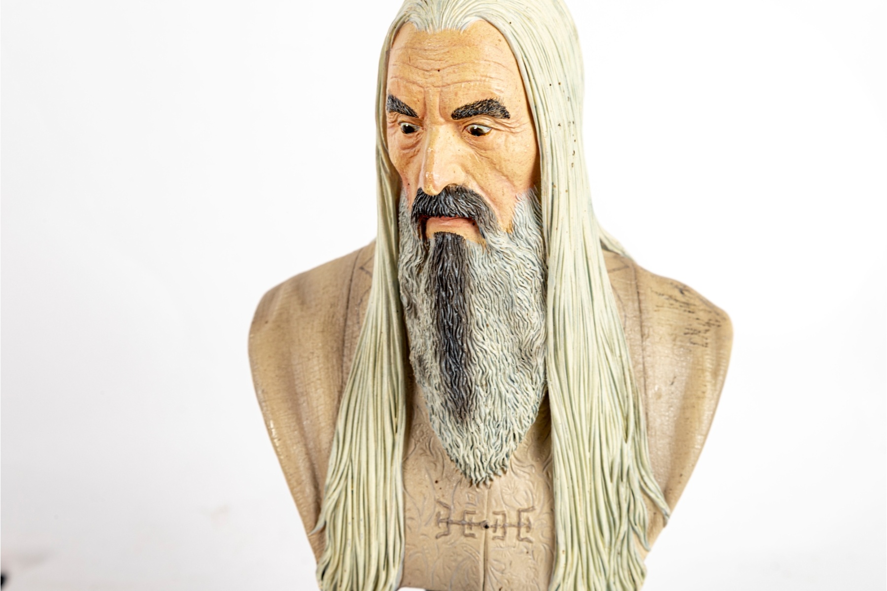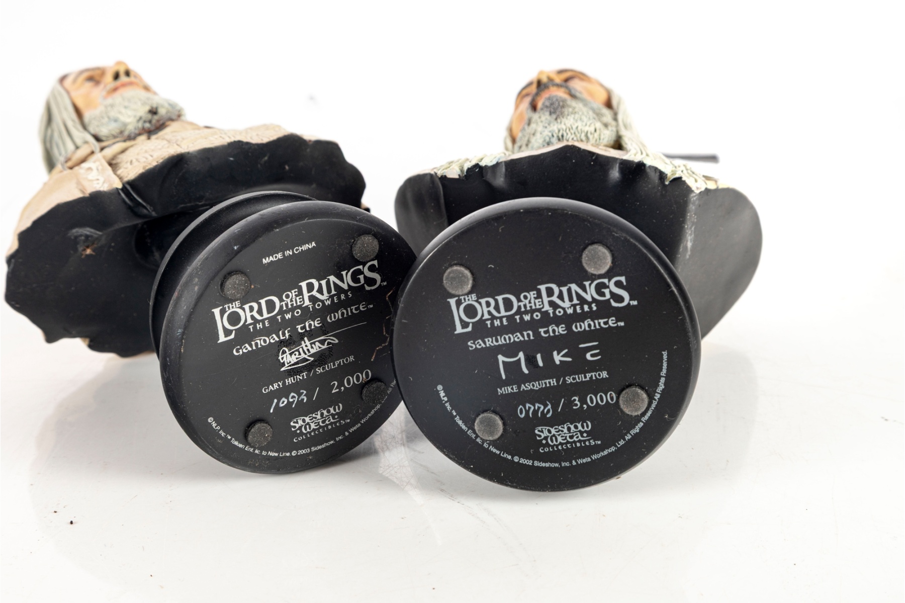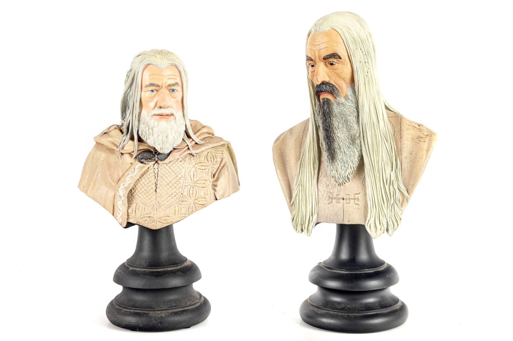 A matched pair of Sideshow Weta Collectibles limited-edition polystone busts depicting Gandalf the White and Saruman the White from The Lord of the Rings: The Two Towers. Beautifully sculpted and hand-painted, each bust captures the likeness and essence of the powerful wizards from Peter Jackson’s acclaimed film adaptation.