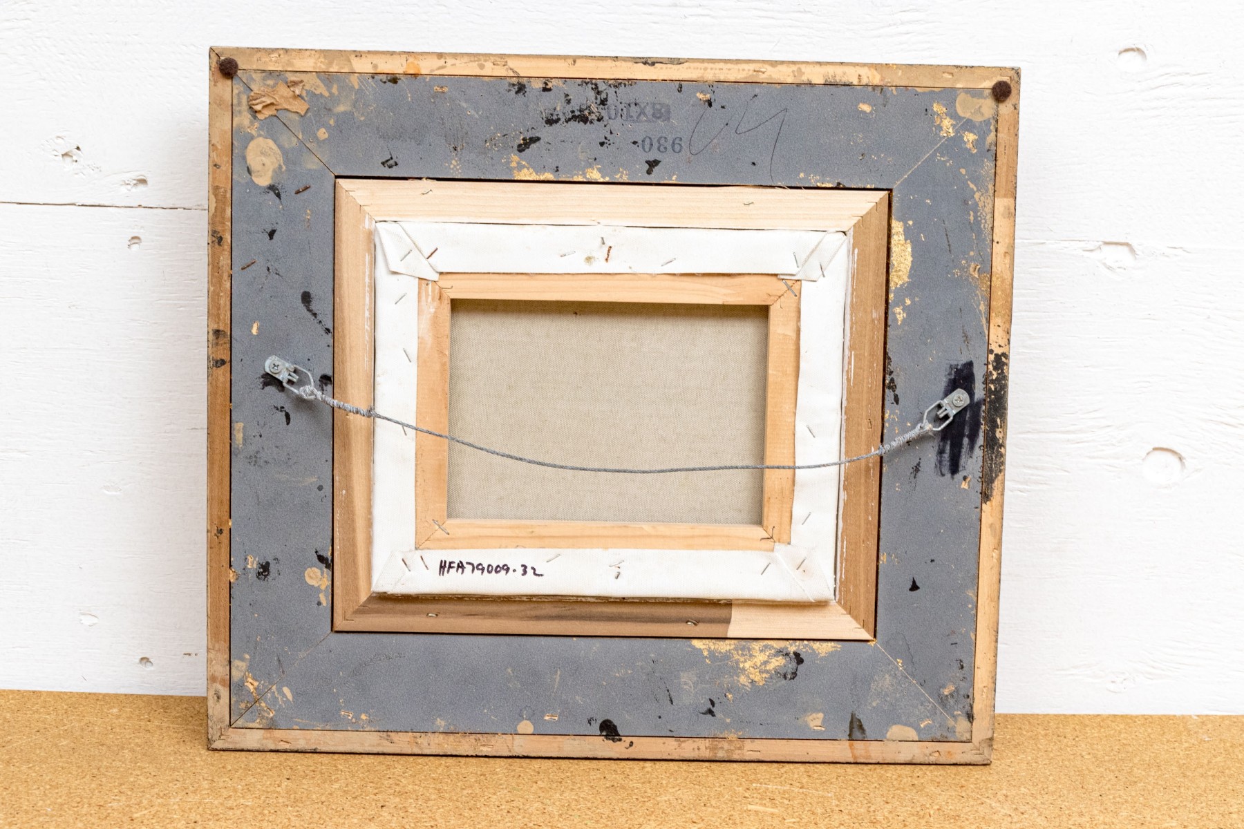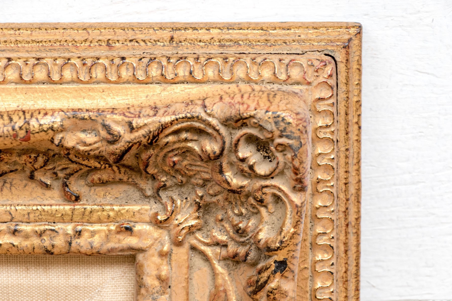Presented with linen liner in a highly decorative carved wood and gesso gilt finished frame.