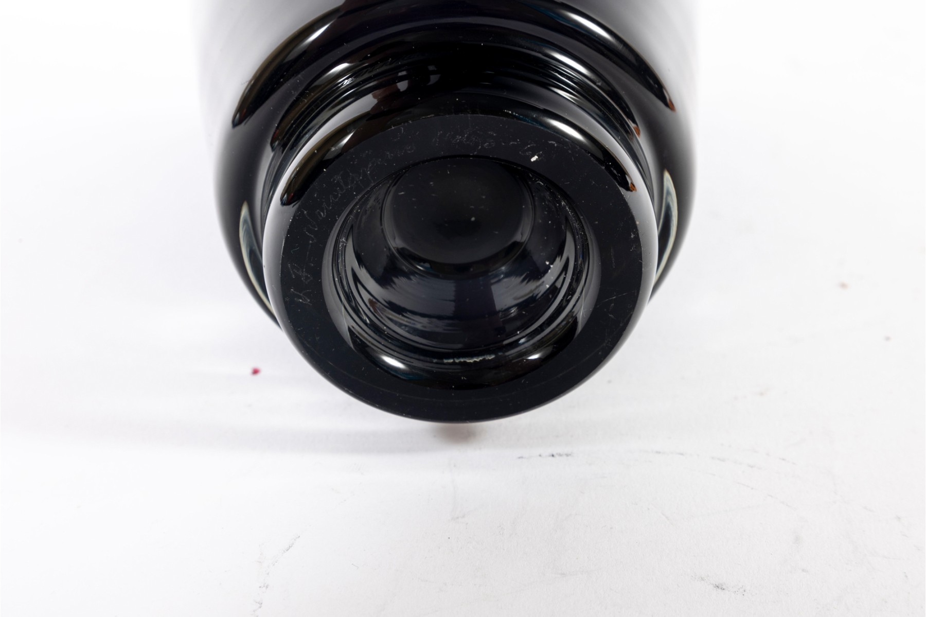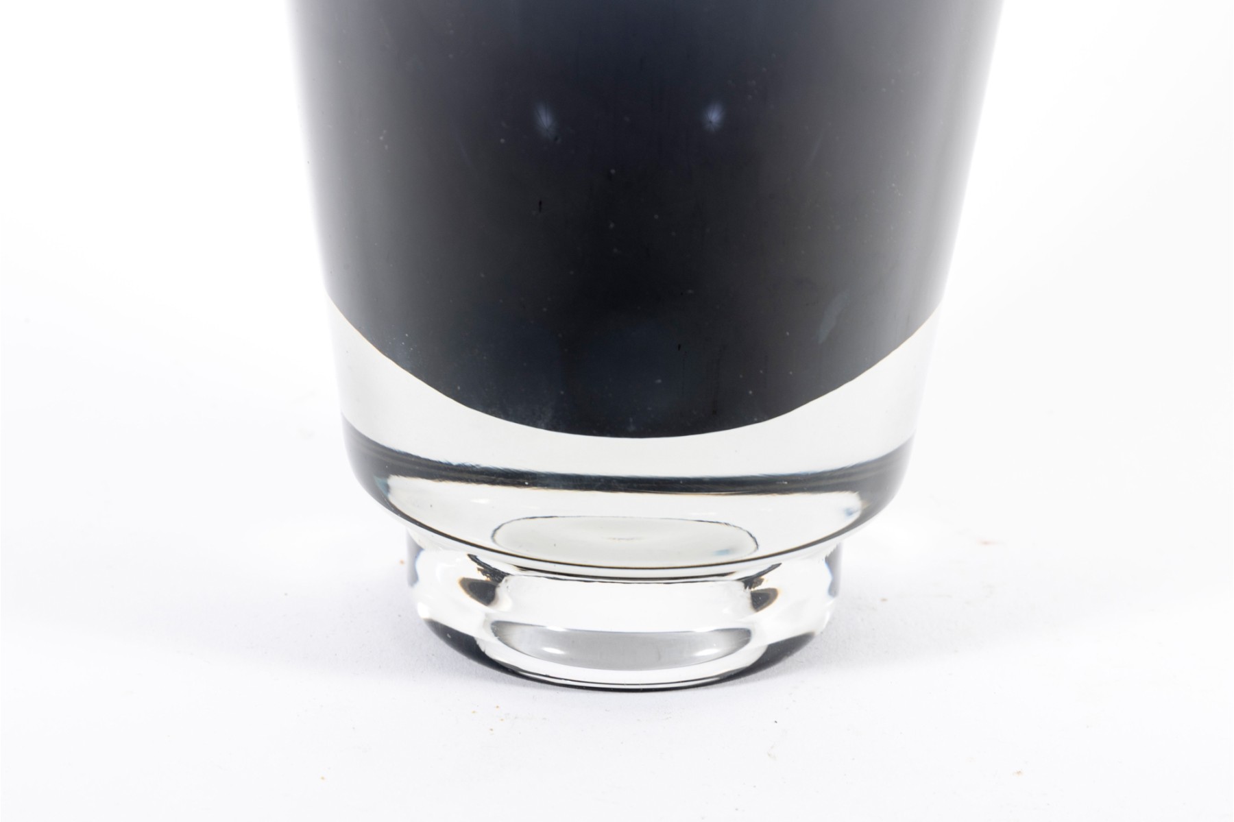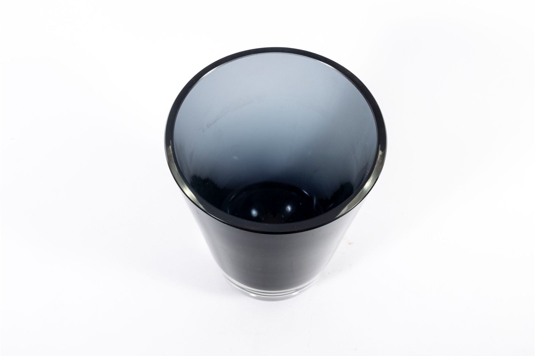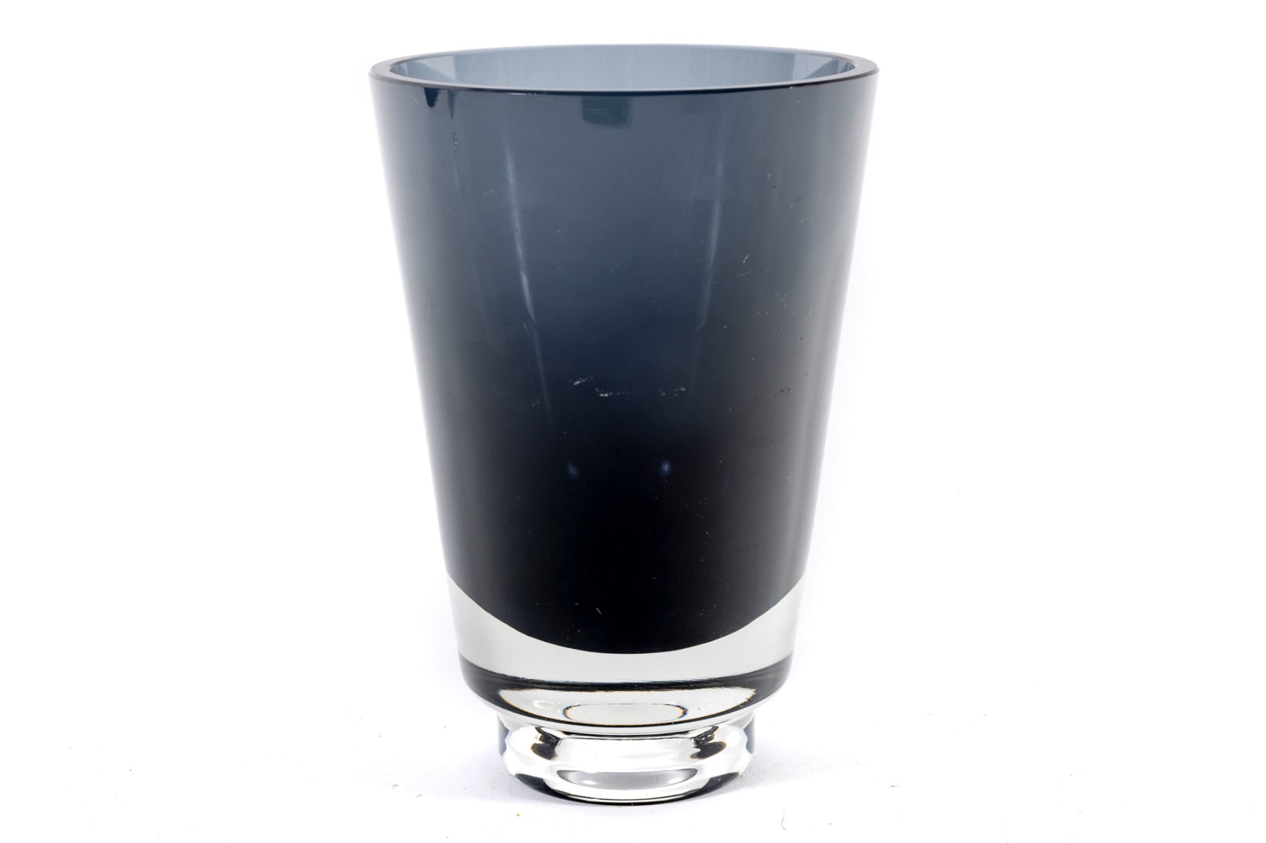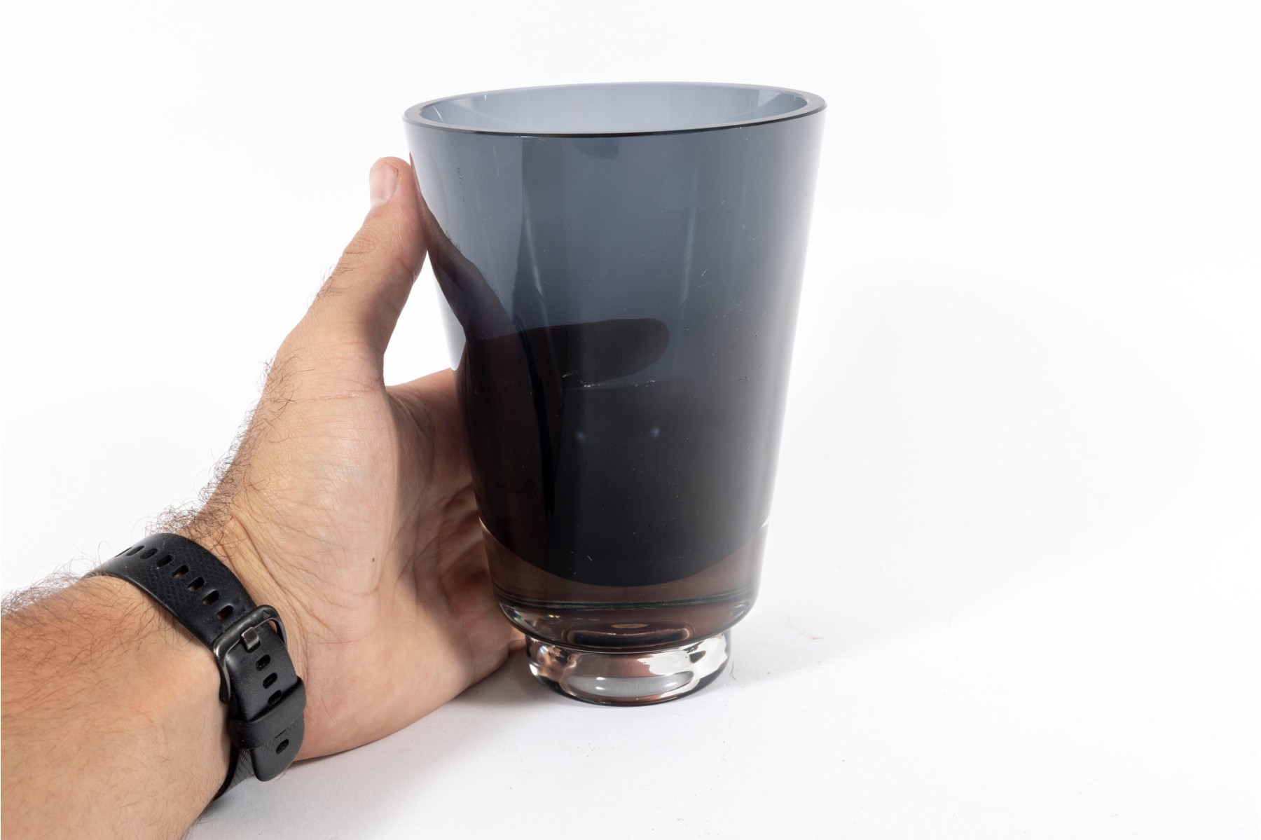 A small, hand-crafted smokey glass vase signed by Kaj Fanck (Finnish, 1911 - 1989). Made in Nuutajärvi, Finland, circa 1960.