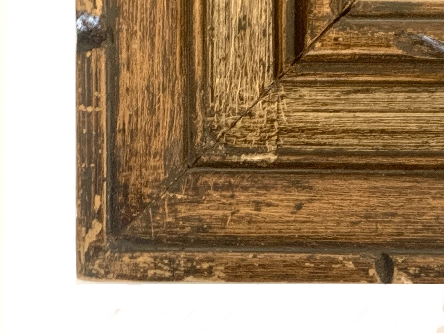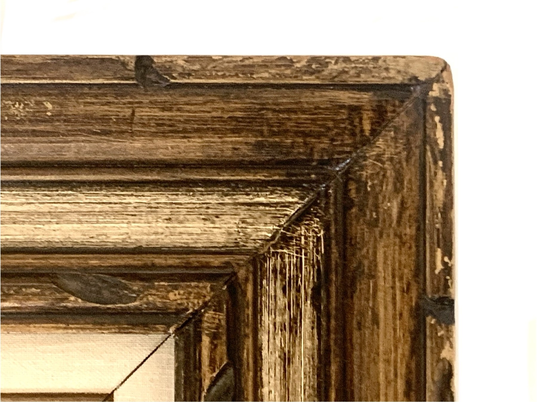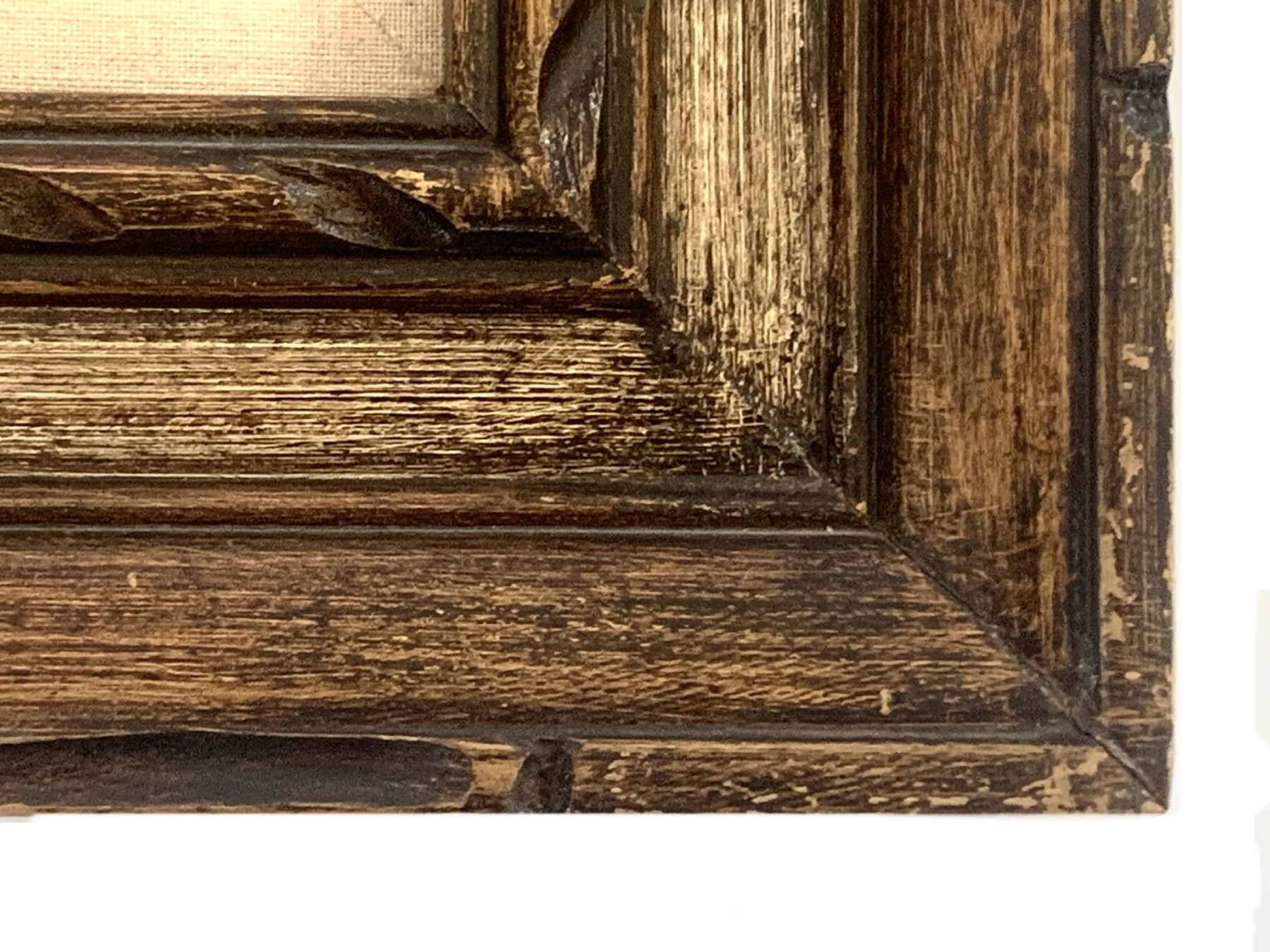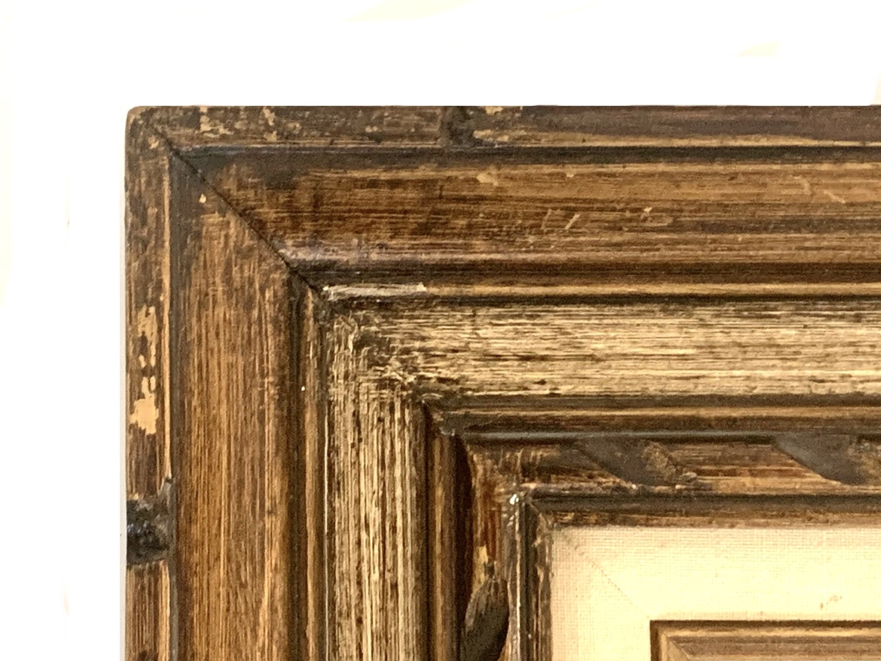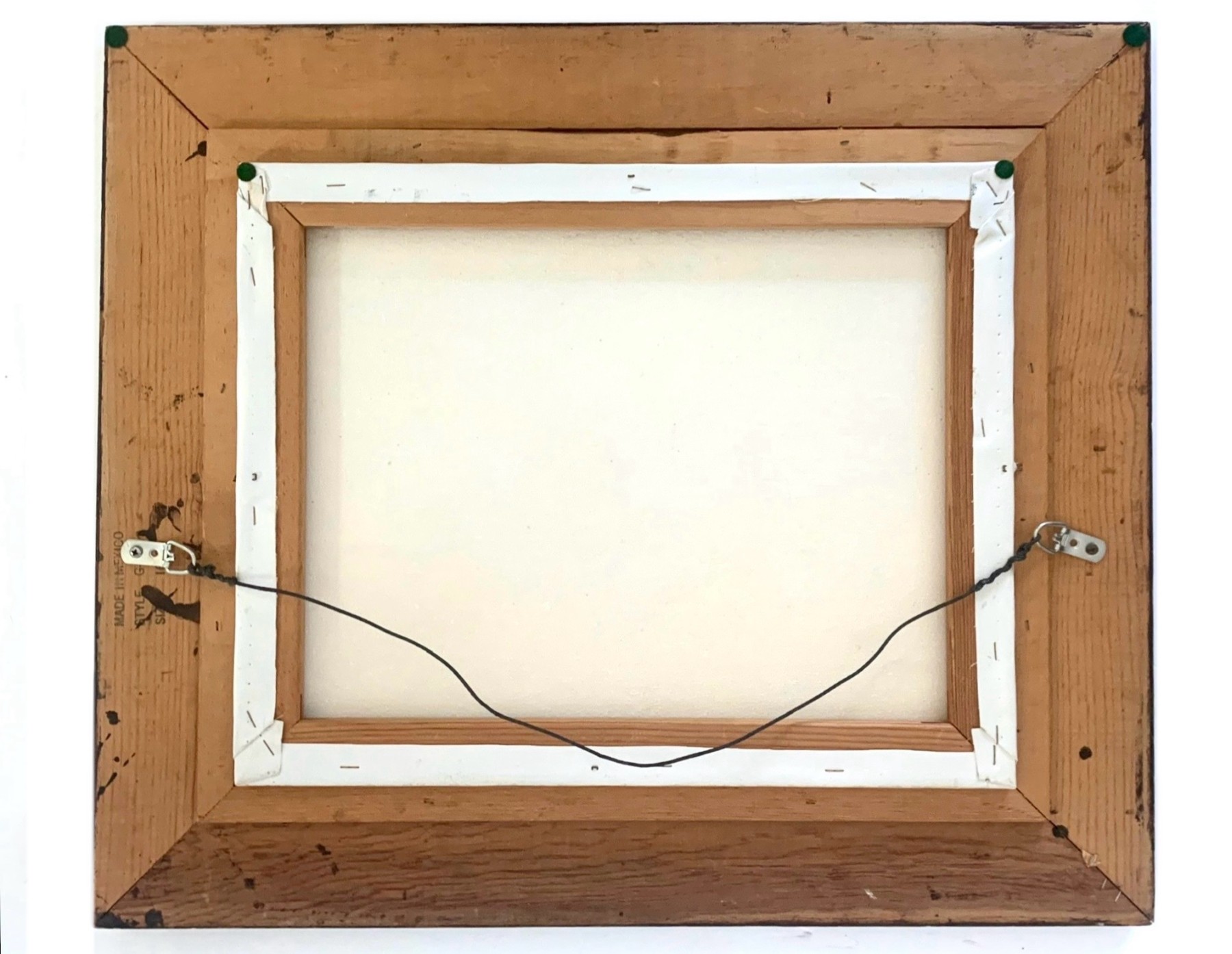 Presented in a painted decorated and wood frame with linen border and goldtone fillet.