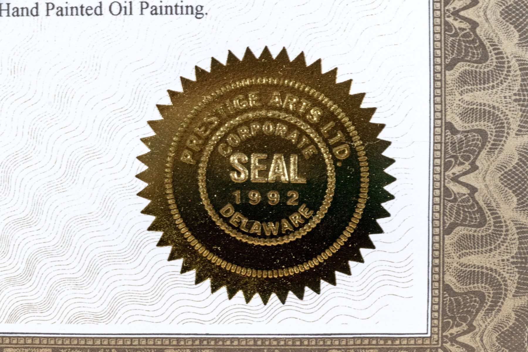 With Certificate of Authenticity, Prestige Arts, Registration Number 90933.