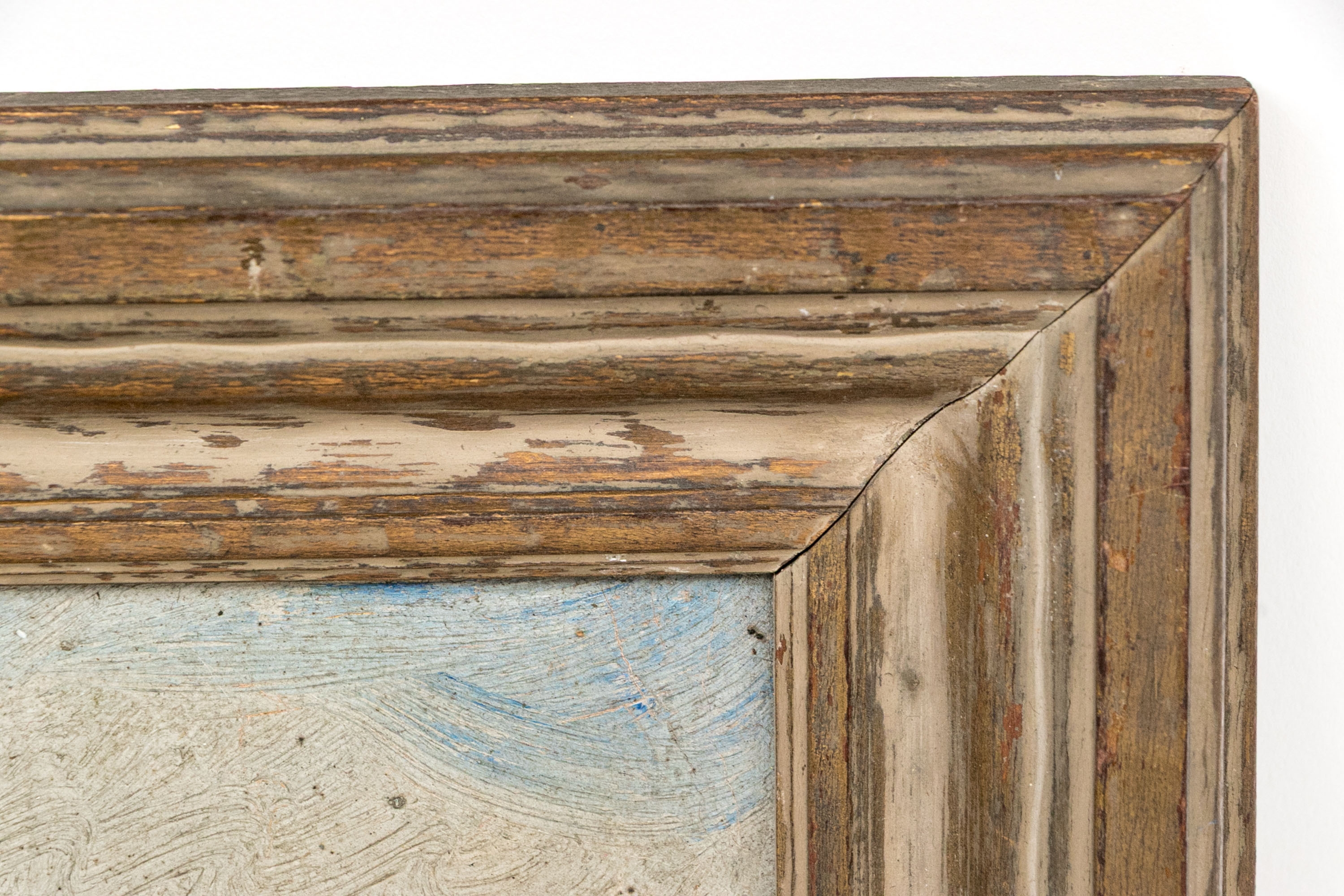 Presented handsomely in a gilt and painted carved wood and gesso frame.