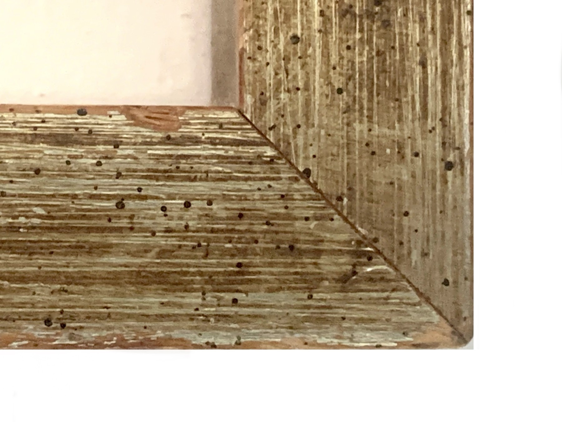 Condition: tiny nic to corner of glass beneath the wood frame and not visible. Overall good.