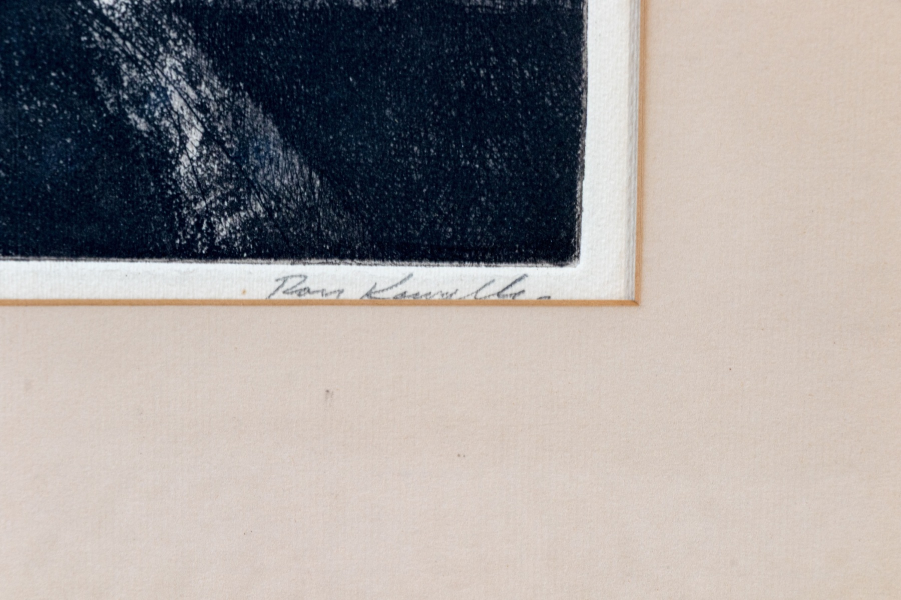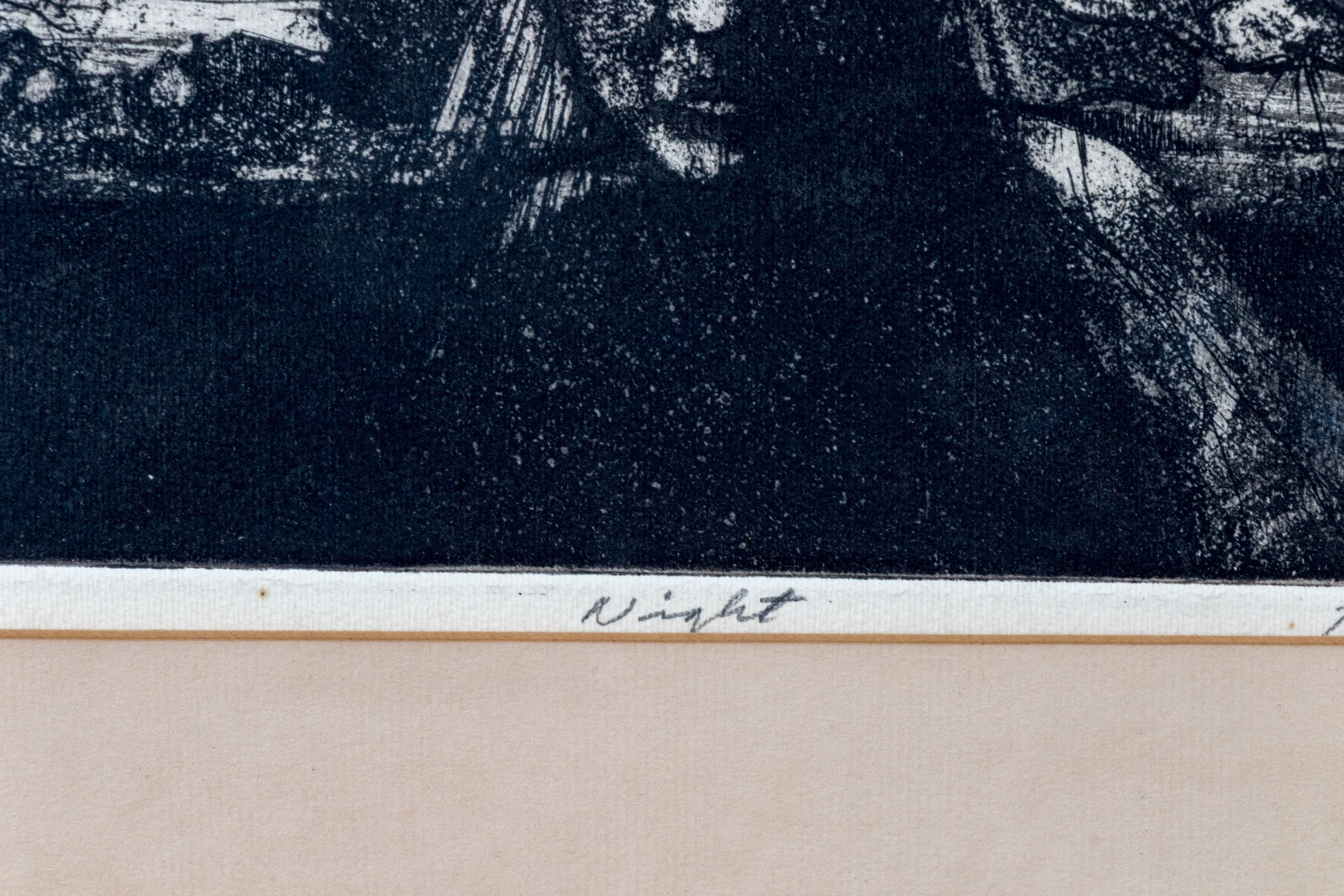 Slight mat burn and the signature is slightly cut off by the overlying mat. Despite wear the print presents well.
