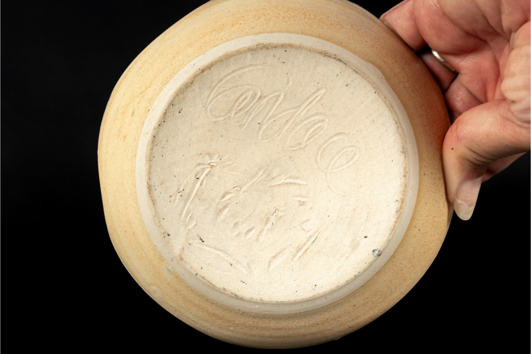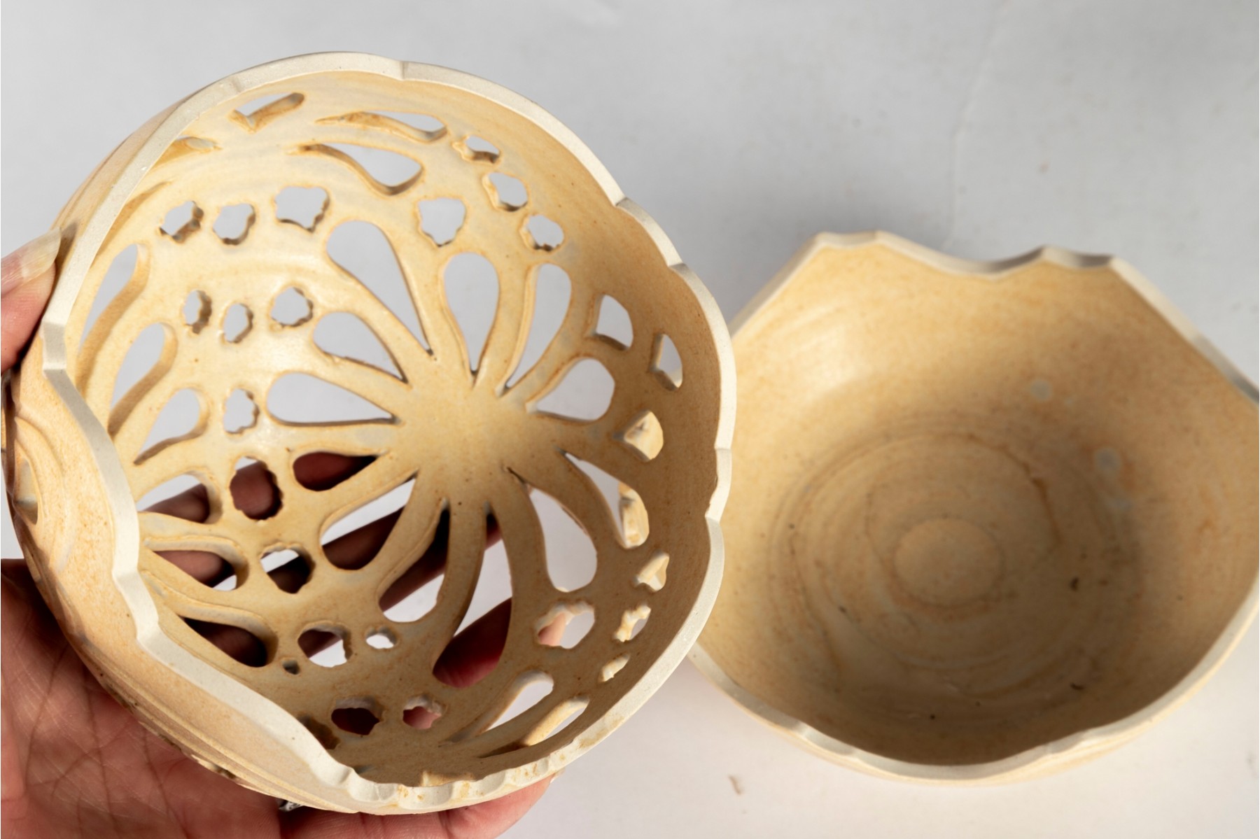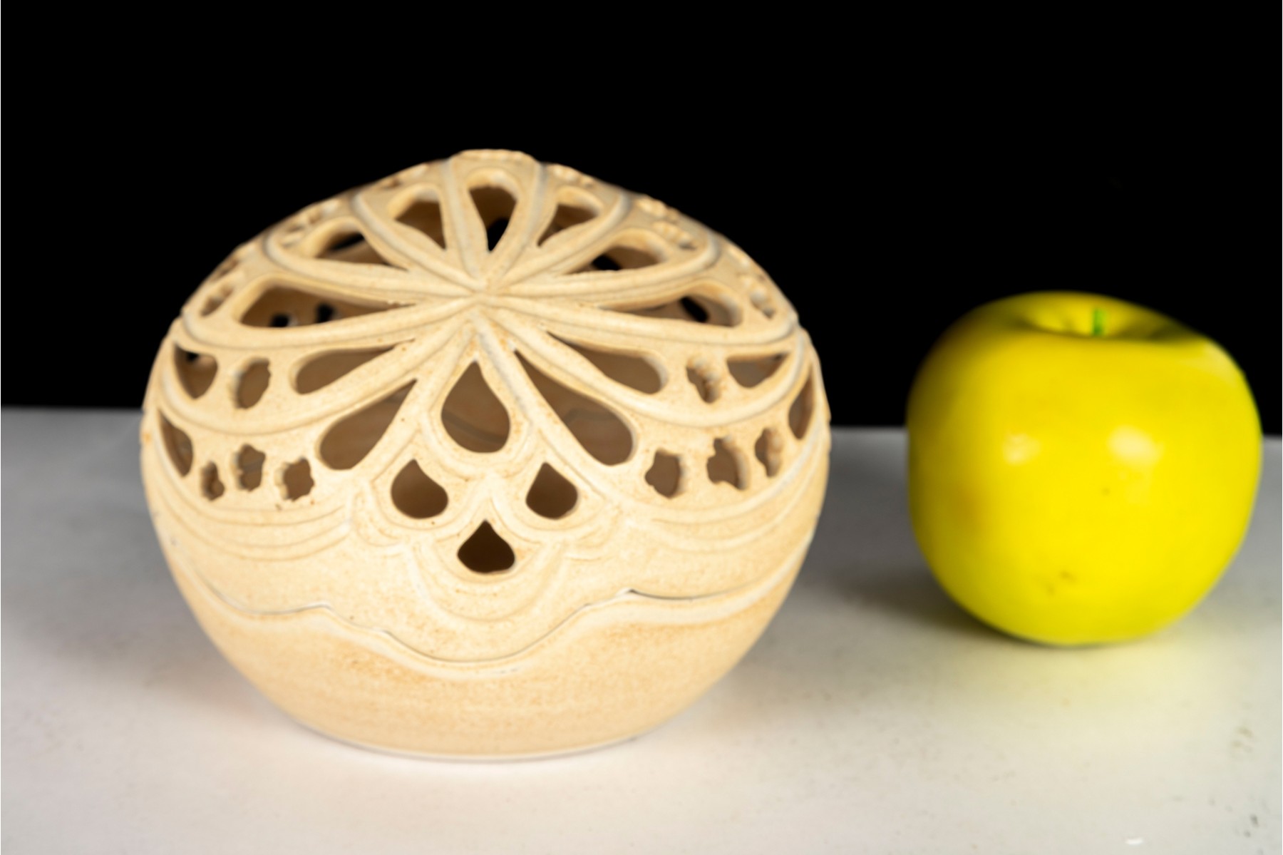 A ceramic pierced capsule composed of two parts. The bottom is signed — see photos for details.
