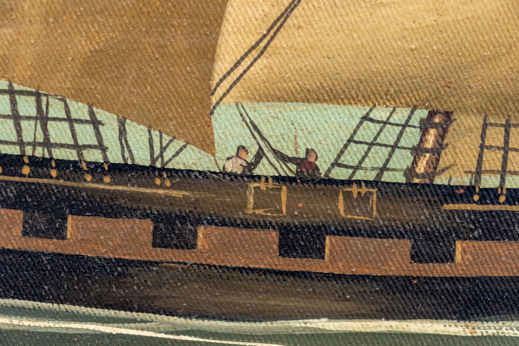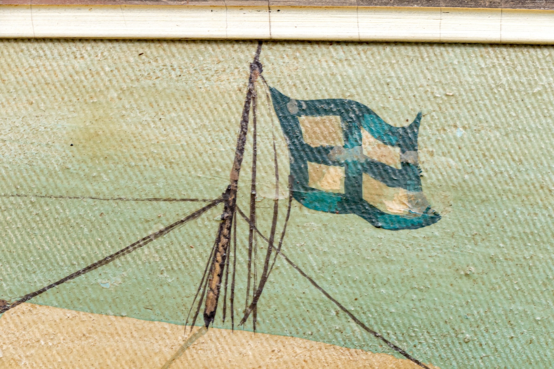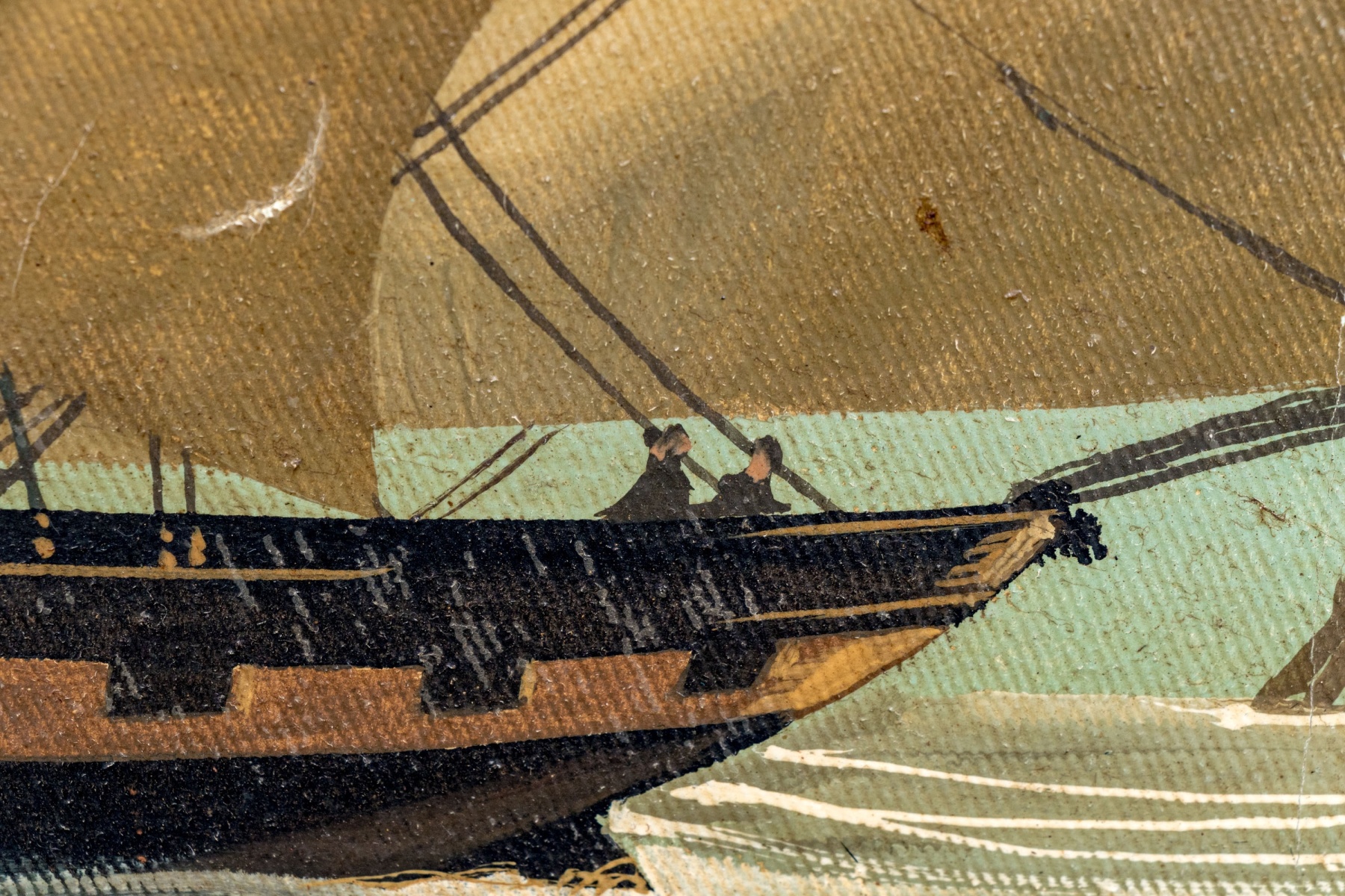 Creases around the perimeter where canvas over stretcher support but overall presents very nicely.
