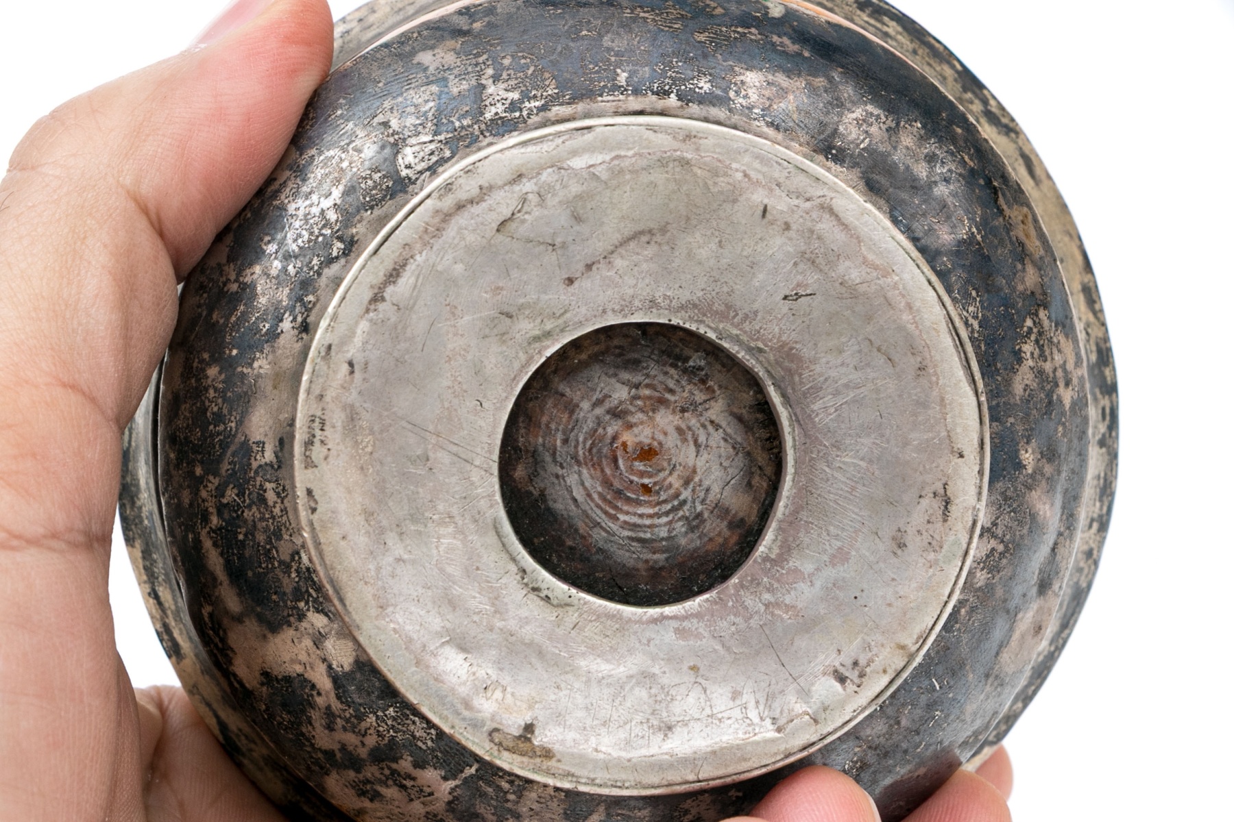 With decorative foot ring, with mouth ring and a material to the center.
