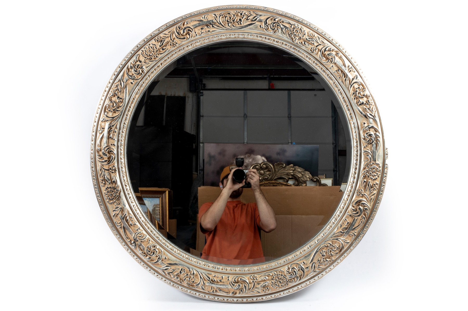 Silver-Tone Contemporary Carved 39" Round Wall Mirror #341305. Black Rock Galleries provides high end estate liquidation services through online estate auctions and a 50,000 sq ft designer showroom. estate liquidator, estate sale, online auction, antiques, fine art, liquidation, clean outs, auction, consignment, interior design, fine jewelry, collectibles, appraisals, estate appraisals, estate services, decor, furniture, furniture consignment, antique center, consignment shop. We offer appraisal services and specialize in fine art, jewelry, antiques and decorative arts. Sell with us. Black Rock Galleries is the tri-state's largest estate liquidator serving New England and the greater New York City area. We are the trusted source for expert appraisals, auction services, estate sales, and consignments. Black Rock Galleries is the east coast's largest and most trusted estate liquidator, with locations in Connecticut, greater Boston, MA and Raleigh, NC, Fairfield, Southport, Apex, TX. We are the best source for expert appraisals, auction services, estate sales and consignments. We have served thousands of families and estates with compassion, professionalism and expertise. BRG works with attorneys, executors, realtors and families to bring the greatest return on personal and estate property in the current market. Our unique combination of services make us the easy choice to get the job done in a timely and stress-free manner. We are with you from the initial consultation to the final clean out. Our house-built online auction software platform offers clients a dynamic approach to liquidating their personal property. This venue is most successful in bringing the best return with the least amount of disruption for our clients. See our services page for a complete description of this offering. Silver-Tone Contemporary Carved 39" Round Wall Mirror #341305