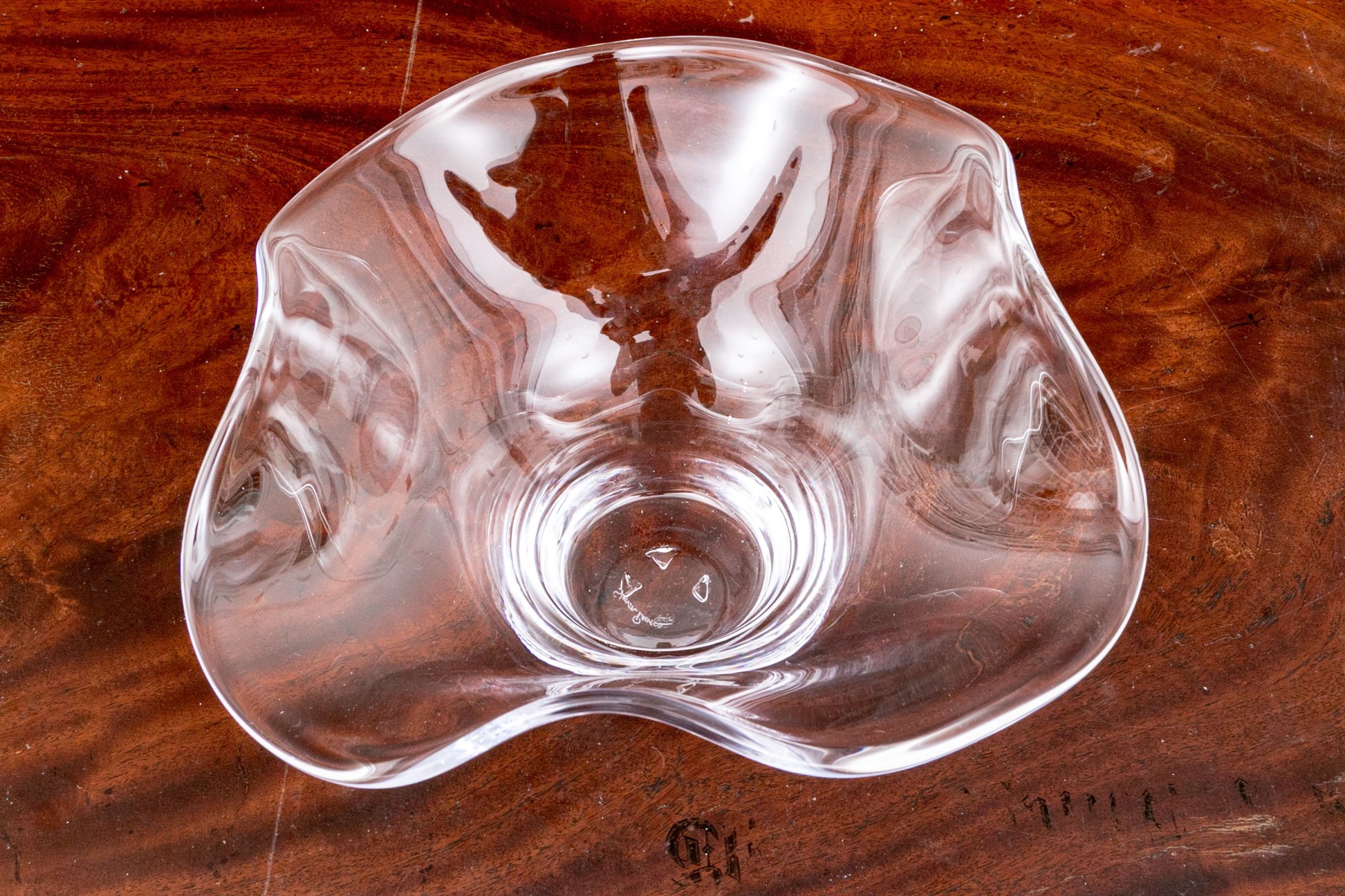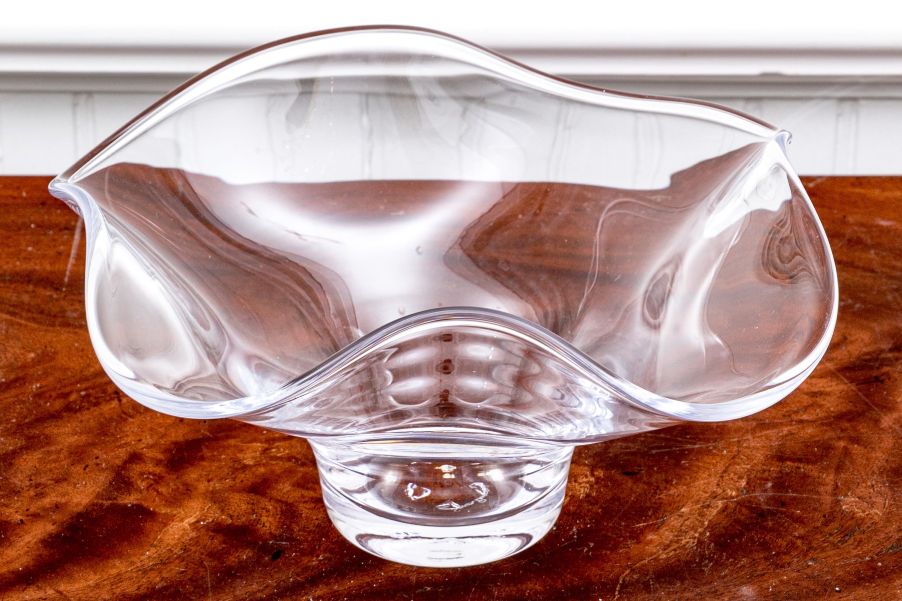 A gorgeous Simon Pearce "Chelsea" handcrafted glass bowl with an elegant, petal-like ruffled rim making for an elegant, impactful form. Signed underfoot.