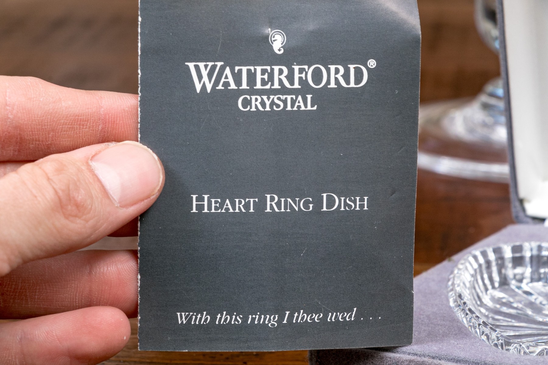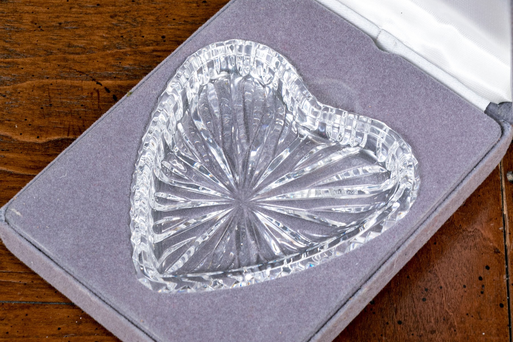 3/4 x 3 3/4” L, waterford crystal ring dish comes with box